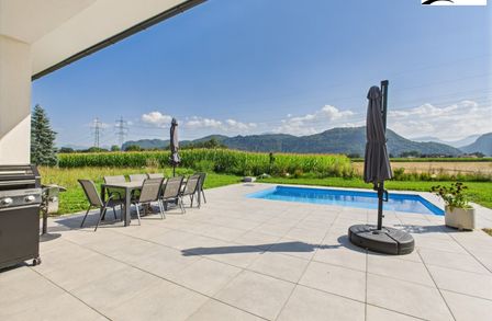 Lage: Ruhige Wohnsiedlung mit herrlichem Ausblick auf Berge und Wiesen, nur ca. 12 Fahrminuten nach Klagenfurt