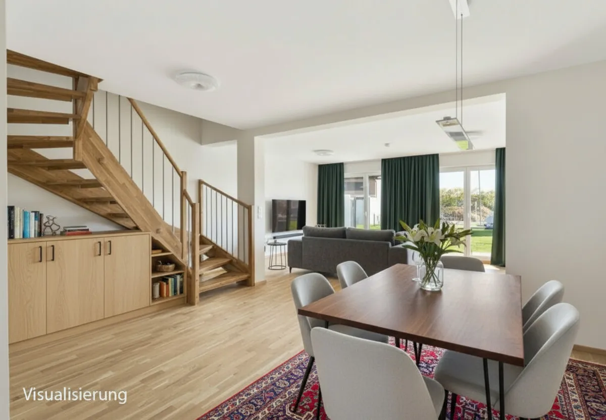 Bilder (teils aus GED Musterhäusern) & Visualisierungen (c) GED Wohnbau; Real Agency. Die abgebildeten Ansichten und Visualisierungen können von der tatsächlichen Ausführung abweichen und enthalten zum Teil auch Sonderausstattungen, die nicht im Leistungsumfang enthalten sind. Sämtliche Dekorations- & Einrichtungsgegenstände stellen lediglich Gestaltungsvorschläge dar und sind nicht im Preis enthalten. Unsere Häuser werden unmöbliert übergeben.