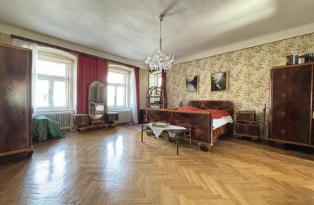 Hinweis: Aufgrund des Alters des Gebäudes liegen keine vollständigen Pläne vor. Sämtliche Flächenangaben basieren auf Schätzungen und erfolgen ohne Gewähr. Eine Neuvermessung sowie die Erfassung im Rahmen eines Feststellungsbescheids sind erforderlich. Im Exposé ist lediglich eine Skizze des ersten Obergeschosses des vorderen Trakts enthalten.