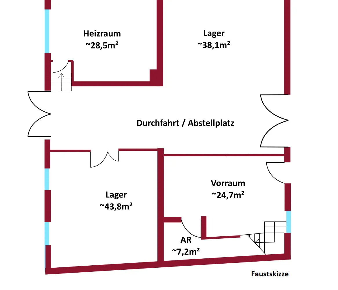 Im Erdgeschoss stehen darüber hinaus großzügige Lagerflächen zur Verfügung – ideal für Hobby, Handwerk oder Gewerbe.