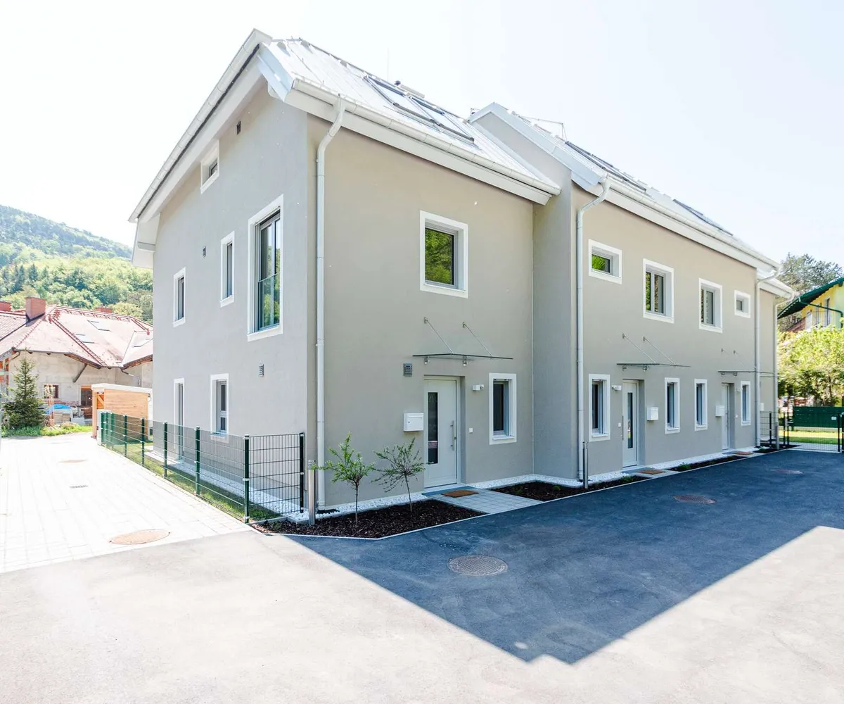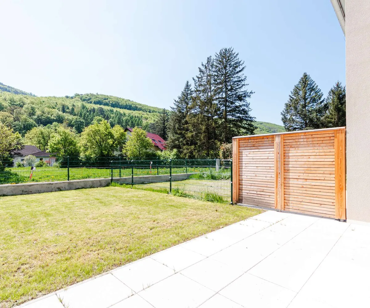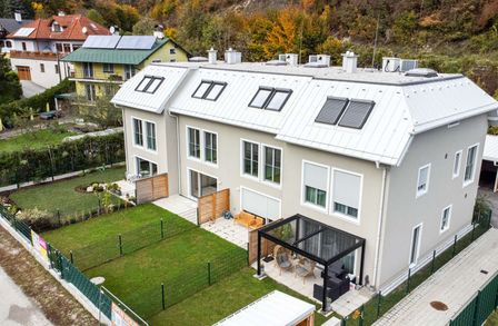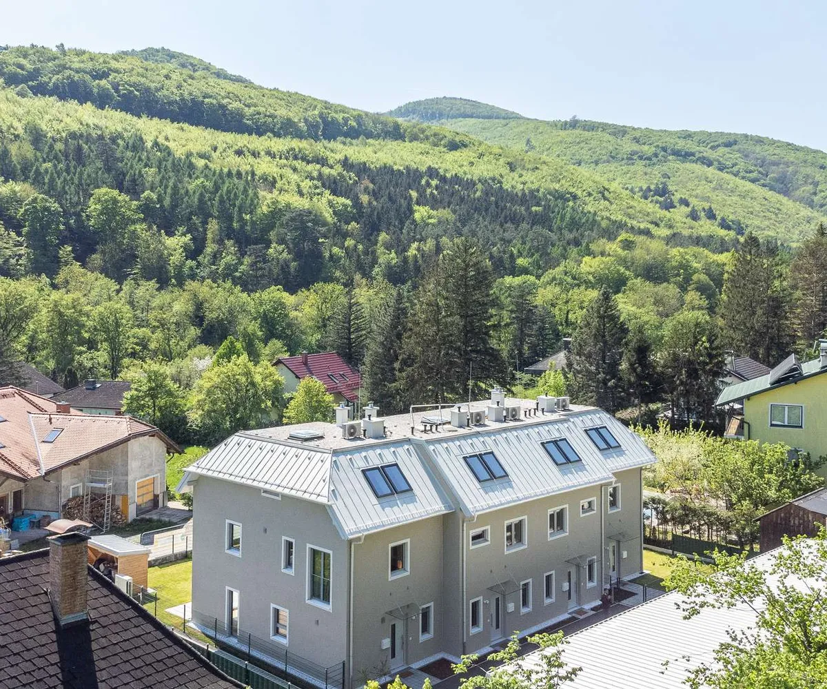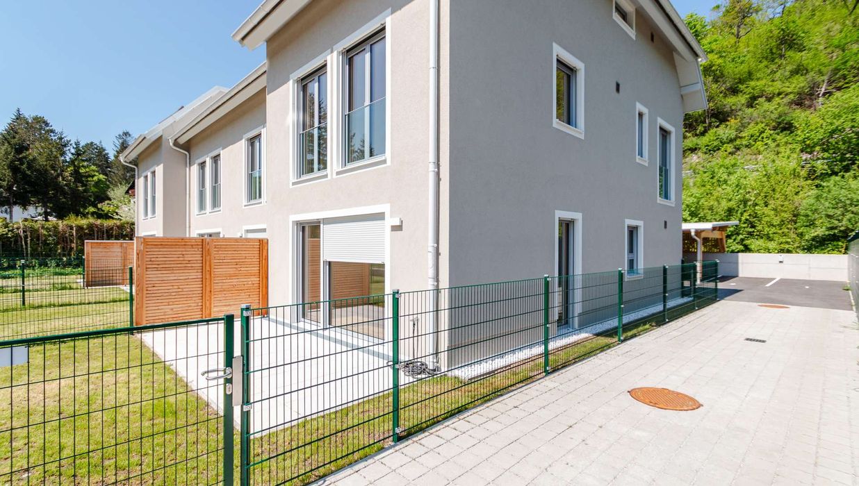Die Architekten-Reihenhäuser liegen im Biosphärenpark Wienerwald und sind trotzdem nur 4 Autominuten von Baden entfernt. Über eine nahe Bushaltestelle kommen Sie öffentlich in einer guten Viertelstunde zum Badener Bahnhof. Die Lage direkt am Helenentalradweg, die fußläufige Lage zur Schwechat (Fluss) und die zahlreichen Wanderwege sind nur einige der Highlights dieses schönen Projekts.