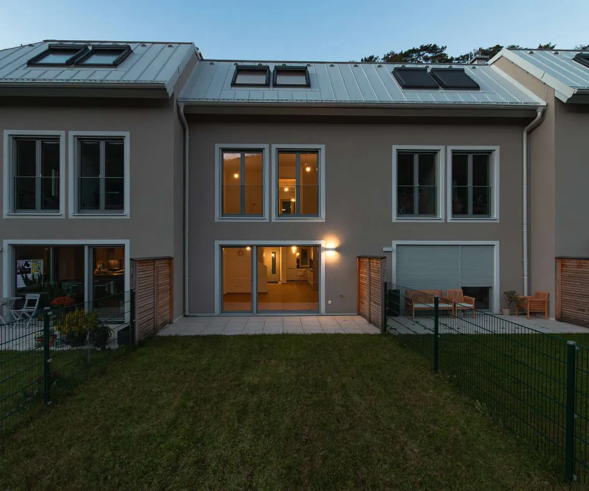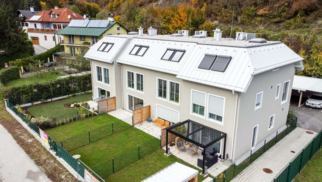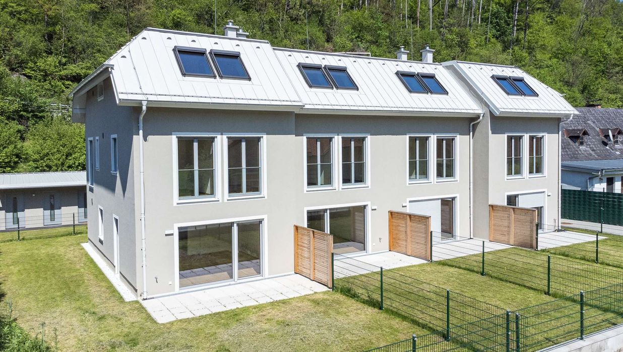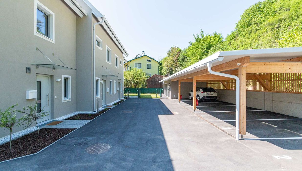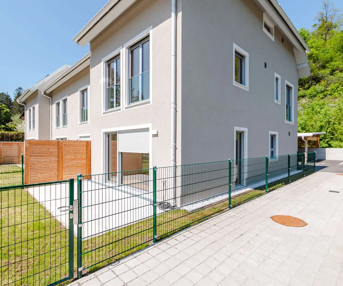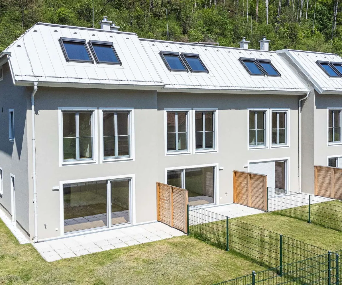 Die Architekten-Reihenhäuser liegen im Biosphärenpark Wienerwald und sind trotzdem nur 4 Autominuten von Baden entfernt. Über eine nahe Bushaltestelle kommen Sie öffentlich in einer guten Viertelstunde zum Badener Bahnhof. Die Lage direkt am Helenentalradweg, die fußläufige Lage zur Schwechat (Fluss) und die zahlreichen Wanderwege sind nur einige der Highlights dieses schönen Projekts.