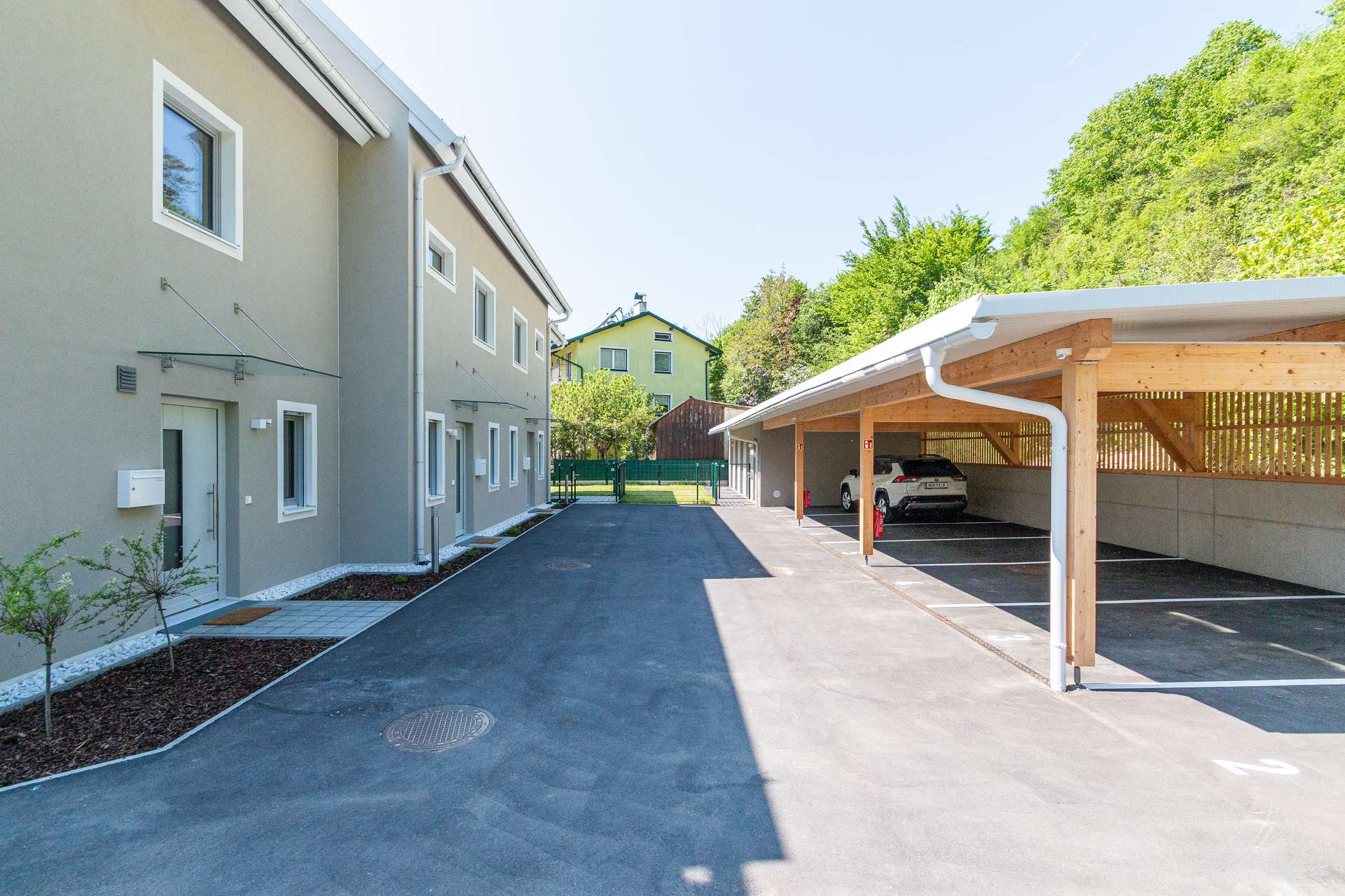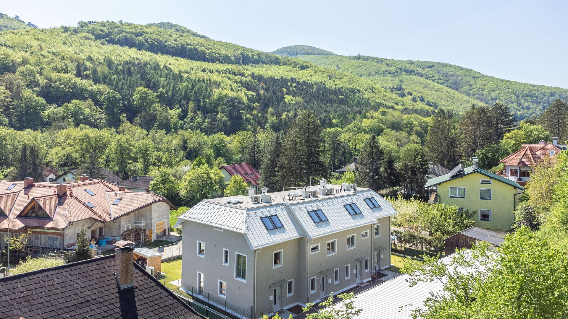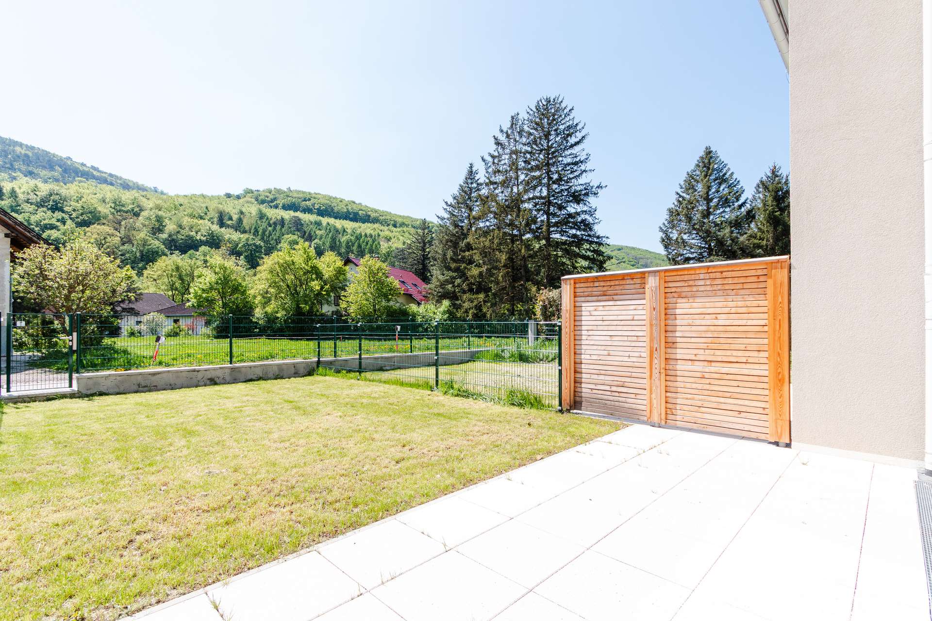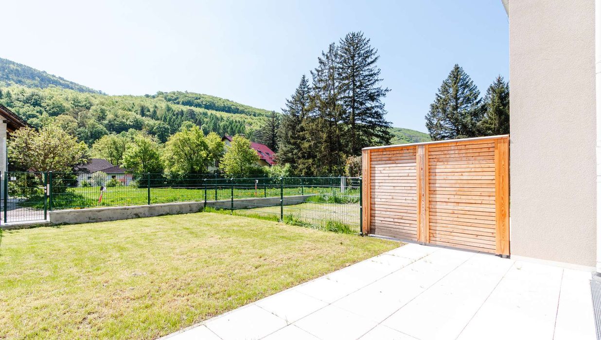 Die Architekten-Reihenhäuser liegen im Biosphärenpark Wienerwald und sind trotzdem nur 4 Autominuten von Baden entfernt. Über eine nahe Bushaltestelle kommen Sie öffentlich in einer guten Viertelstunde zum Badener Bahnhof. Die Lage direkt am Helenentalradweg, die fußläufige Lage zur Schwechat (Fluss) und die zahlreichen Wanderwege sind nur einige der Highlights dieses schönen Projekts.