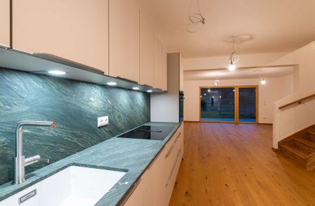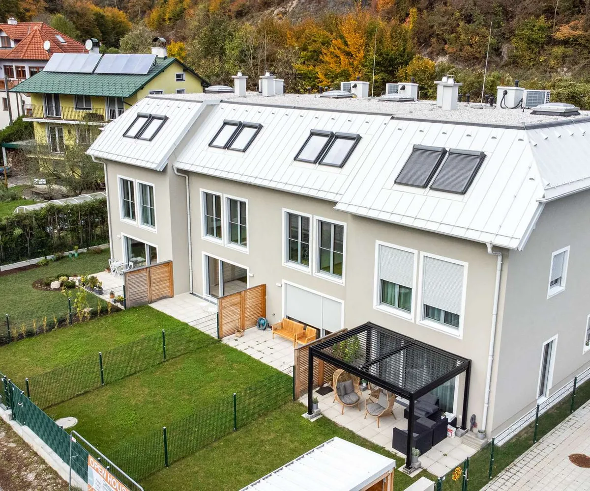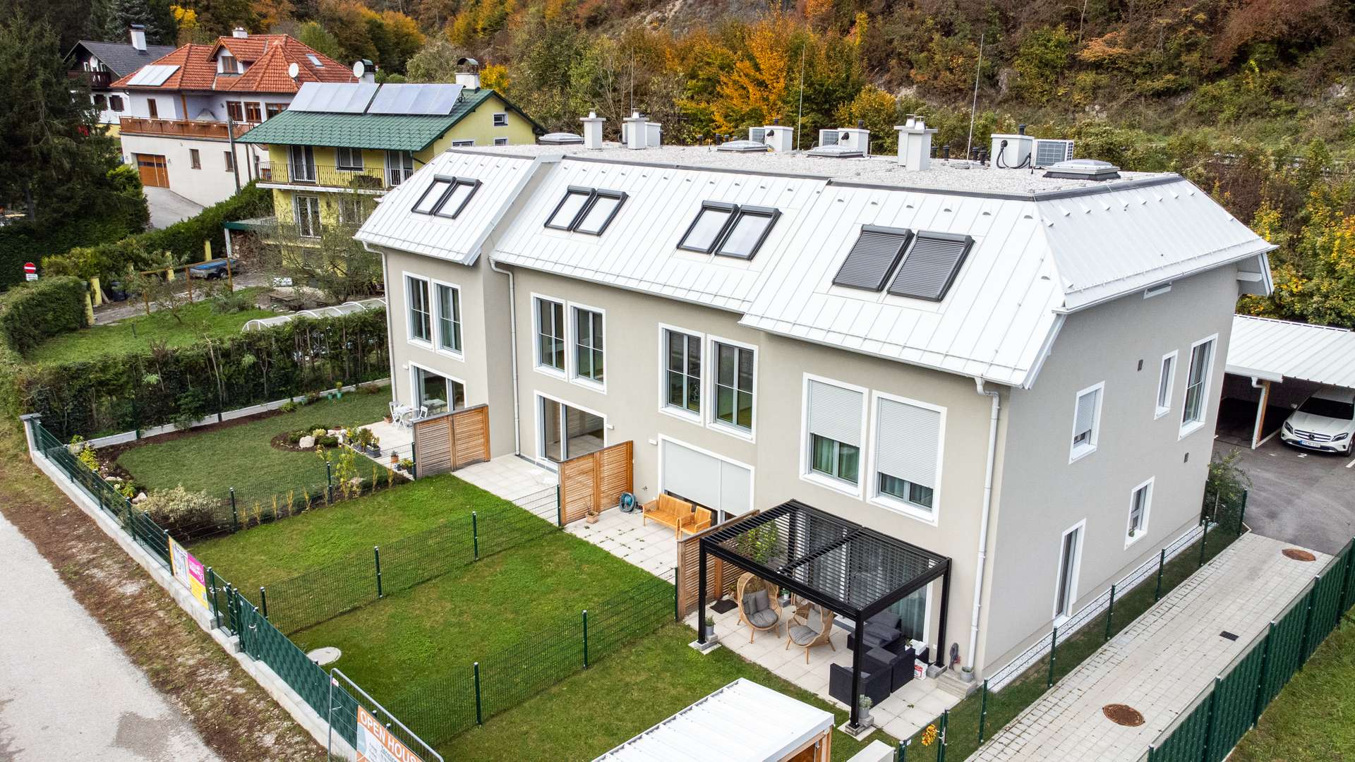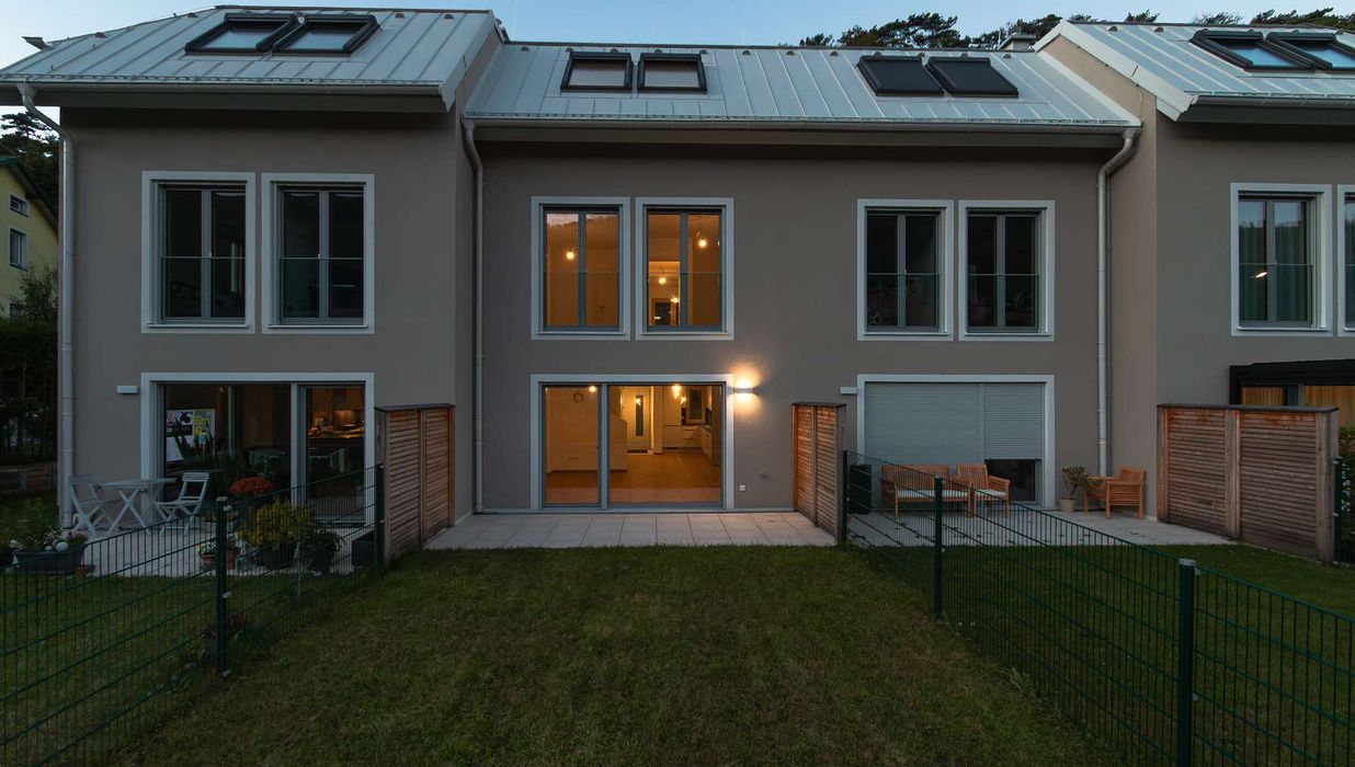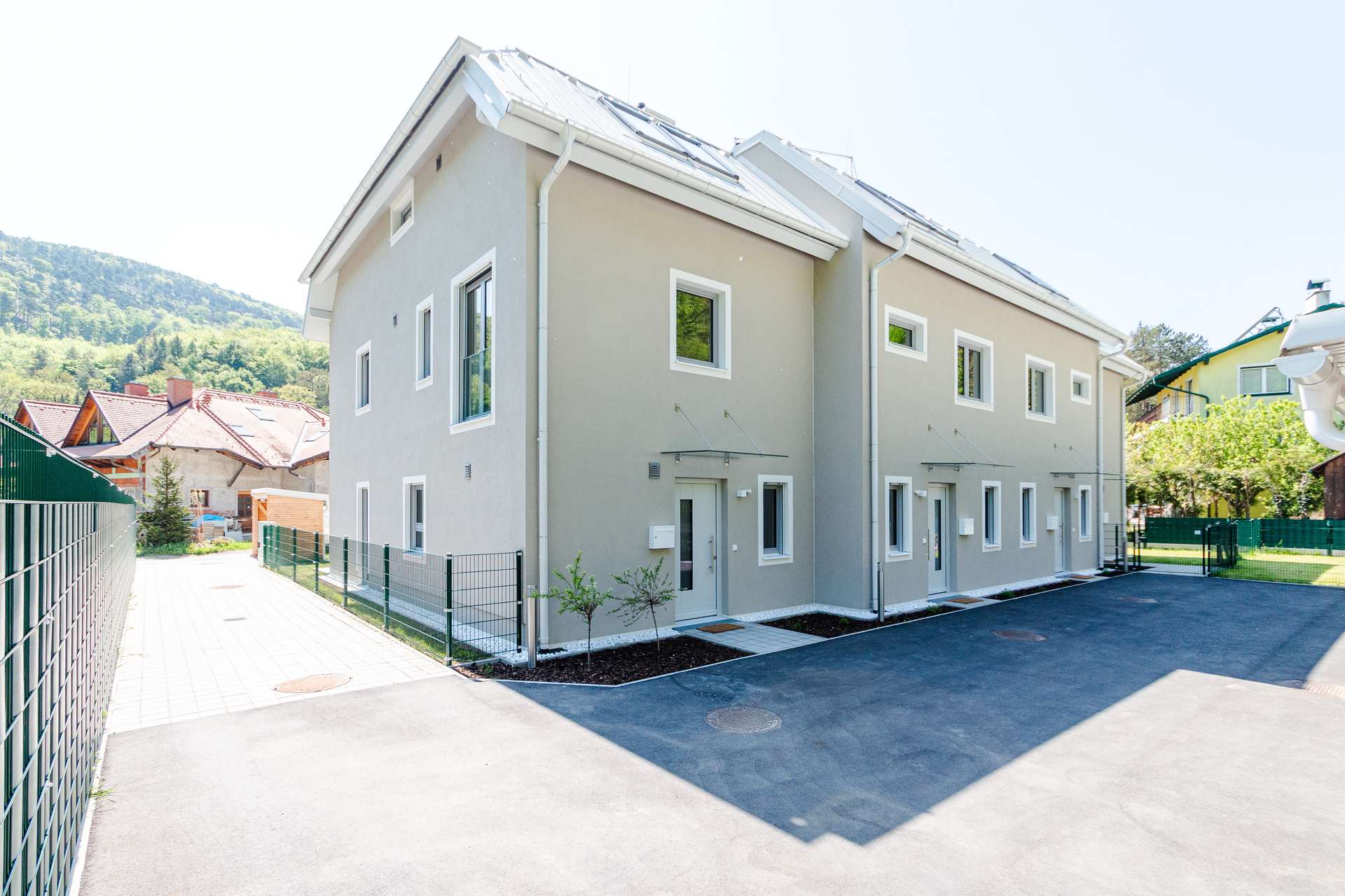 Die Architekten-Reihenhäuser liegen im Biosphärenpark Wienerwald und sind trotzdem nur 5 Autominuten von Baden entfernt. Über eine nahe Bushaltestelle kommen Sie öffentlich in einer guten Viertelstunde zum Badener Bahnhof. Die Lage direkt am Helenentalradweg, die fußläufige Lage zur Schwechat (Fluss) und die zahlreichen Wanderwege sind nur einige der Highlights dieses schönen Projekts.