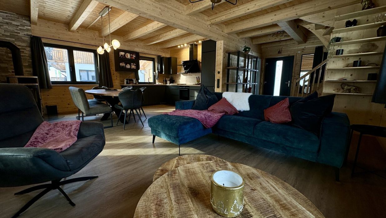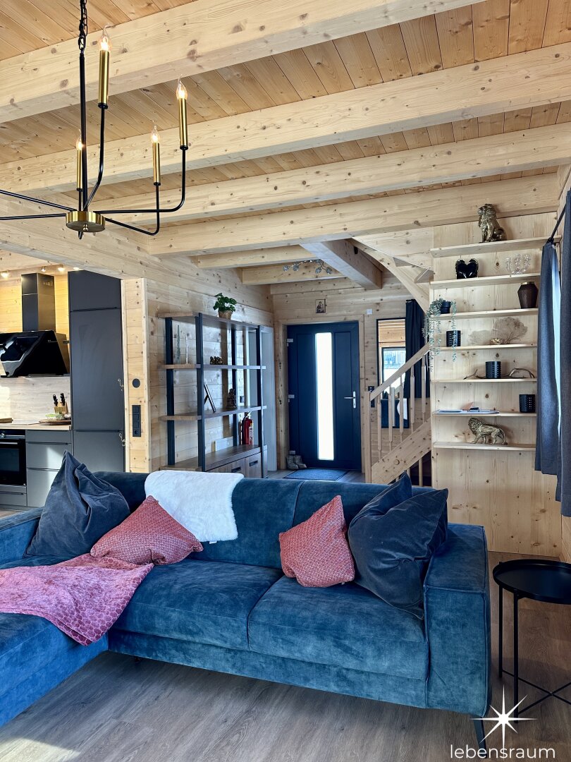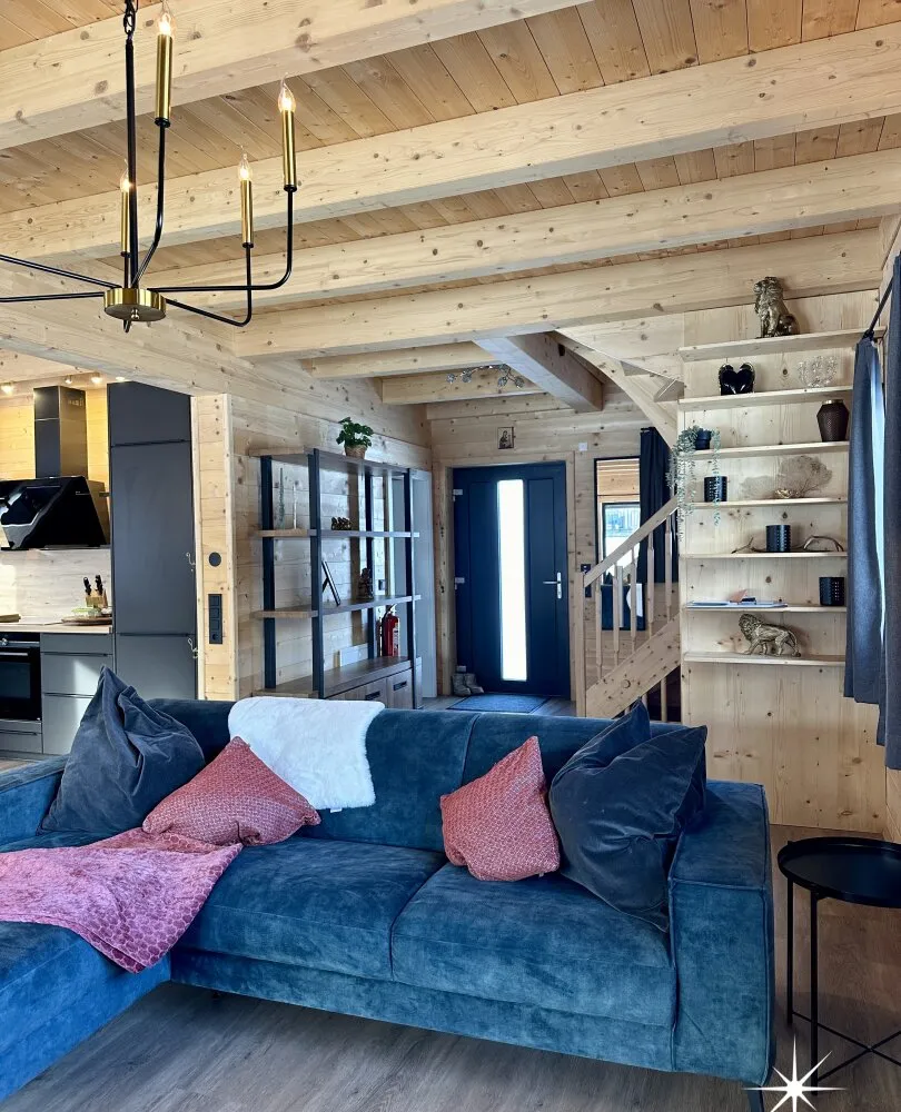 Der große, offene Wohnbereich ist perfekt zum Entspannen mit der Familie oder zum Bewirten von Gästen, er ist mit natürlichem Licht durchflutet und geht nahtlos in die wunderschöne Landschaft draußen über.