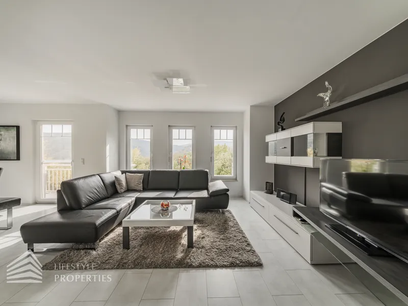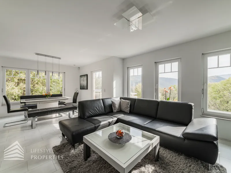 In absoluter Ruhelage wurde im Jahr 2012 dieses schöne Einfamilienhaus errichtet, welches sich über acht Zimmer erstreckt und eine Wohnfläche von ca. 204 m² bietet. Die Grundstücksfläche liegt bei 2.120 m². Das Haus besteht aus einem geräumigen Untergeschoss, das ebenerdig zugänglich ist, einem Erdgeschoss mit Balkon und einem Obergeschoss. Das Haus ist mit hochwertigem Mobiliar ausgestattet, welches bereits im Kaufpreis enthalten ist. Die Räume der Immobilie sind zum größten Teil mit wunderschönen, grauen Fliesen ausgekleidet, jedoch finden Sie in manchen Räumen auch Parkettböden vor. Alle Fenster sind mit Rollläden und Fliegengittern ausgestattet. In der Immobilie befindet sich außerdem eine Einliegerwohnung mit separatem Eingang und Küchenzeile. Vier Stellplätze stehen ebenfalls zur Verfügung. Das Highlight der Immobilie ist der schöne Garten mit mehreren Terrassen, von welchem aus Sie einen traumhaften Ausblick auf die Umgebung genießen. Das Einfamilienhaus glänzt mit Alleinlage und einem unverbaubaren Panoramablick.