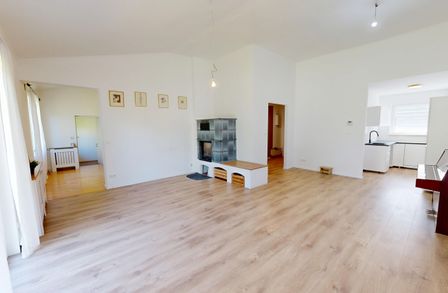 Die helle Ausrichtung des Gartens sowie der Terrasse sorgt für angenehme Lichtverhältnisse. Im Innenbereich sind Laminat- sowie Fliesenböden vorhanden. Die Küche wurde im Zuge der Modernisierungen erneuert.
