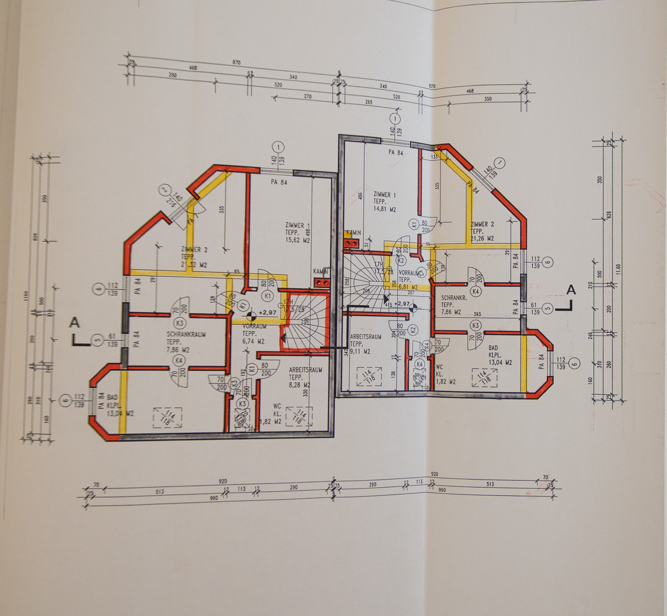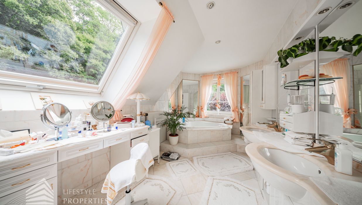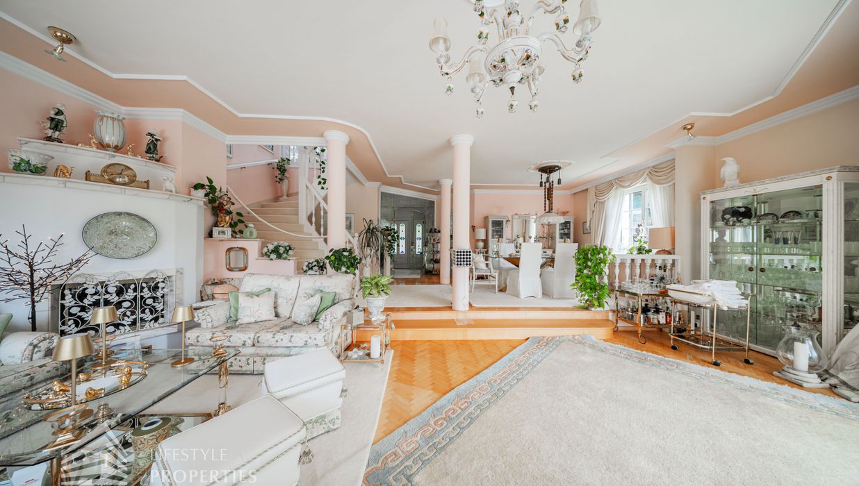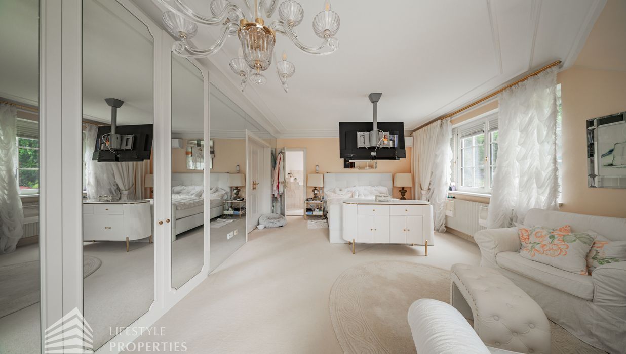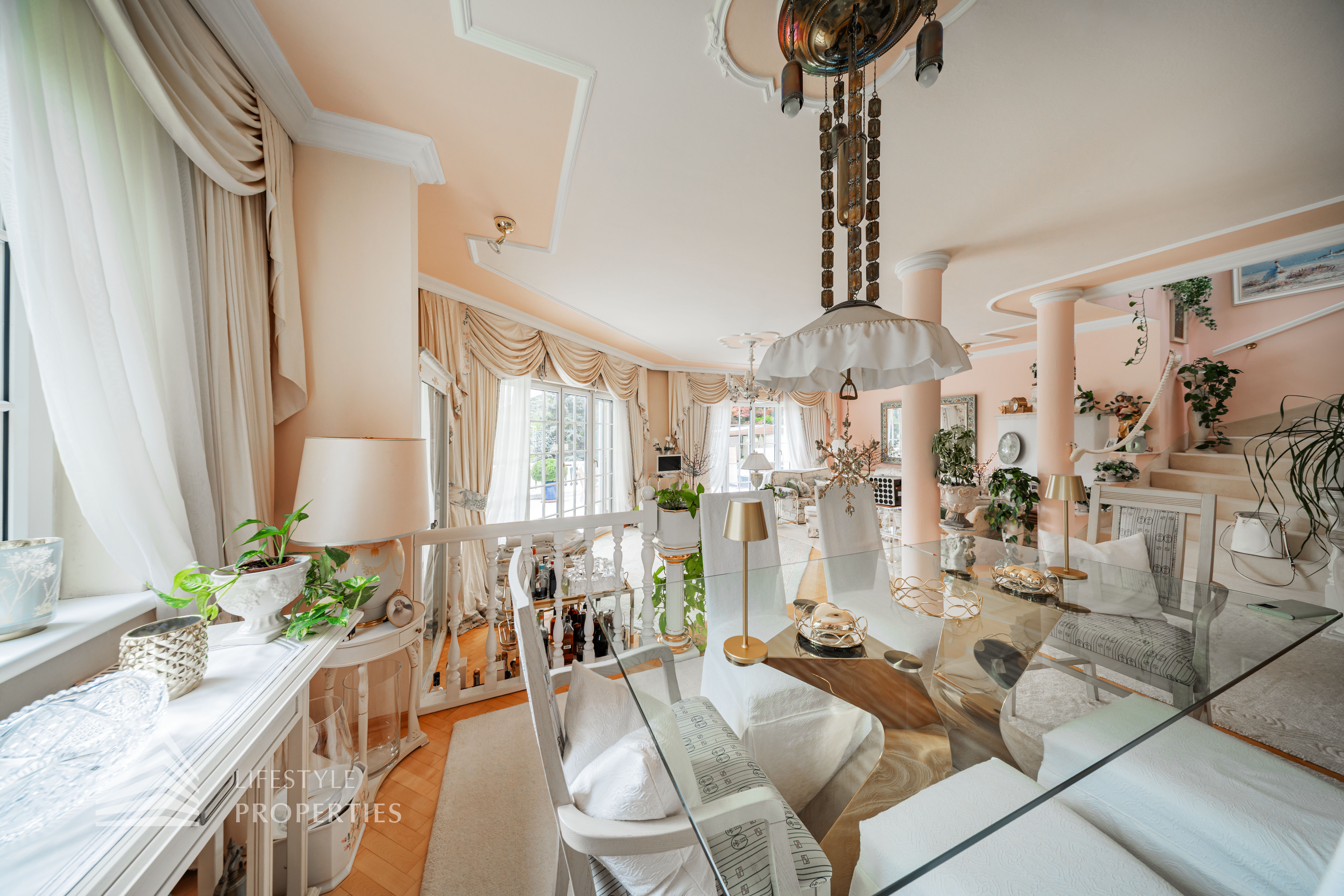Die Villa hat eine Wohnfläche von ca. 304,20 m² und verfügt über zwei Eingänge, da das Objekt derzeit in zwei Wohneinheiten aufgeteilt ist.