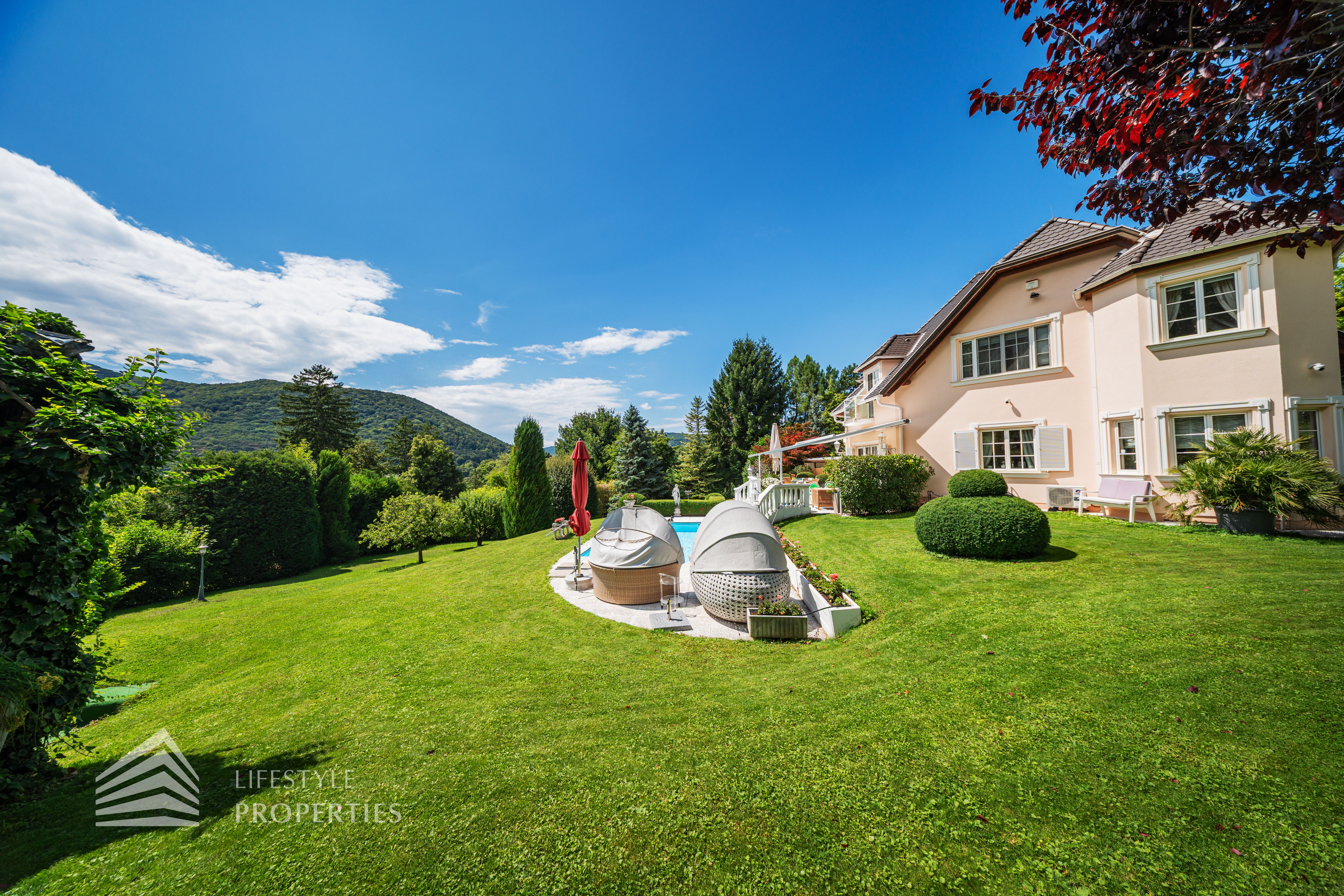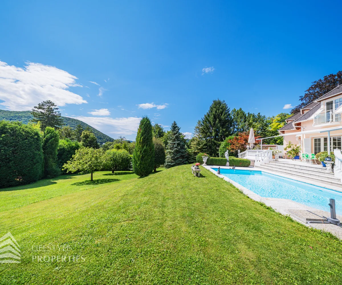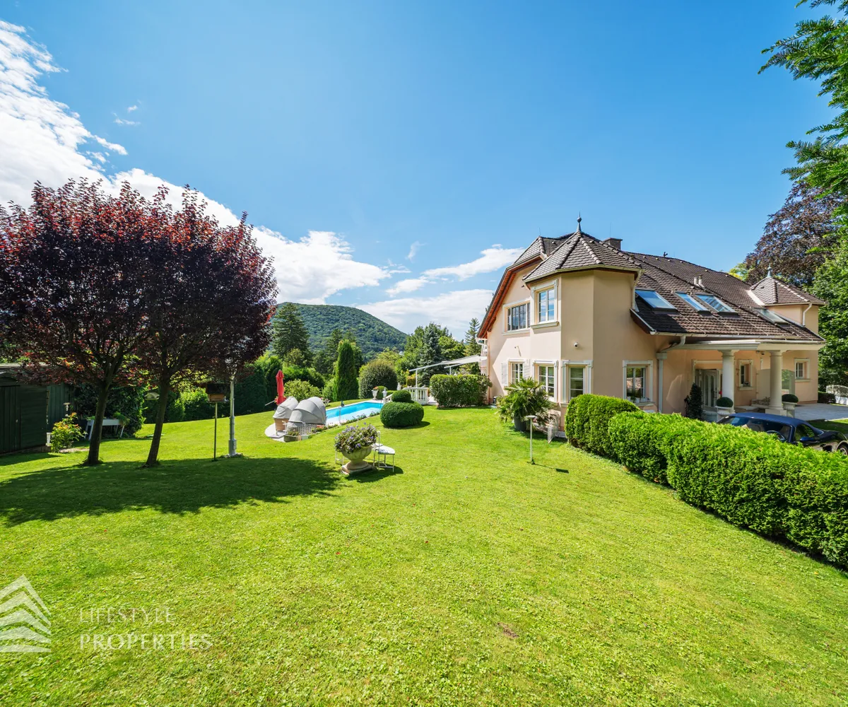 Zum Verkauf gelangt eine Villa mit einem ca. 4 250 m² großen Garten mit Swimmingpool in Bestlage in der Hinterbrühl.