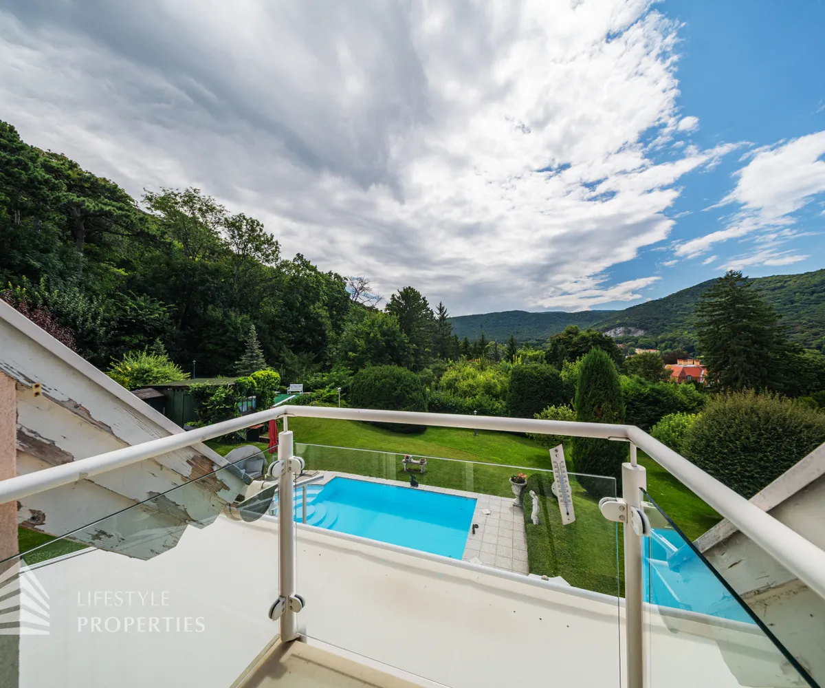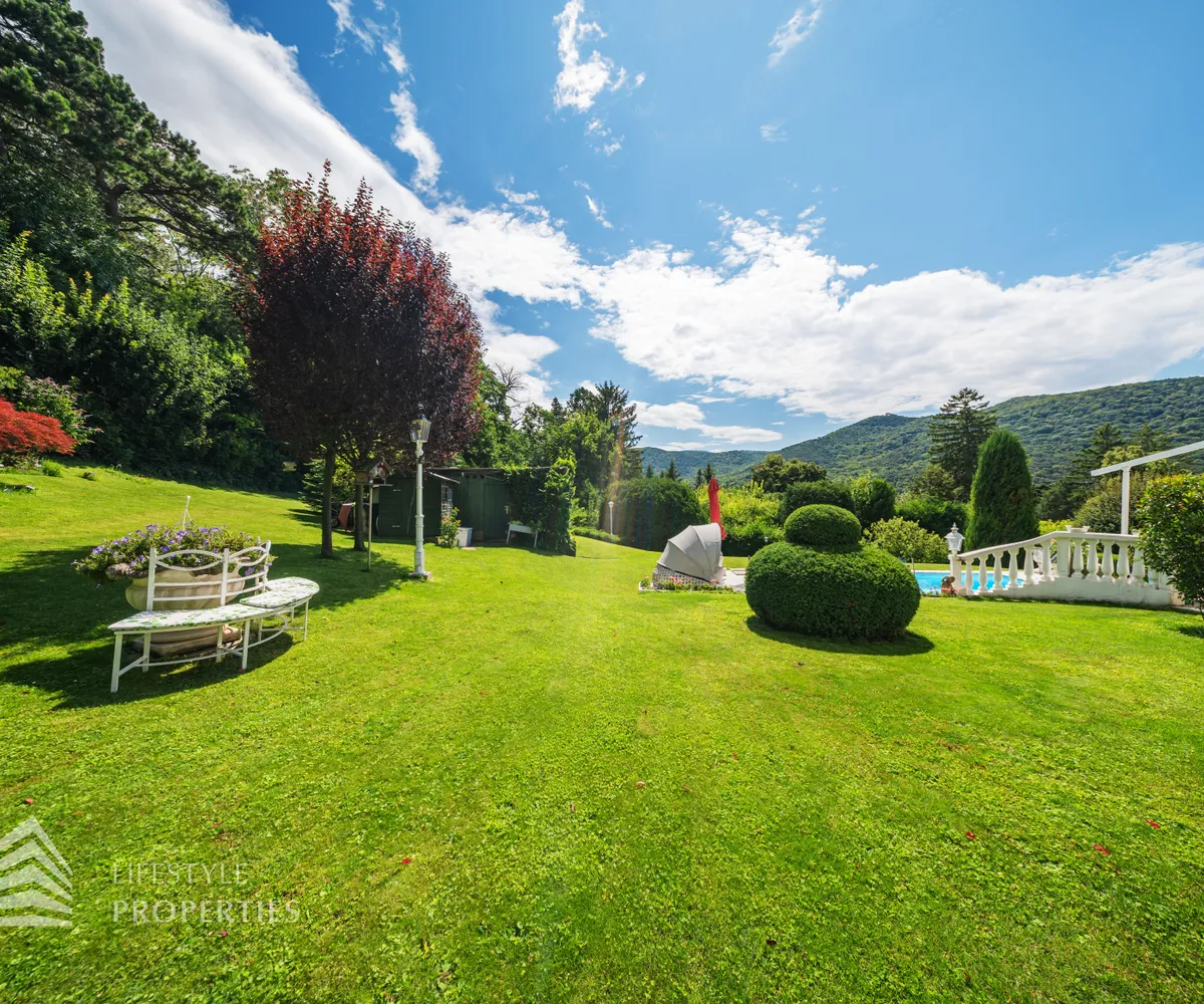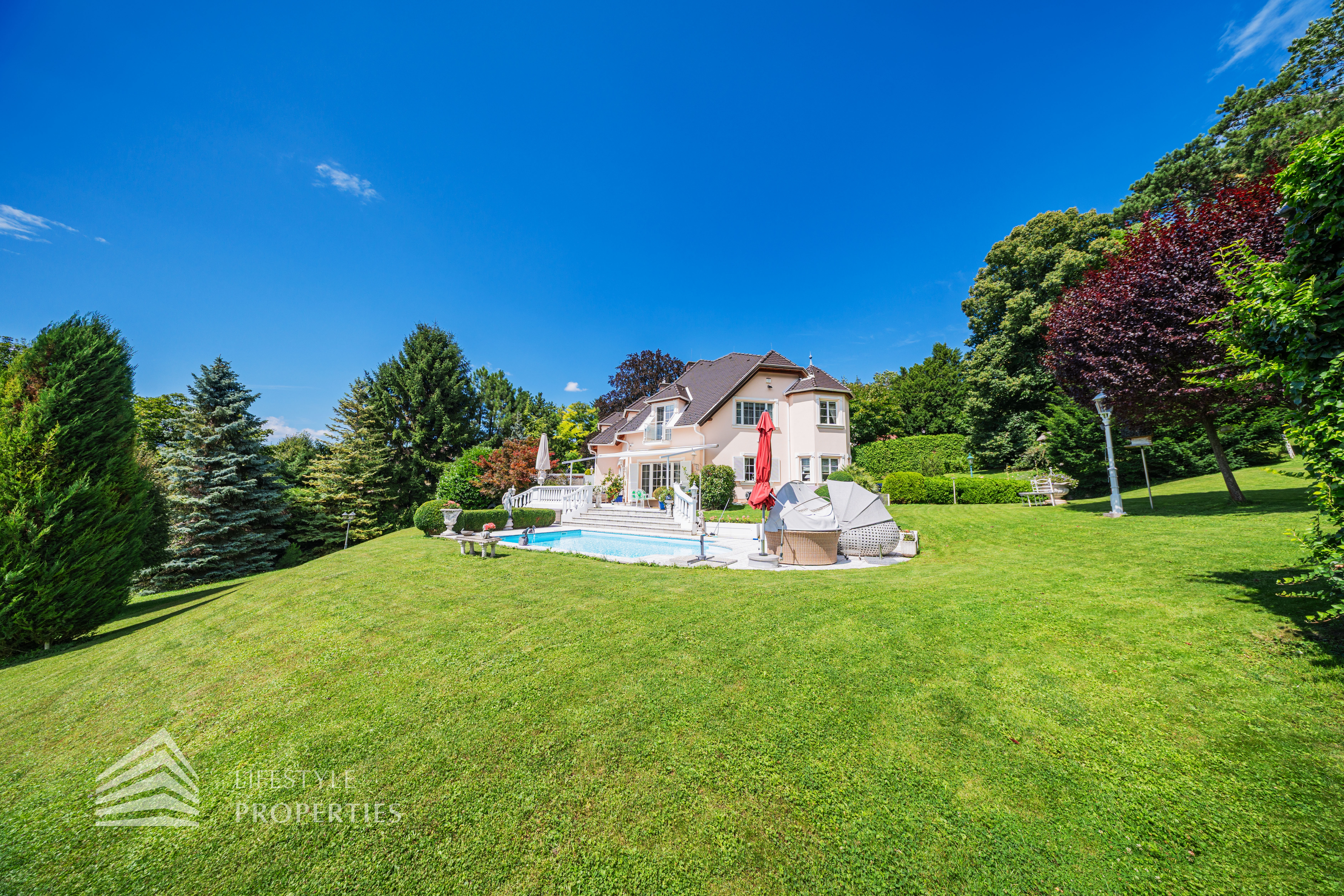 Zum Verkauf gelangt eine Villa mit einem ca. 4 250 m² großen Garten mit Swimmingpool in Bestlage in der Hinterbrühl.