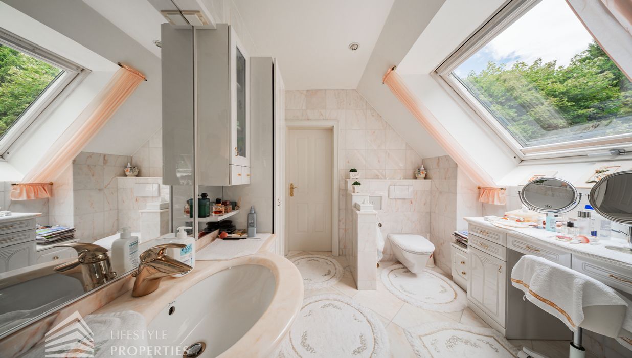 Des Weiteren verfügt der Teil des Hauses über einen Wohnkeller, wo sich das Gästezimmer befindet. Ausgestattet mit einer Dusche, einen Waschbecken und einer separaten Toilette. Nebenan erreicht man den Wirtschaftsraum und Technikraum.