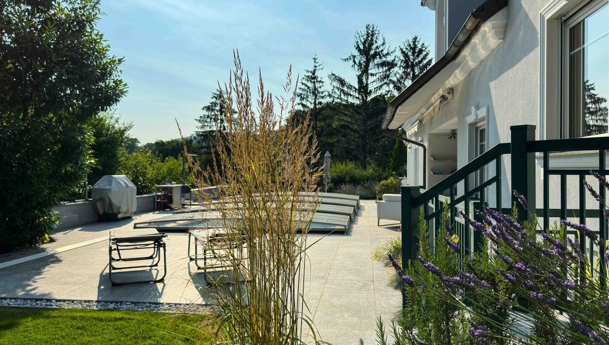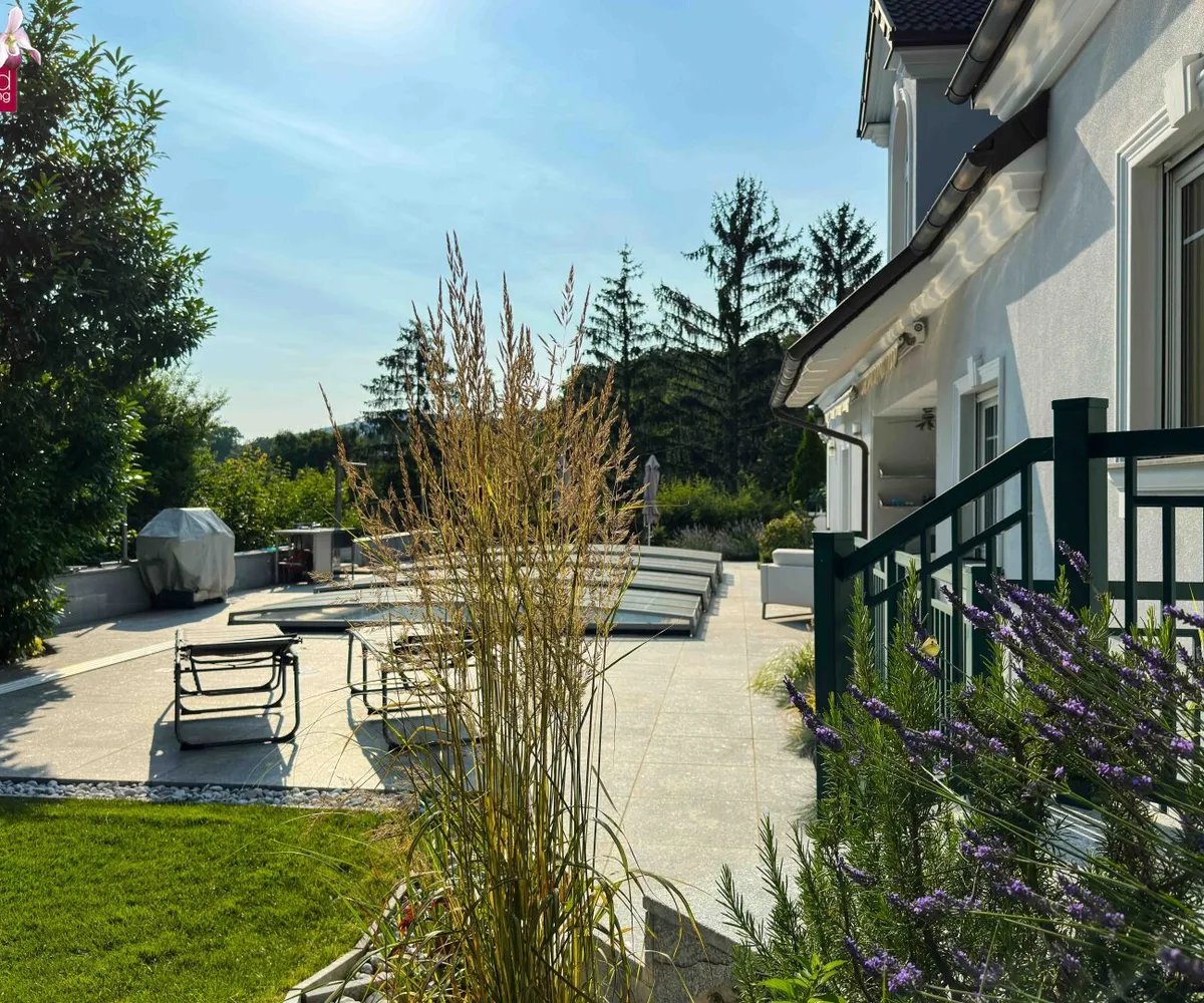 Das Objekt bietet rund 430 m² Wohnfläche auf drei Ebenen, großzügige Terrassen und ein mediterranes Ambiente – ideal für Familien, Homeoffice oder Mehrgenerationenwohnen.