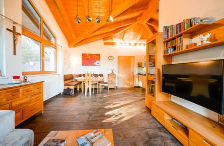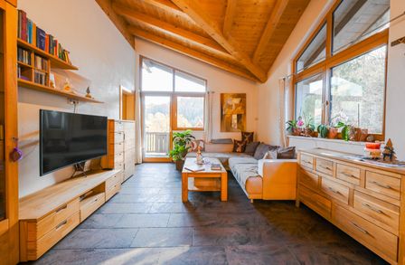 Genießen Sie die frische Bergluft auf einem der vier Balkone oder auf der großzügigen Terrasse. Hier können Sie die atemberaubende Aussicht auf die majestätischen Berge und die grüne Umgebung in vollen Zügen genießen – der perfekte Ort für unvergessliche Sonnenuntergänge und gesellige Grillabende mit Freunden und Familie.