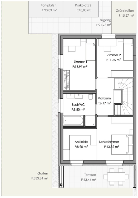 2 PKW-Stellplätze (ca. 20,03 m² & 18,88 m² )