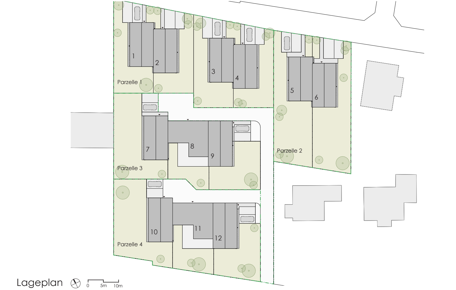 Der südlich orientierte Garten garantiert viele Sonnenstunden und bietet dank der leicht versetzten Bauweise auch auf der eigenen Terrasse viel Privatsphäre. Zwei Autoabstellplätze direkt vor dem Haus runden das Angebot ab.