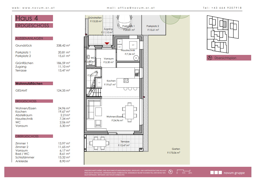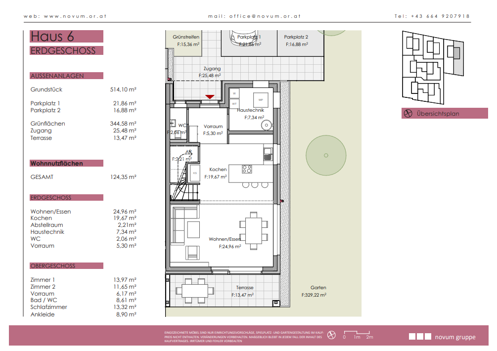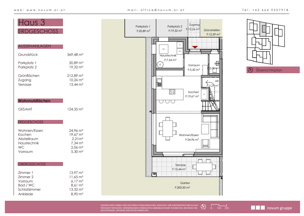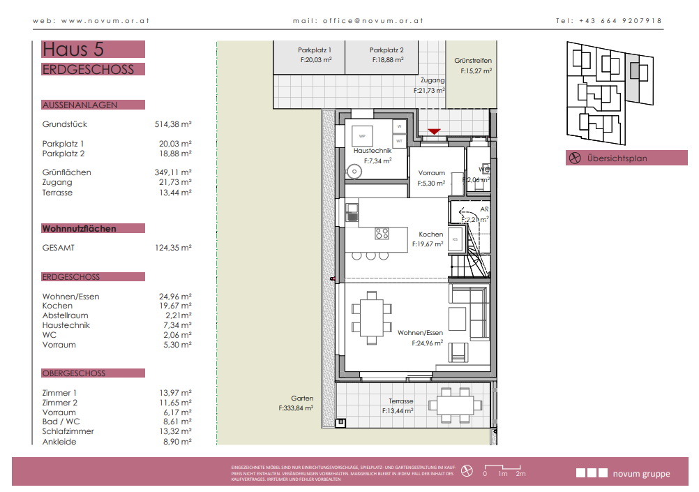 Die Anlage besticht durch eine harmonische Mischung aus 6 Doppelhaushälften und zwei modernen 3er-Reihenhausanlagen . Jede Einheit bietet ca. 125 m² Wohnnutzfläche in massiver Niedrigenergiebauweise .