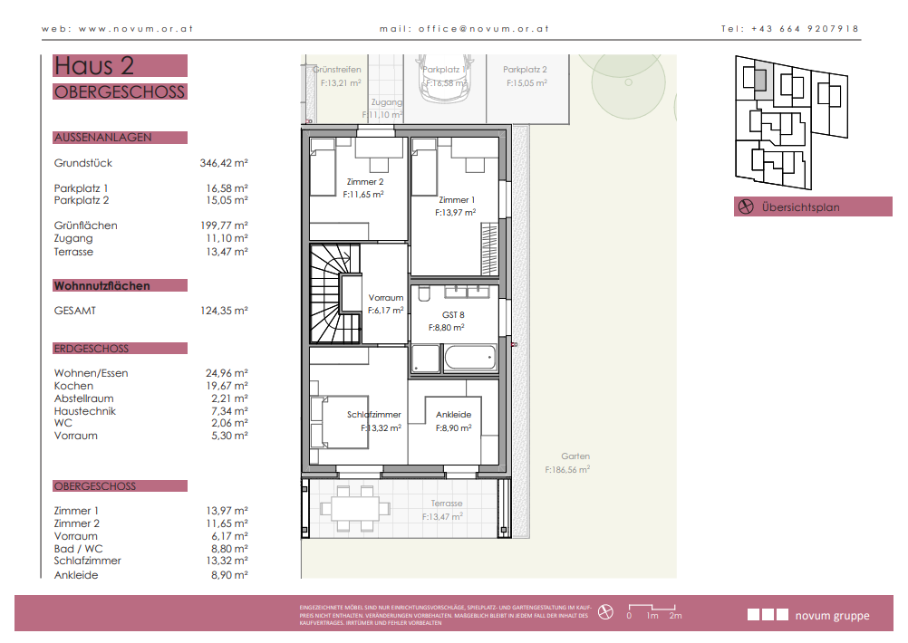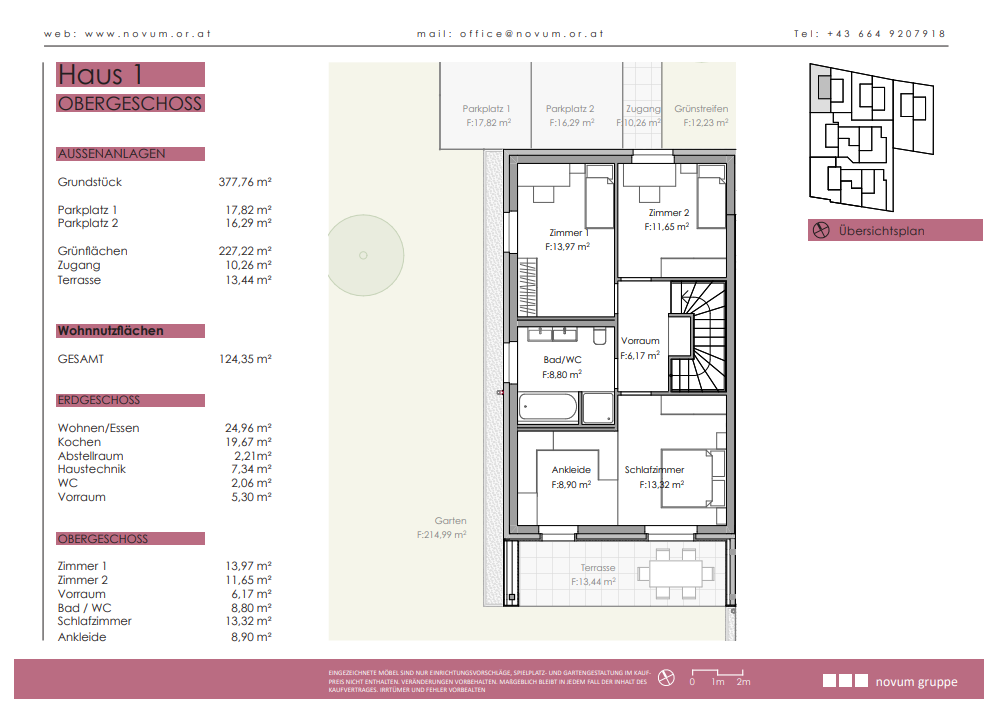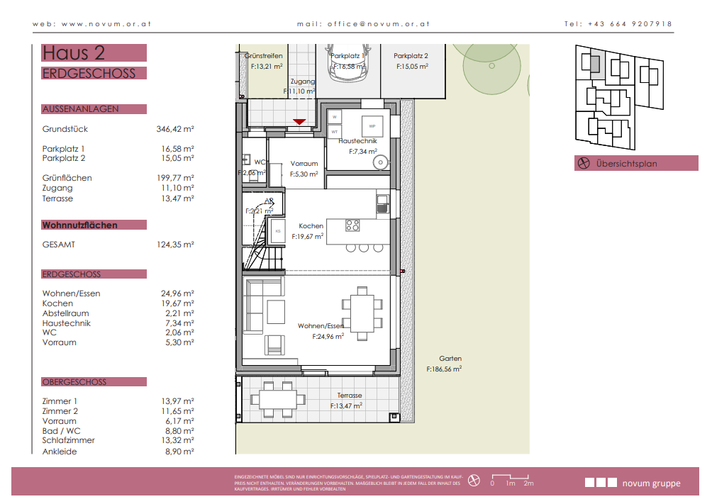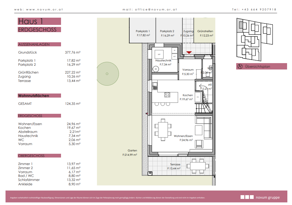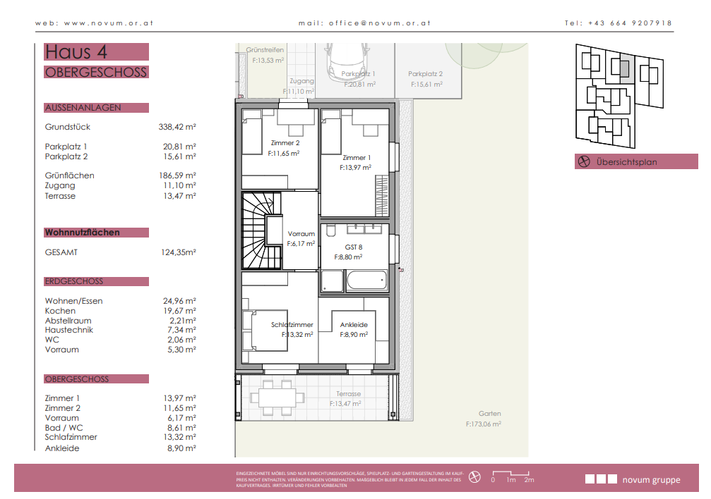 Die Anlage besticht durch eine harmonische Mischung aus 6 Doppelhaushälften und zwei modernen 3er-Reihenhausanlagen . Jede Einheit bietet ca. 125 m² Wohnnutzfläche in massiver Niedrigenergiebauweise .