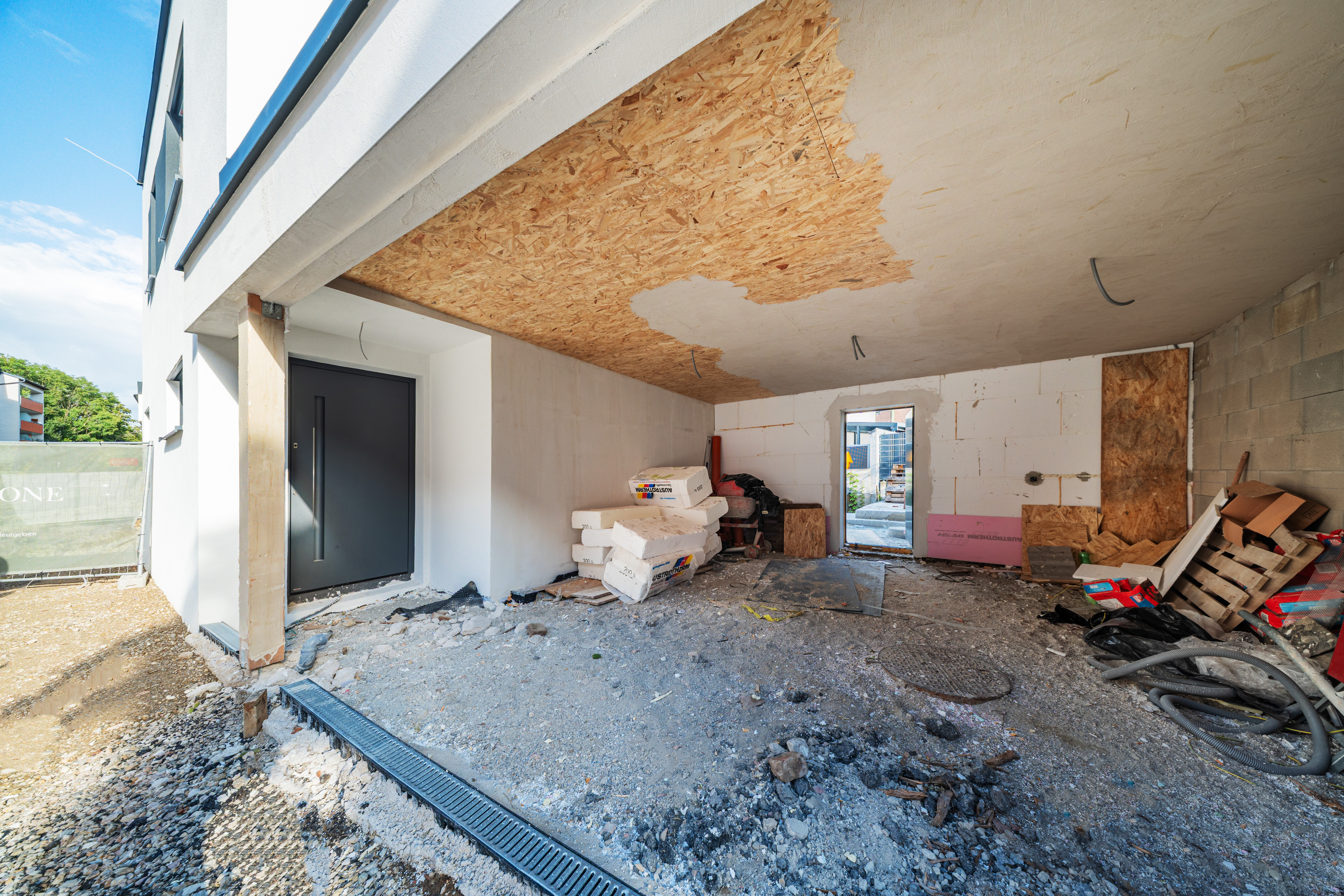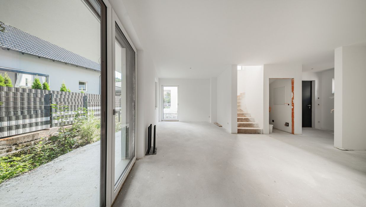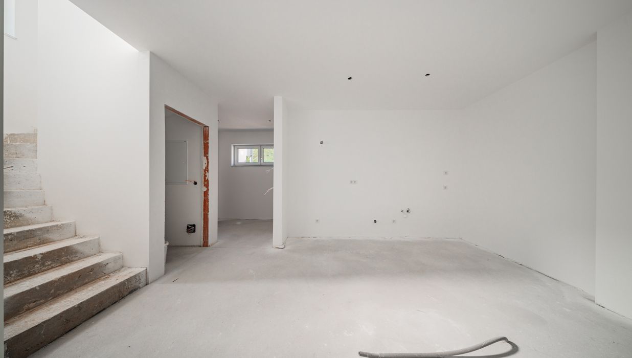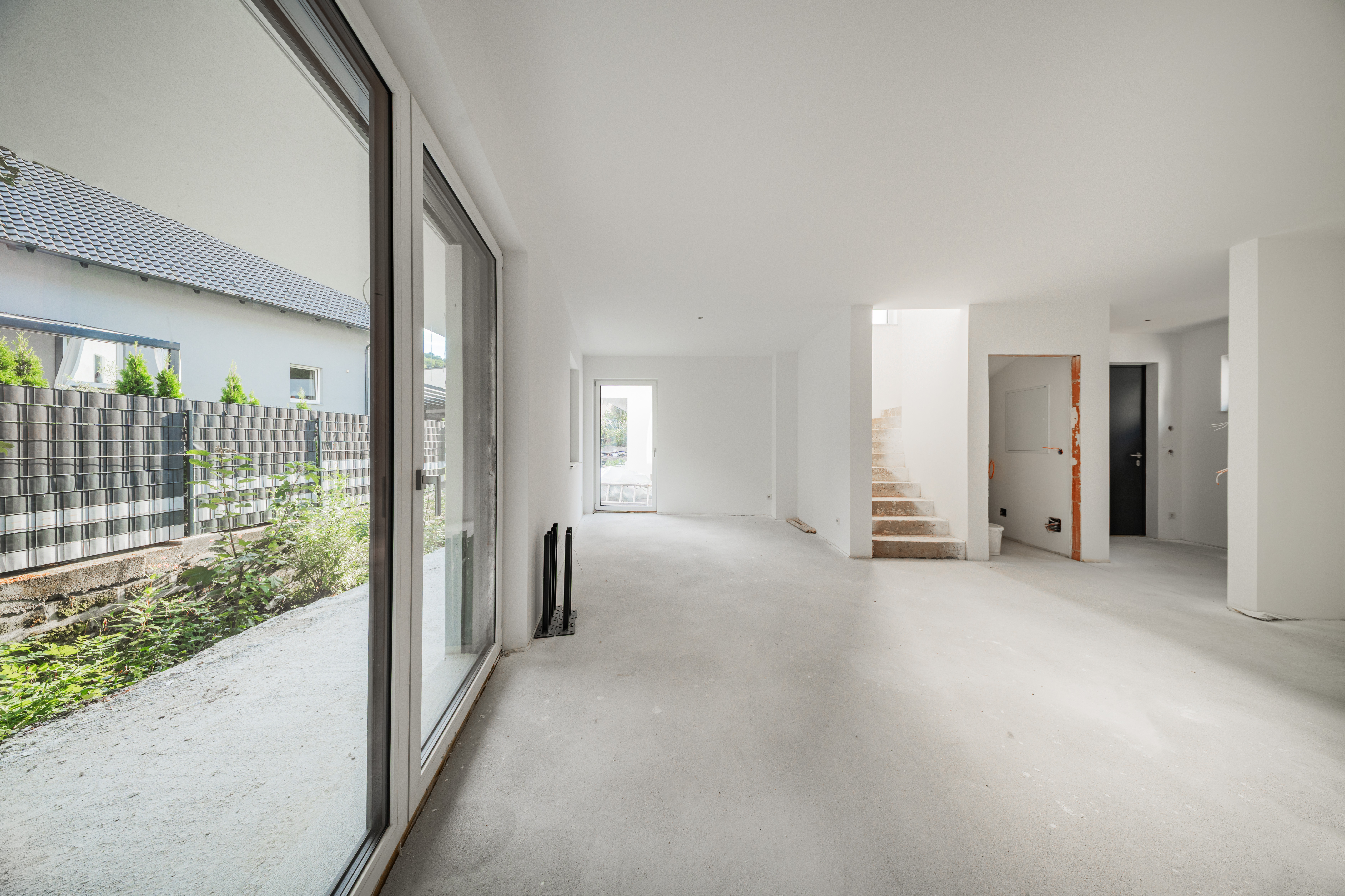 Beim Betreten des Hauses gelangen Sie zunächst in den einladenden Vorraum, der den perfekten Empfang für Bewohner und Gäste bietet. Direkt angrenzend öffnet sich der großzügige ca. 31 m² große Wohn- und Essbereich mit offener Küche, der durch seine offene Gestaltung sowohl für gesellige Abende als auch für gemütliche Familienmomente ideal ist. Ein separates WC sorgt für zusätzlichen Komfort, während der Abstellraum mit Waschmaschinenanschluss praktische Funktionalität bietet. Über die Terrasse im Erdgeschoss, die ca. 12 m² misst, gelangen Sie direkt in den Garten mit ca. 20 m², der zu entspannten Stunden im Freien, zum Spielen oder zu gemütlichen Abenden einlädt. Von hier aus gelangen Sie auf die private Dachterrasse mit ca. 34 m² , welche einen ungestörten Blick ins Grüne bietet – ein perfekter Ort für Entspannung, Sonnenbäder oder laue Sommerabende.