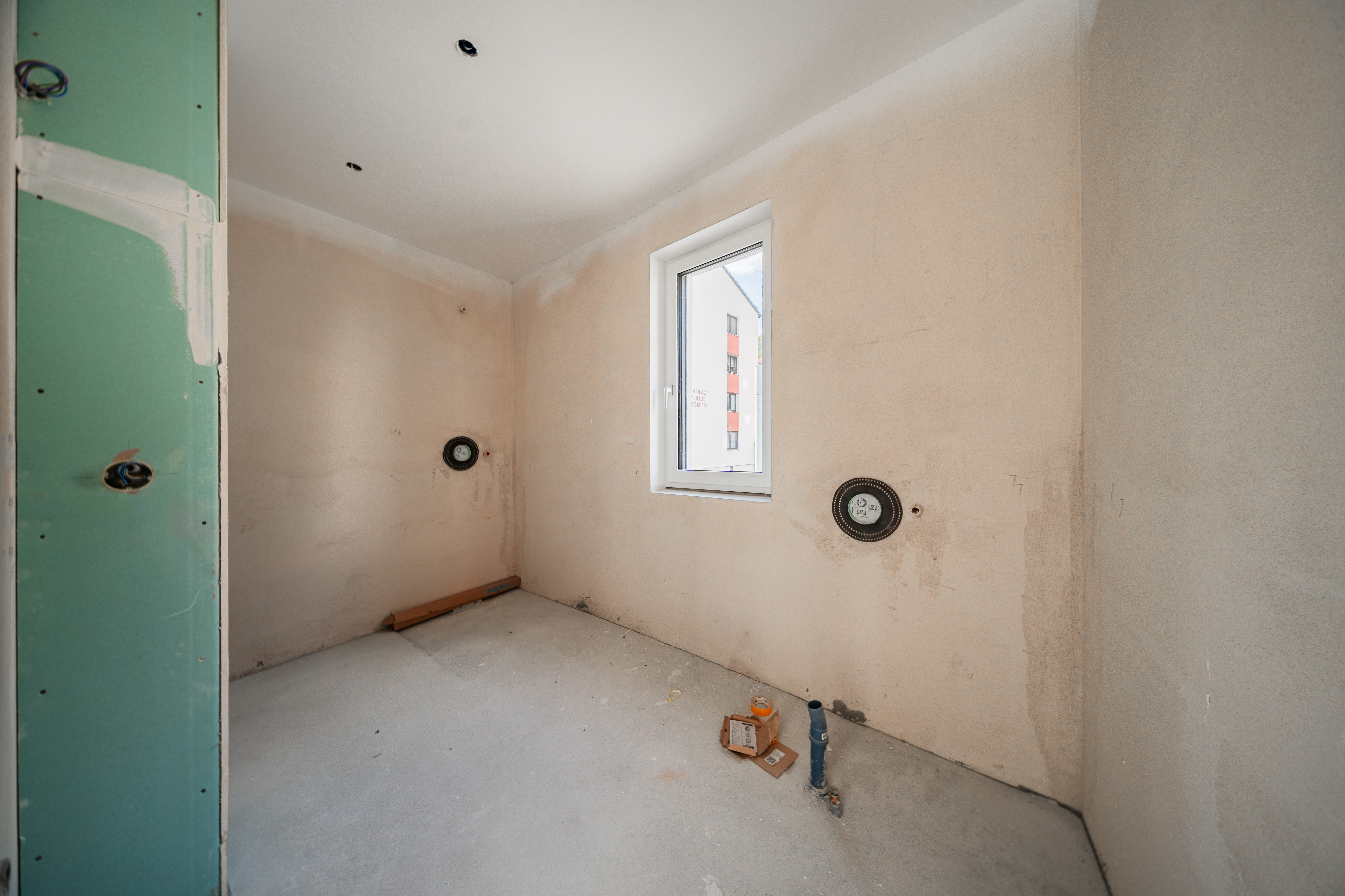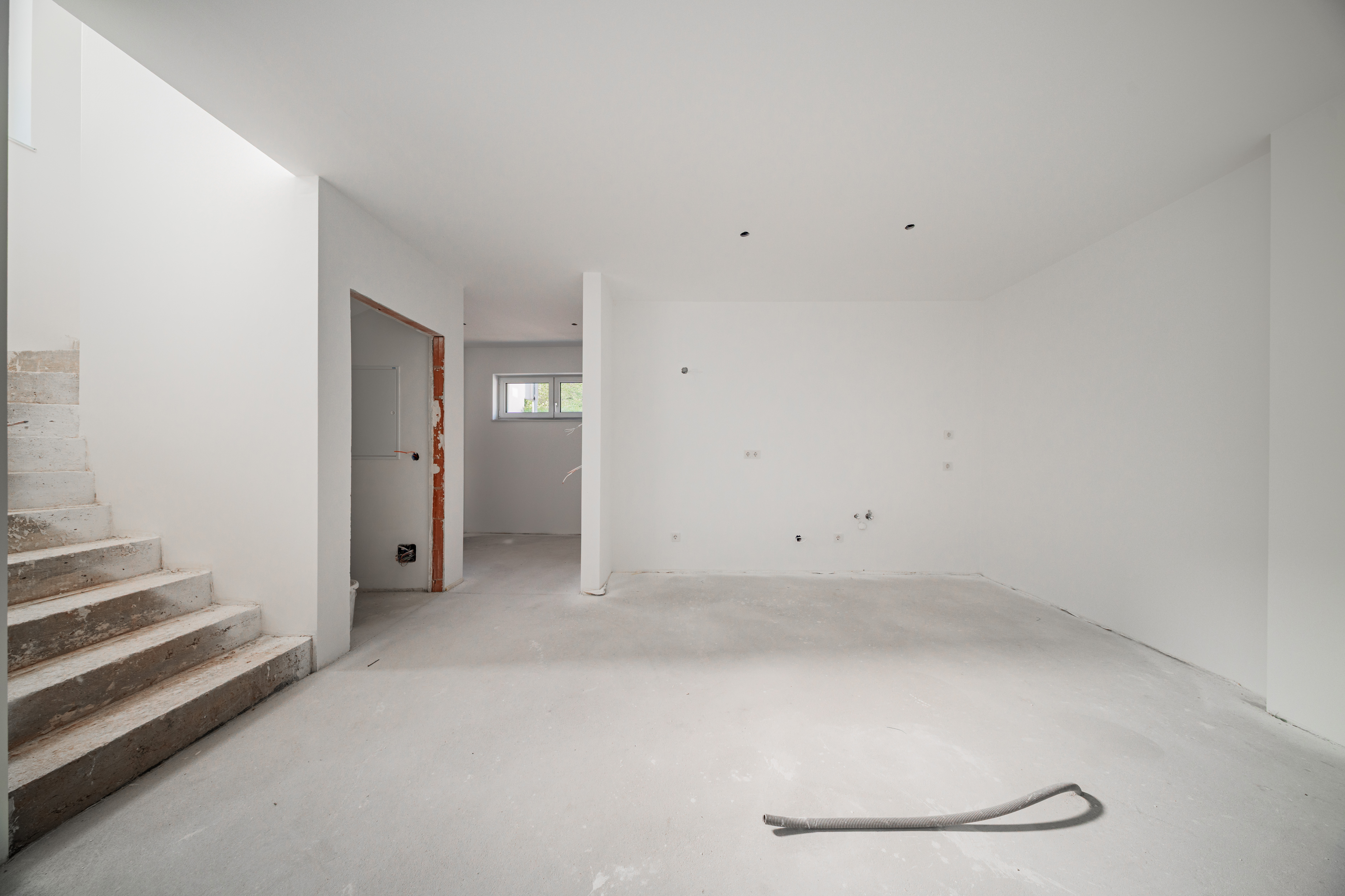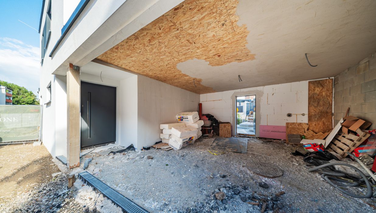 Beim Betreten des Hauses gelangen Sie zunächst in den einladenden Vorraum, der den perfekten Empfang für Bewohner und Gäste bietet. Direkt angrenzend öffnet sich der großzügige ca. 31 m² große Wohn- und Essbereich mit offener Küche, der durch seine offene Gestaltung sowohl für gesellige Abende als auch für gemütliche Familienmomente ideal ist. Ein separates WC sorgt für zusätzlichen Komfort, während der Abstellraum mit Waschmaschinenanschluss praktische Funktionalität bietet. Über die Terrasse im Erdgeschoss, die ca. 12 m² misst, gelangen Sie direkt in den Garten mit ca. 20 m², der zu entspannten Stunden im Freien, zum Spielen oder zu gemütlichen Abenden einlädt. Von hier aus gelangen Sie auf die private Dachterrasse mit ca. 34 m² , welche einen ungestörten Blick ins Grüne bietet – ein perfekter Ort für Entspannung, Sonnenbäder oder laue Sommerabende.