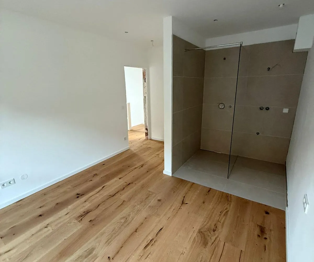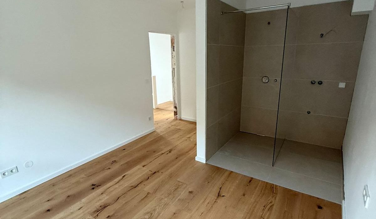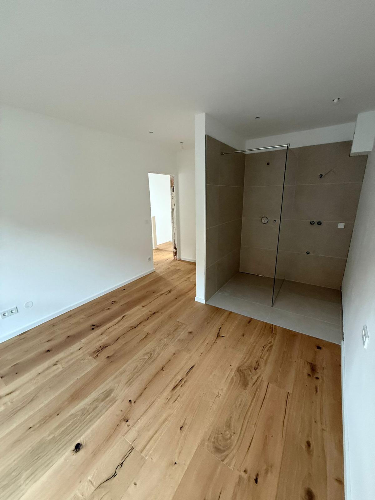 Im Obergeschoss erwarten Sie drei geräumige und lichtdurchflutete Schlafzimmer mit ca. 11 m² bis 13 m². Eines der Schlafzimmer verfügt über einen eigenen ca. 5 m² großen Schrankraum. Das elegante Badezimmer ist mit Badewanne, bodengleicher Dusche und Doppelwaschbecken ausgestattet, ein separates WC ergänzt den Komfort.