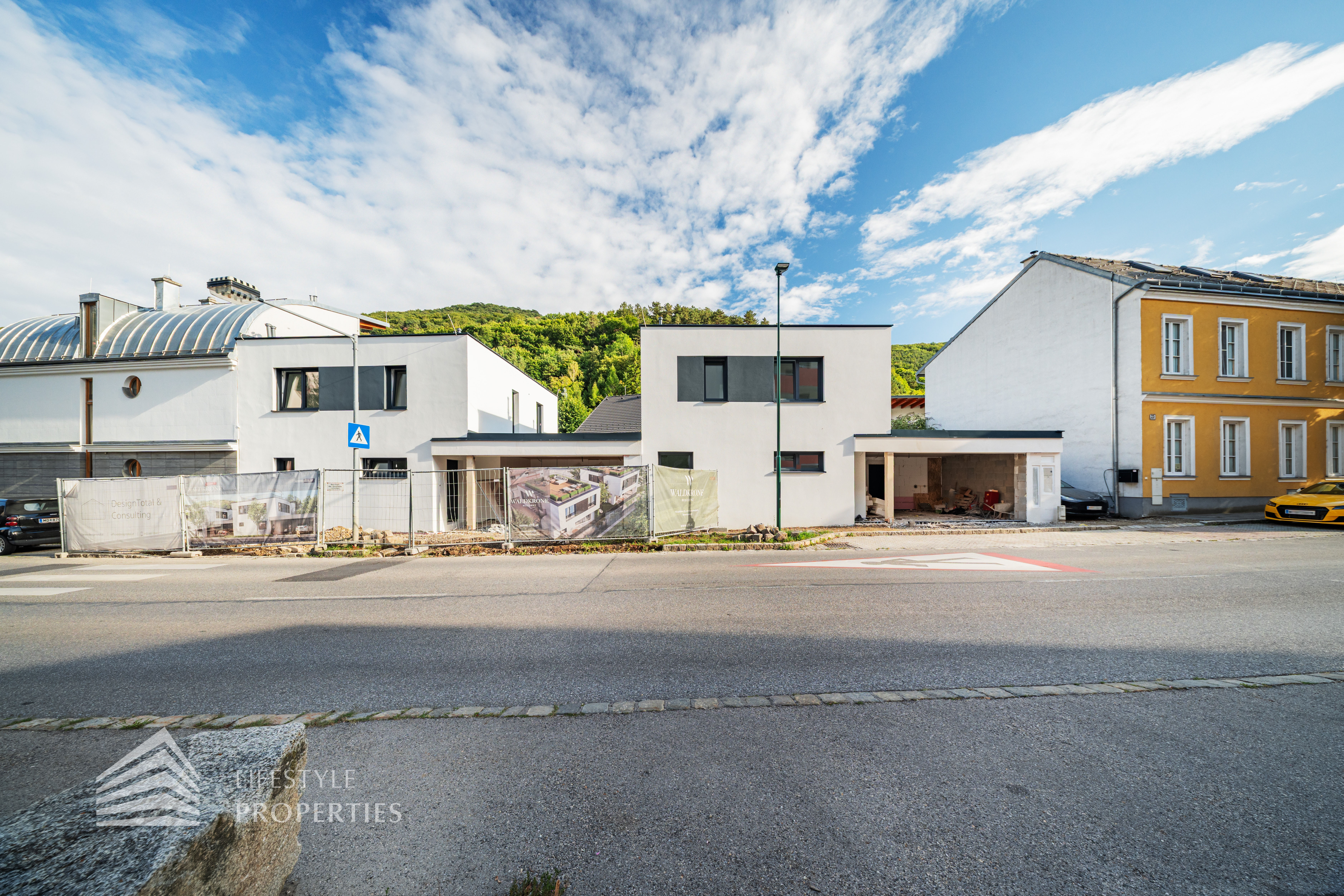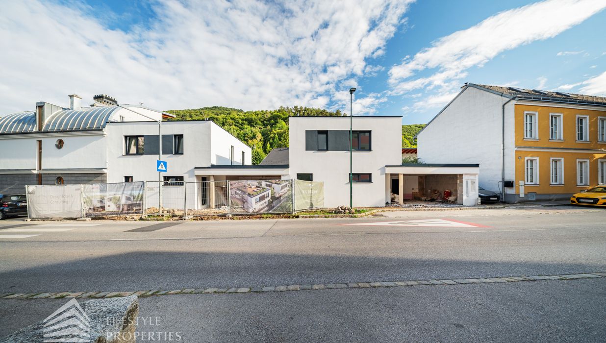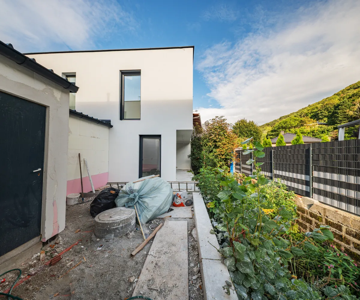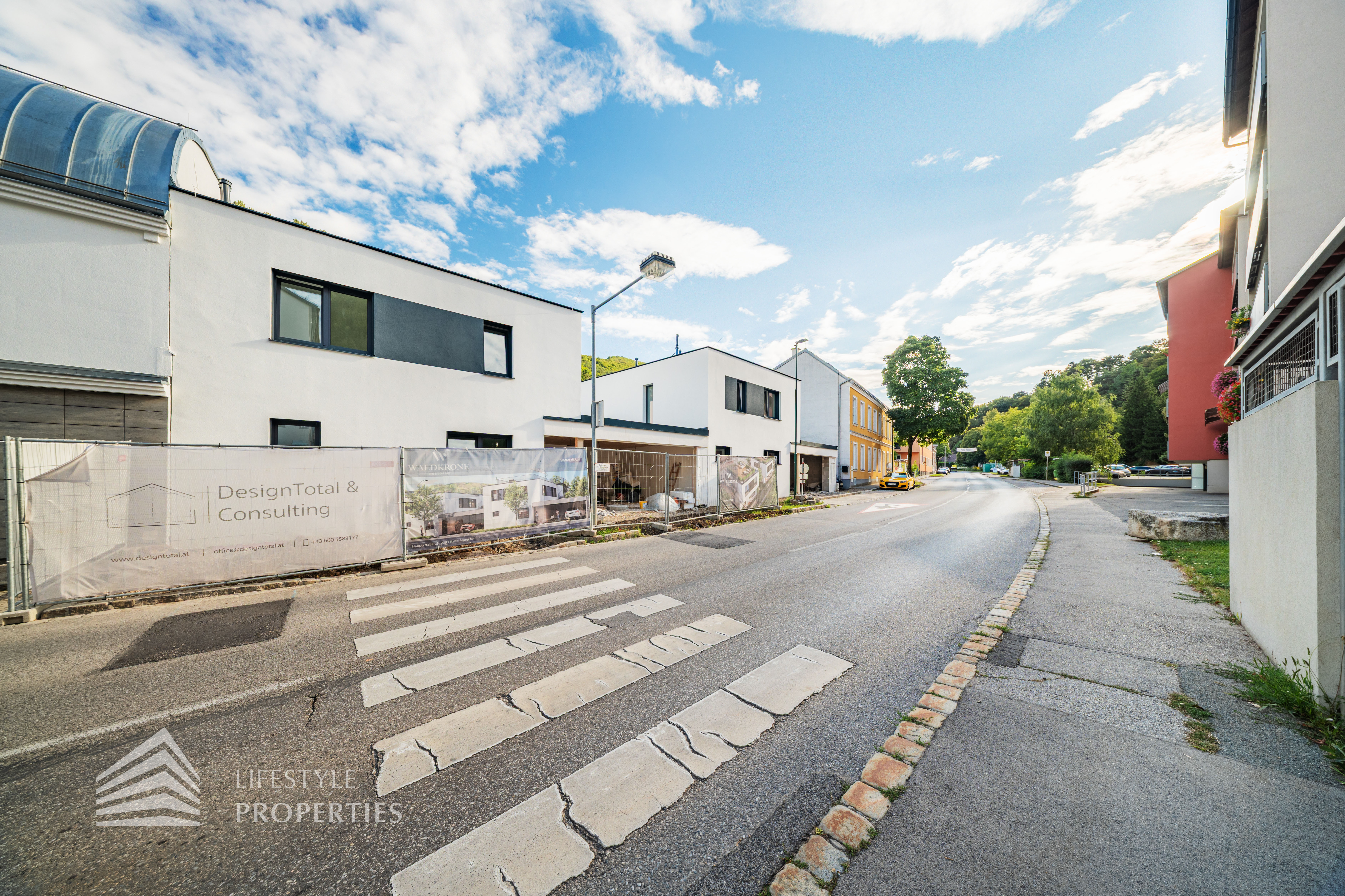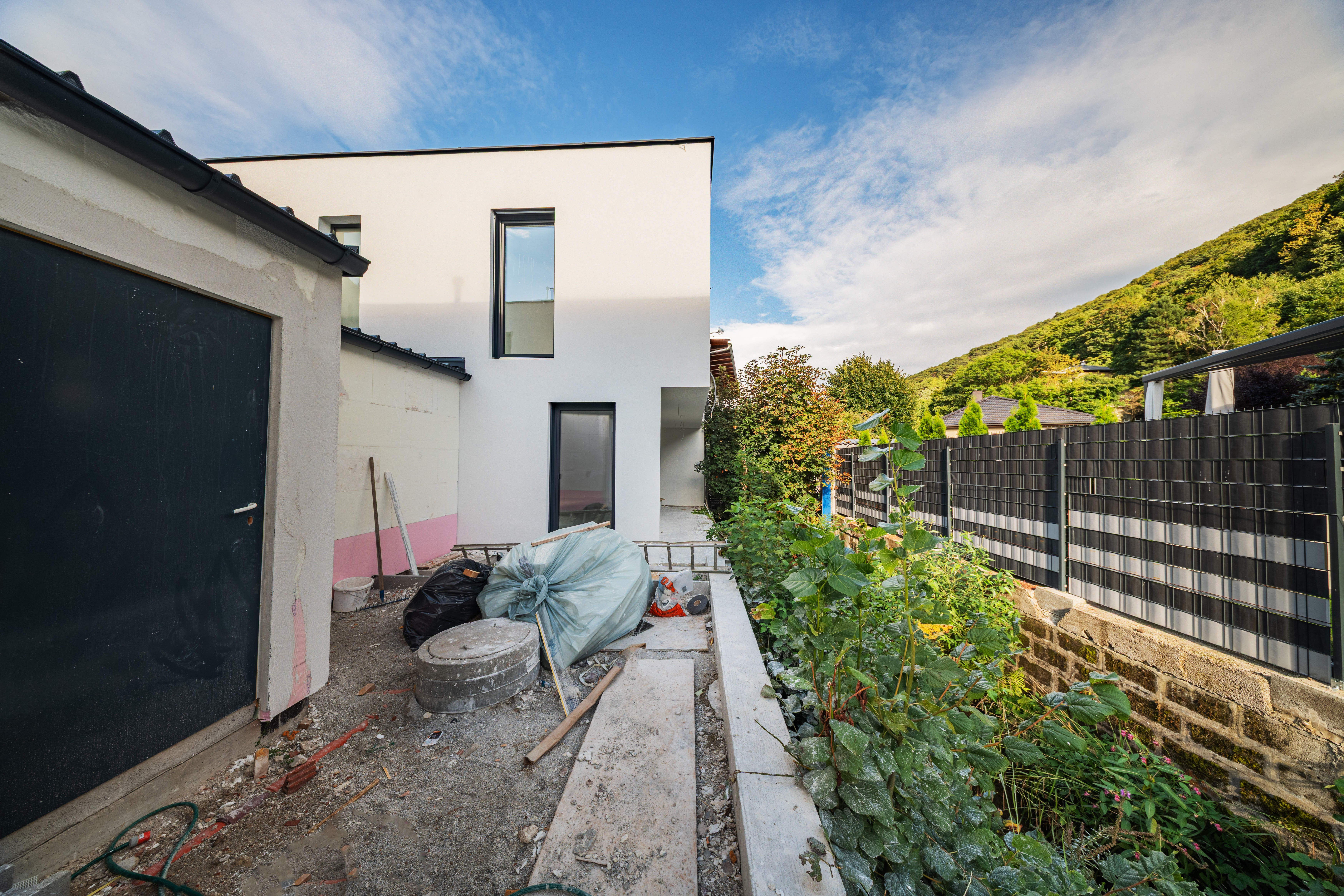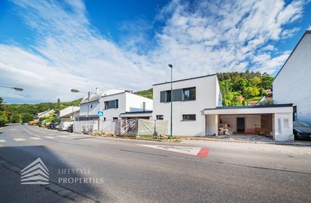 Erleben Sie exklusives Wohnen auf höchstem Niveau: Dieses stilvolle, moderne Wohnhaus verbindet zeitlose Architektur, hochwertige Materialien und innovative Haustechnik zu einem einzigartigen Wohnambiente. Großzügige Fensterflächen durchfluten die Räume mit Tageslicht, während die private Dachterrasse, die sonnige Terrasse im Erdgeschoss und der direkt zugängliche Garten ungestörte Ausblicke ins Grüne bieten und zu entspannten Stunden im Freien einladen. Ein Carport für zwei Fahrzeuge, Smart-Home-Steuerung sowie ein App-gesteuertes Alarmsystem sorgen für höchsten Komfort und Sicherheit. Natur, Stil und modernste Technik treffen hier harmonisch aufeinander und schaffen ein exklusives Zuhause, nur wenige Kilometer von Wien entfernt, mit rascher Anbindung an die Innenstadt und die schönsten Naherholungsgebiete des Wienerwaldes.