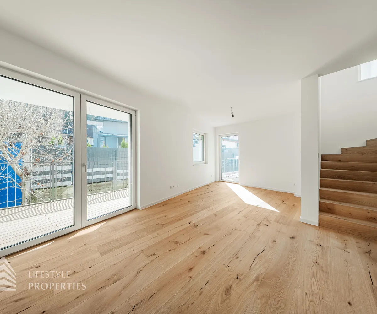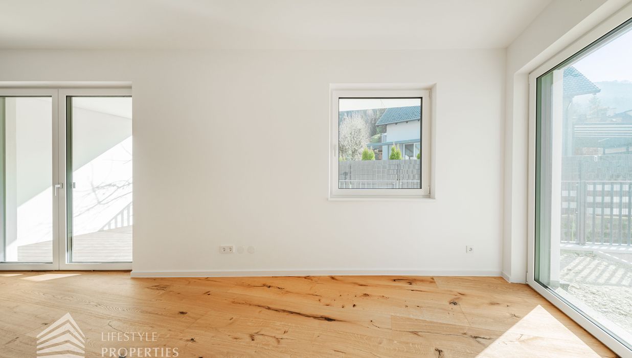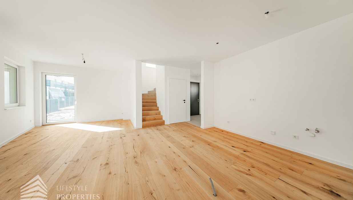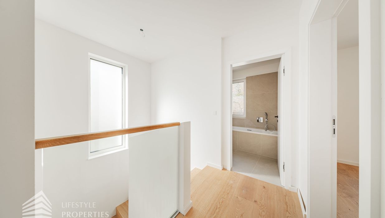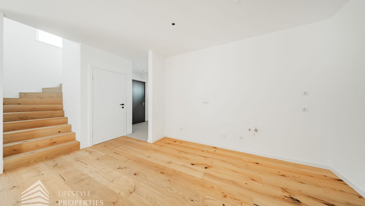 Die gesamte Haustechnik und Ausstattung wurde nach modernsten Standards umgesetzt: Fußbodenheizung mit Einzelraumregelung, die Wärmeversorgung erfolgt über eine dezentrale Luftwärmepumpe mit Pufferspeicher für jede Wohneinheit, Smart-Home-System (GIRA KNX oder gleichwertig) zur Steuerung von Licht, Raffstores und Temperatur, App-gesteuertes Alarmsystem, Videogegensprechanlage mit Smartphone-Anbindung, elektronisches Türöffnungssystem (Fingerprint, Zahlencode oder Schlüssel), hochwertiges Marken-Eichenparkett (Weitzer, Langdiele), italienisches Feinsteinzeug in den Bädern, Sanitärobjekte von Laufen Pro S, Armaturen von Hansgrohe, bodengleiche Dusche mit Echtglasabtrennung, elektrische Raffstores an allen Fenstern, Vorbereitung für Split-Klimaanlage (Außengeräte im Gartenbereich, Innengeräte im Wohnzimmer oder Stiegenaufgang (Installation nach Wunsch und gegen Aufpreis), Vorbereitung für E-Ladestation.