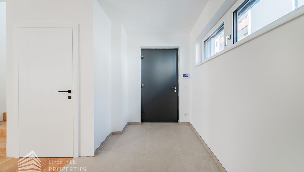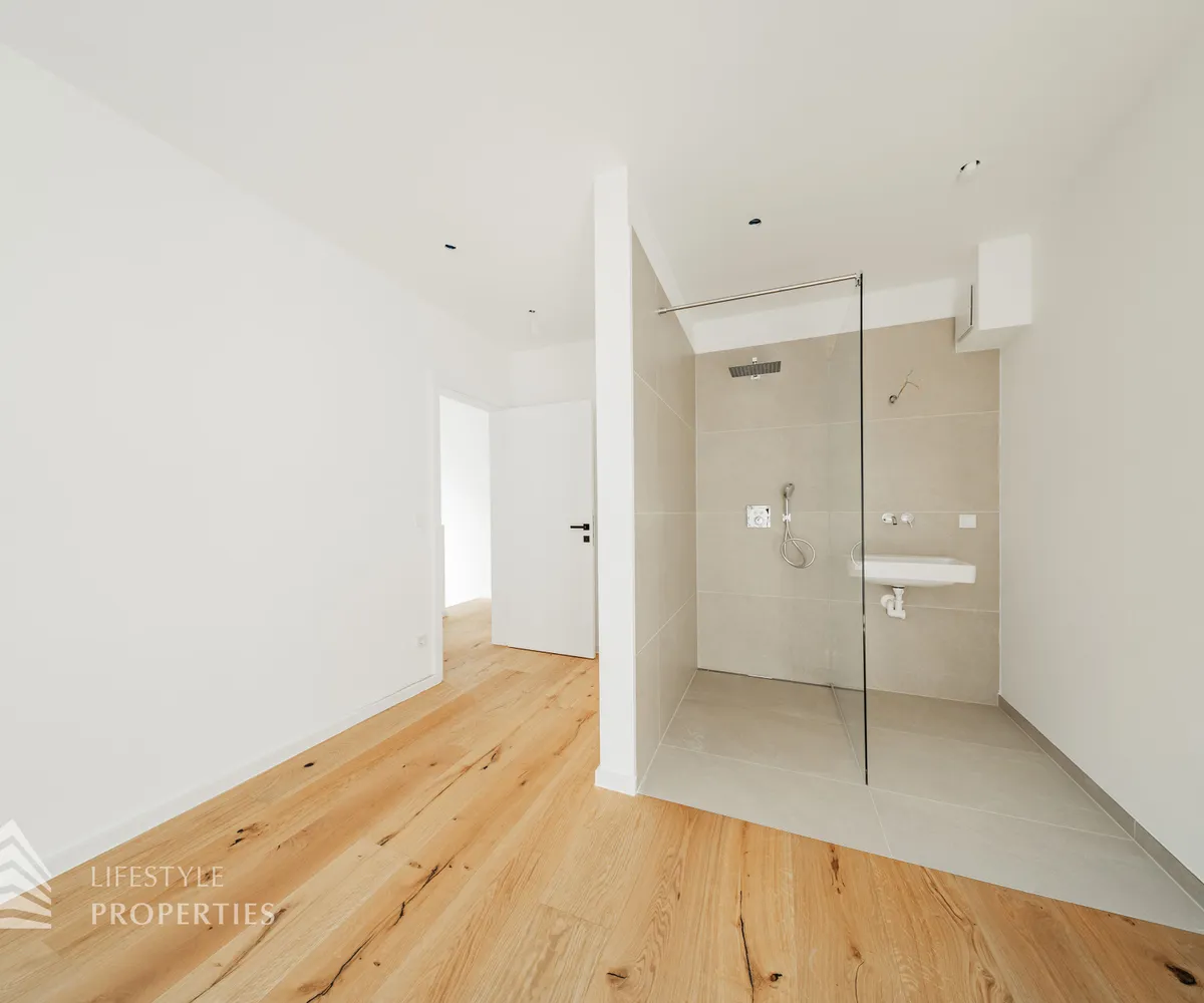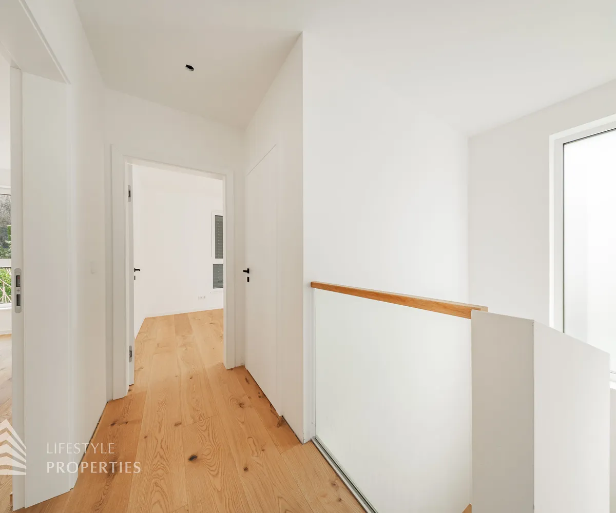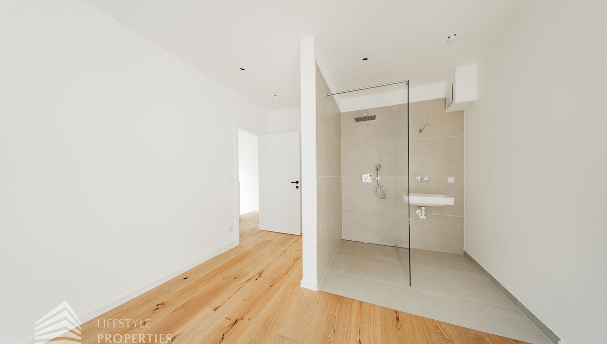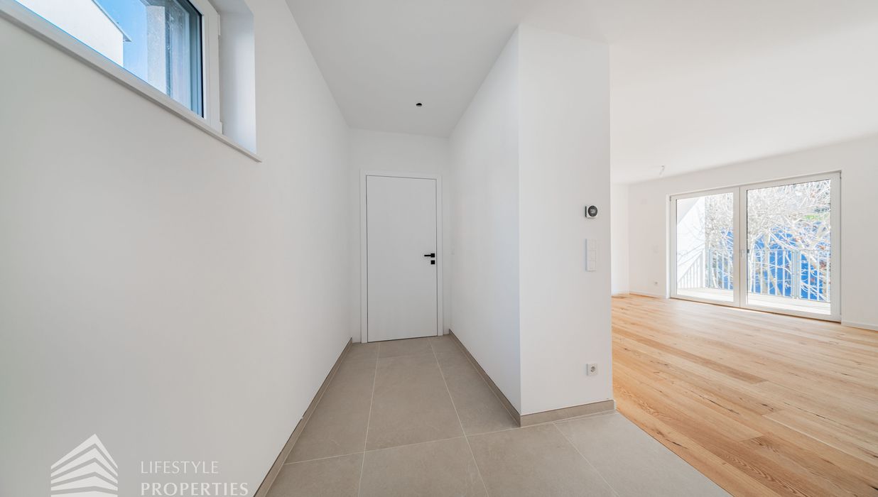 Die gesamte Haustechnik und Ausstattung wurde nach modernsten Standards umgesetzt: Fußbodenheizung mit Einzelraumregelung, die Wärmeversorgung erfolgt über eine dezentrale Luftwärmepumpe mit Pufferspeicher für jede Wohneinheit, Smart-Home-System (GIRA KNX oder gleichwertig) zur Steuerung von Licht, Raffstores und Temperatur, App-gesteuertes Alarmsystem, Videogegensprechanlage mit Smartphone-Anbindung, elektronisches Türöffnungssystem (Fingerprint, Zahlencode oder Schlüssel), hochwertiges Marken-Eichenparkett (Weitzer, Langdiele), italienisches Feinsteinzeug in den Bädern, Sanitärobjekte von Laufen Pro S, Armaturen von Hansgrohe, bodengleiche Dusche mit Echtglasabtrennung, elektrische Raffstores an allen Fenstern, Vorbereitung für Split-Klimaanlage (Außengeräte im Gartenbereich, Innengeräte im Wohnzimmer oder Stiegenaufgang (Installation nach Wunsch und gegen Aufpreis), Vorbereitung für E-Ladestation.