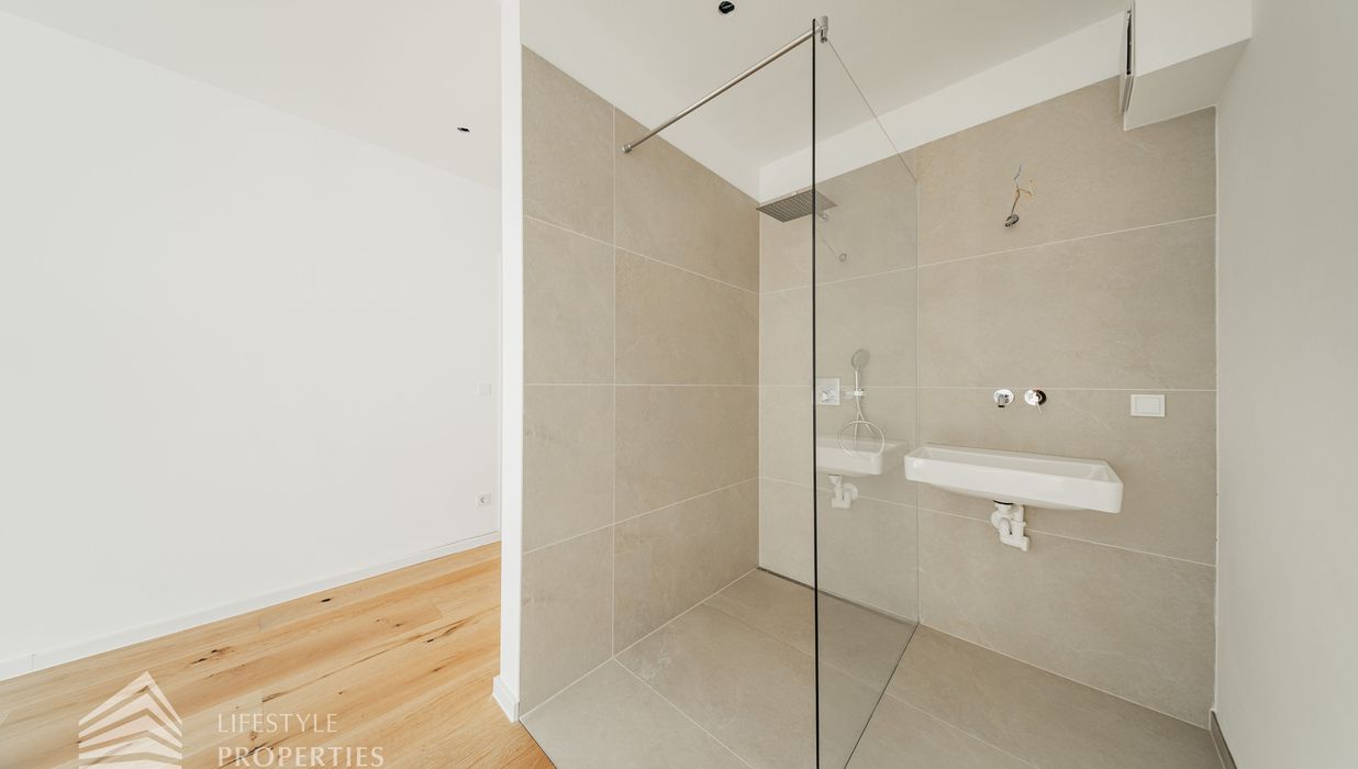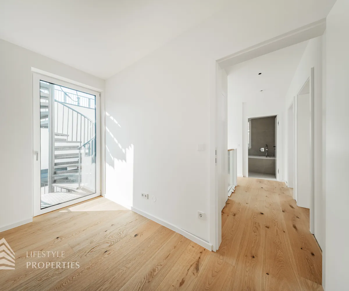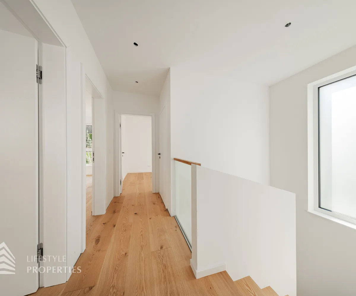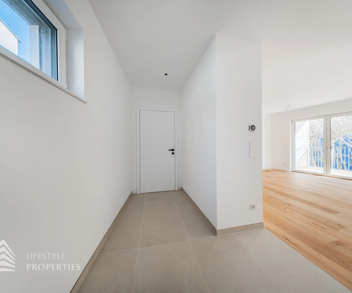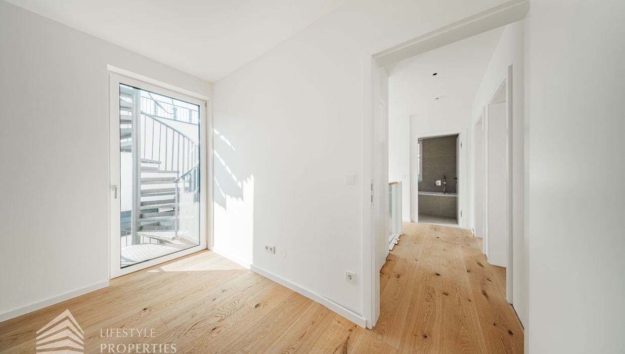 Die gesamte Haustechnik und Ausstattung wurde nach modernsten Standards umgesetzt: Fußbodenheizung mit Einzelraumregelung, die Wärmeversorgung erfolgt über eine dezentrale Luftwärmepumpe mit Pufferspeicher für jede Wohneinheit, Smart-Home-System (GIRA KNX oder gleichwertig) zur Steuerung von Licht, Raffstores und Temperatur, App-gesteuertes Alarmsystem, Videogegensprechanlage mit Smartphone-Anbindung, elektronisches Türöffnungssystem (Fingerprint, Zahlencode oder Schlüssel), hochwertiges Marken-Eichenparkett (Weitzer, Langdiele), italienisches Feinsteinzeug in den Bädern, Sanitärobjekte von Laufen Pro S, Armaturen von Hansgrohe, bodengleiche Dusche mit Echtglasabtrennung, elektrische Raffstores an allen Fenstern, Vorbereitung für Split-Klimaanlage (Außengeräte im Gartenbereich, Innengeräte im Wohnzimmer oder Stiegenaufgang (Installation nach Wunsch und gegen Aufpreis), Vorbereitung für E-Ladestation.