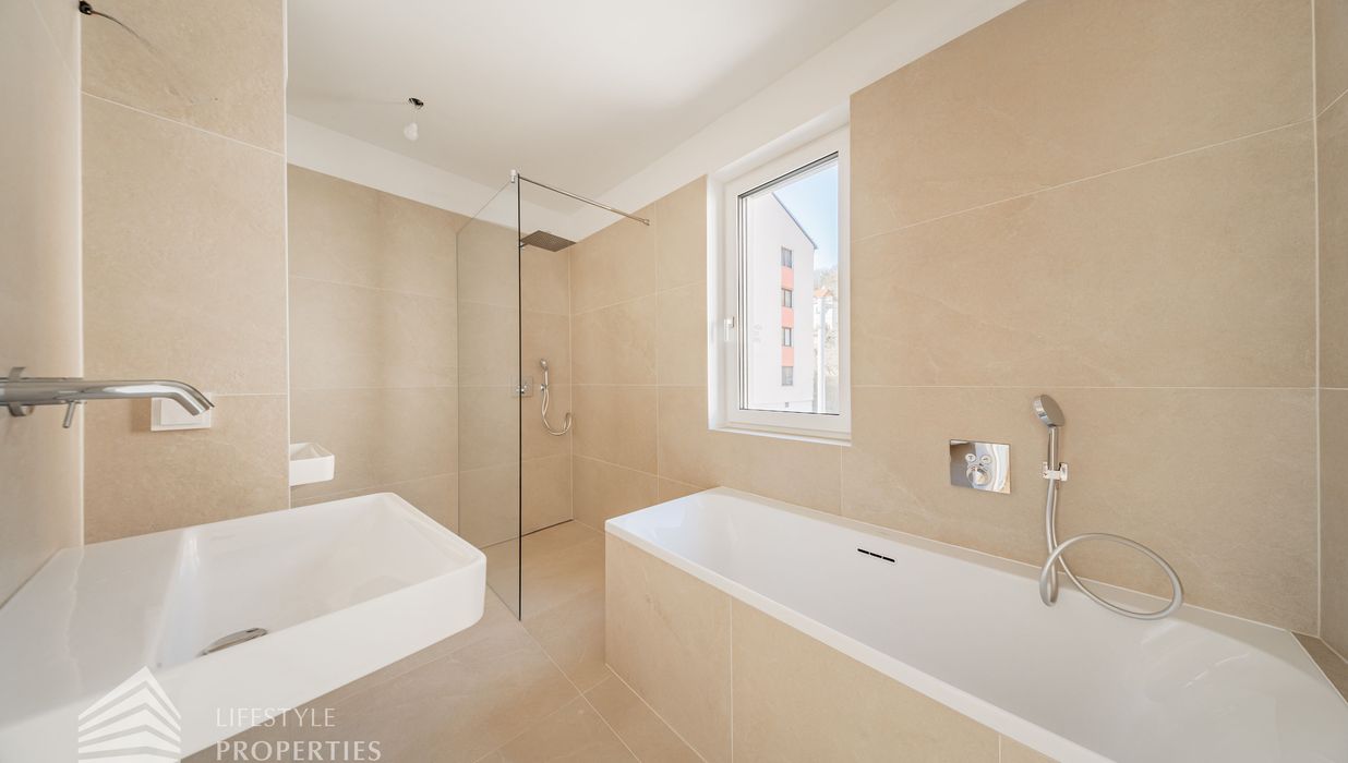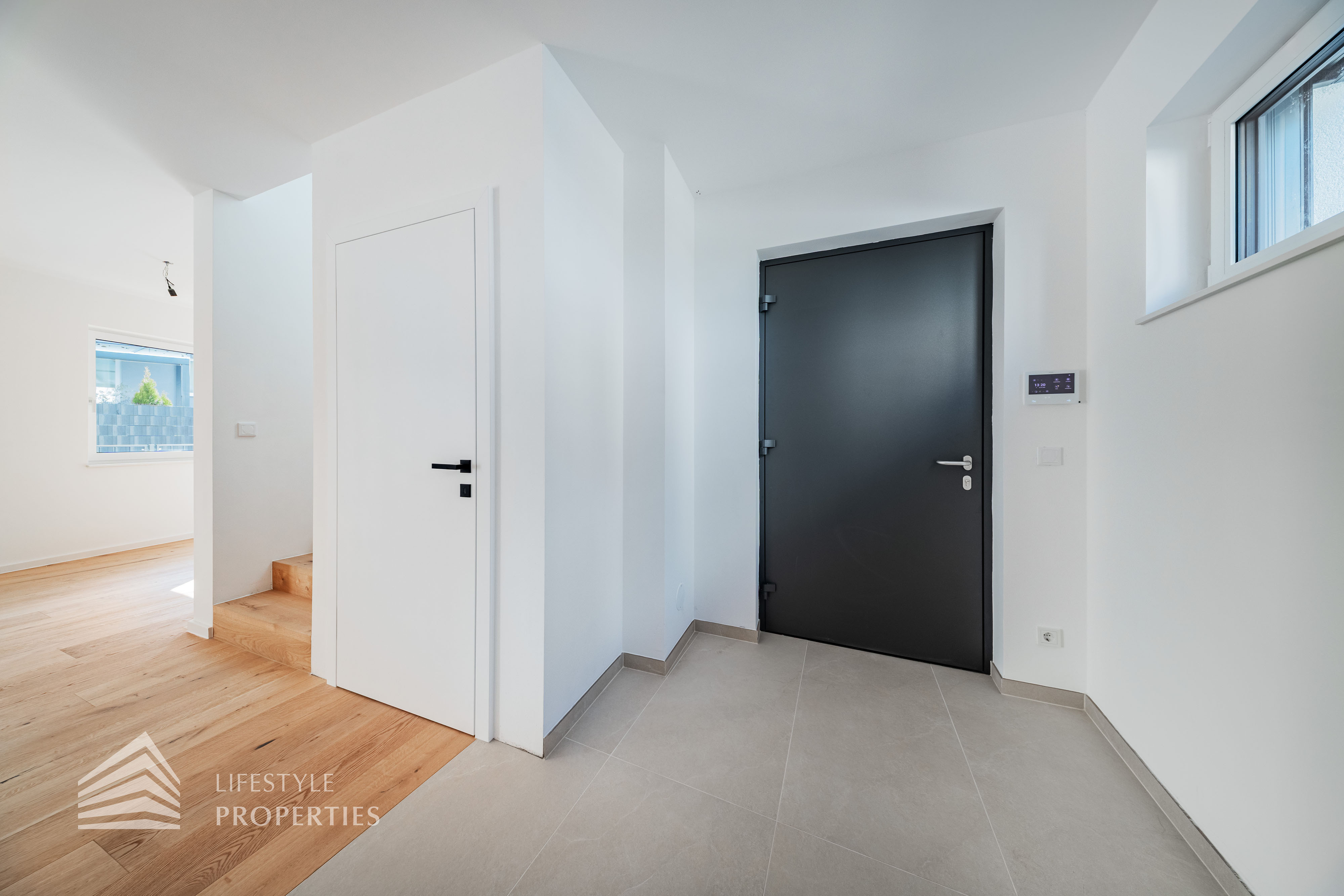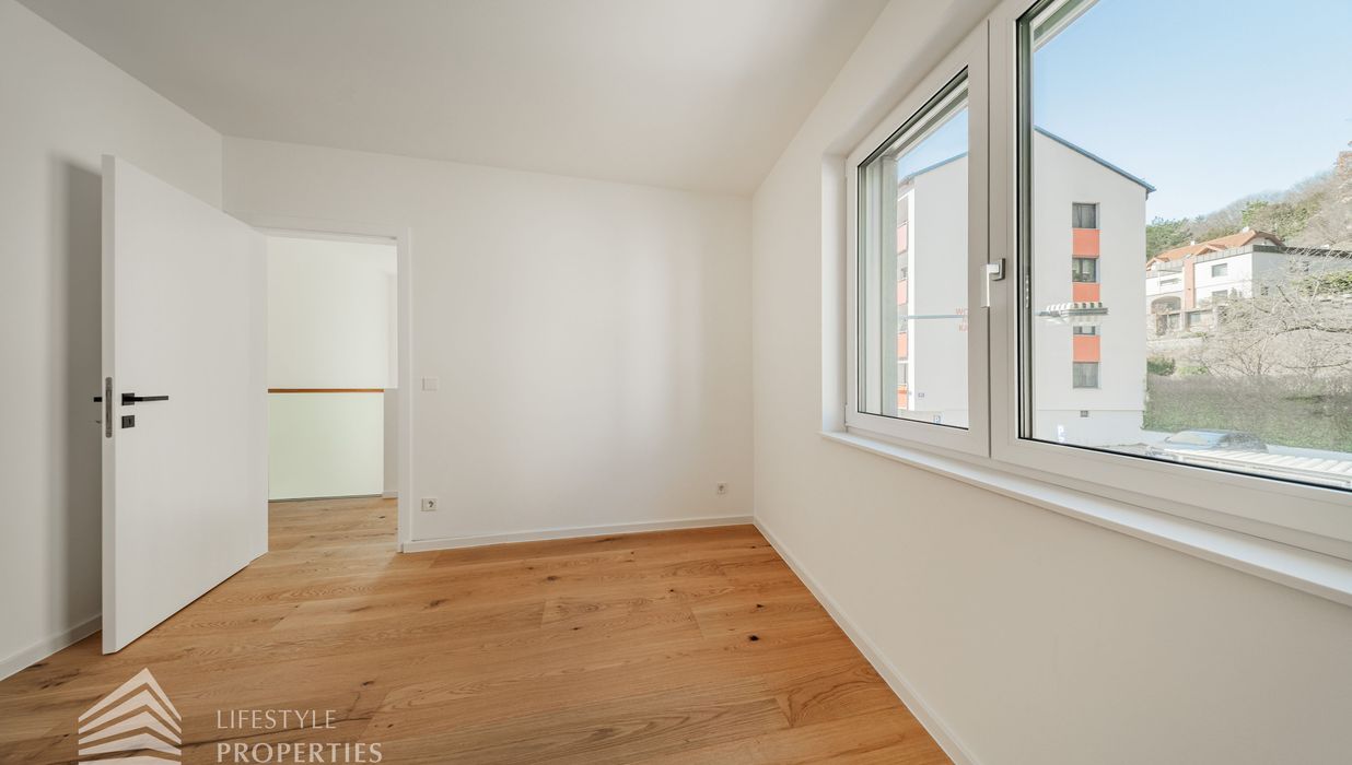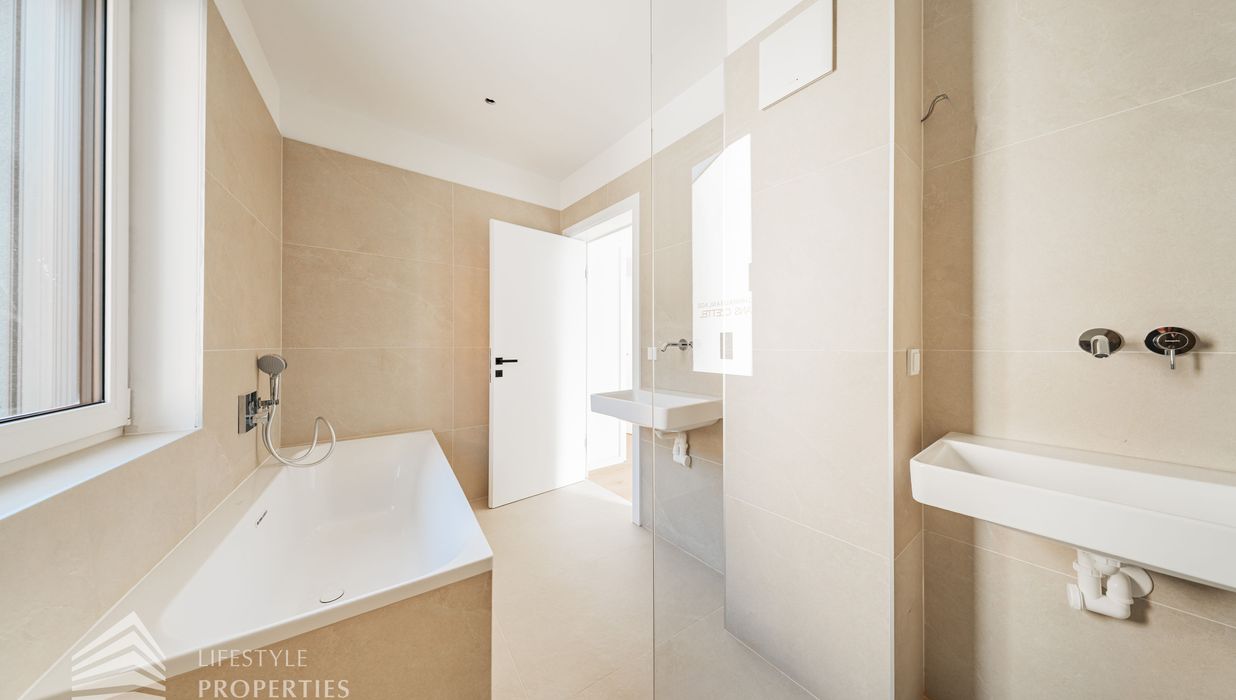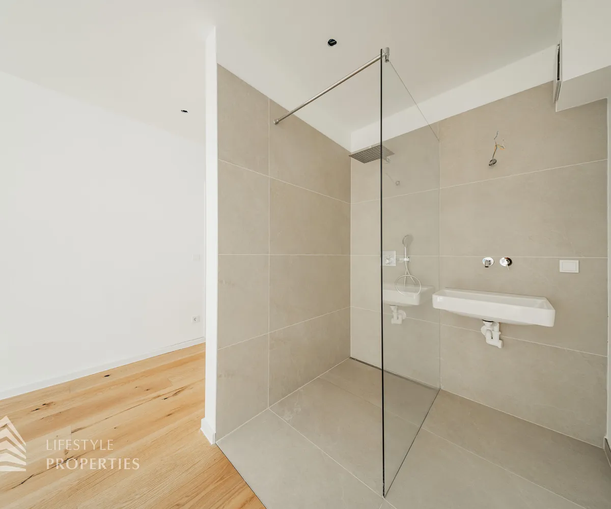 Die gesamte Haustechnik und Ausstattung wurde nach modernsten Standards umgesetzt: Fußbodenheizung mit Einzelraumregelung, die Wärmeversorgung erfolgt über eine dezentrale Luftwärmepumpe mit Pufferspeicher für jede Wohneinheit, Smart-Home-System (GIRA KNX oder gleichwertig) zur Steuerung von Licht, Raffstores und Temperatur, App-gesteuertes Alarmsystem, Videogegensprechanlage mit Smartphone-Anbindung, elektronisches Türöffnungssystem (Fingerprint, Zahlencode oder Schlüssel), hochwertiges Marken-Eichenparkett (Weitzer, Langdiele), italienisches Feinsteinzeug in den Bädern, Sanitärobjekte von Laufen Pro S, Armaturen von Hansgrohe, bodengleiche Dusche mit Echtglasabtrennung, elektrische Raffstores an allen Fenstern, Vorbereitung für Split-Klimaanlage (Außengeräte im Gartenbereich, Innengeräte im Wohnzimmer oder Stiegenaufgang (Installation nach Wunsch und gegen Aufpreis), Vorbereitung für E-Ladestation.