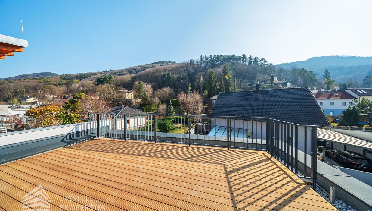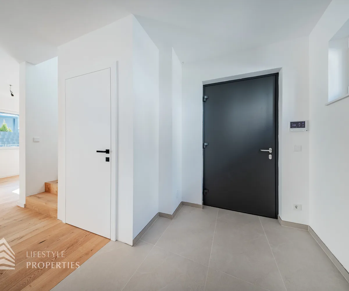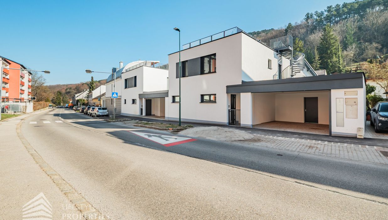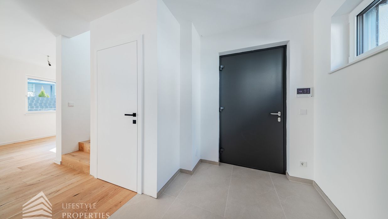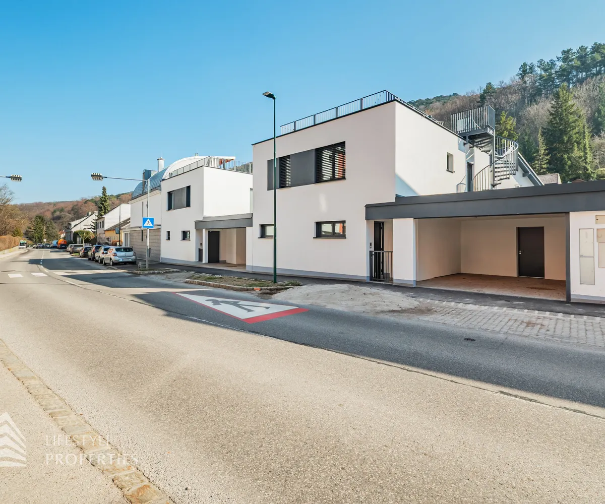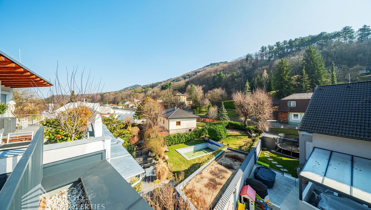 Erleben Sie exklusives Wohnen auf höchstem Niveau: Dieses stilvolle, moderne Wohnhaus verbindet zeitlose Architektur, hochwertige Materialien und innovative Haustechnik zu einem einzigartigen Wohnambiente. Großzügige Fensterflächen durchfluten die Räume mit Tageslicht, während die private Dachterrasse, die sonnige Terrasse im Erdgeschoss und der direkt zugängliche Garten ungestörte Ausblicke ins Grüne bieten und zu entspannten Stunden im Freien einladen. Ein Carport für zwei Fahrzeuge, Smart-Home-Steuerung sowie ein App-gesteuertes Alarmsystem sorgen für höchsten Komfort und Sicherheit. Natur, Stil und modernste Technik treffen hier harmonisch aufeinander und schaffen ein exklusives Zuhause, nur wenige Kilometer von Wien entfernt, mit rascher Anbindung an die Innenstadt und die schönsten Naherholungsgebiete des Wienerwaldes.