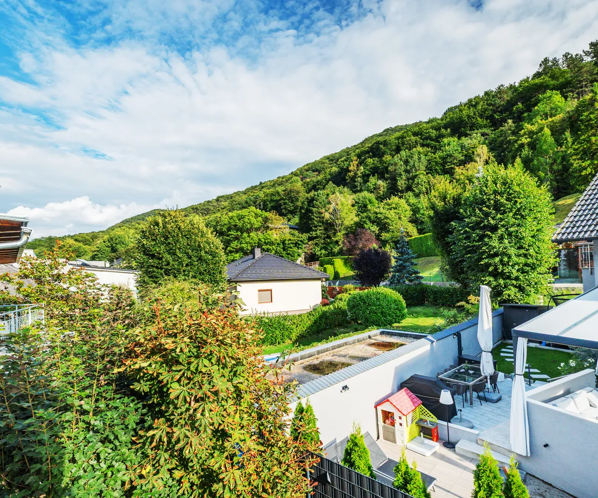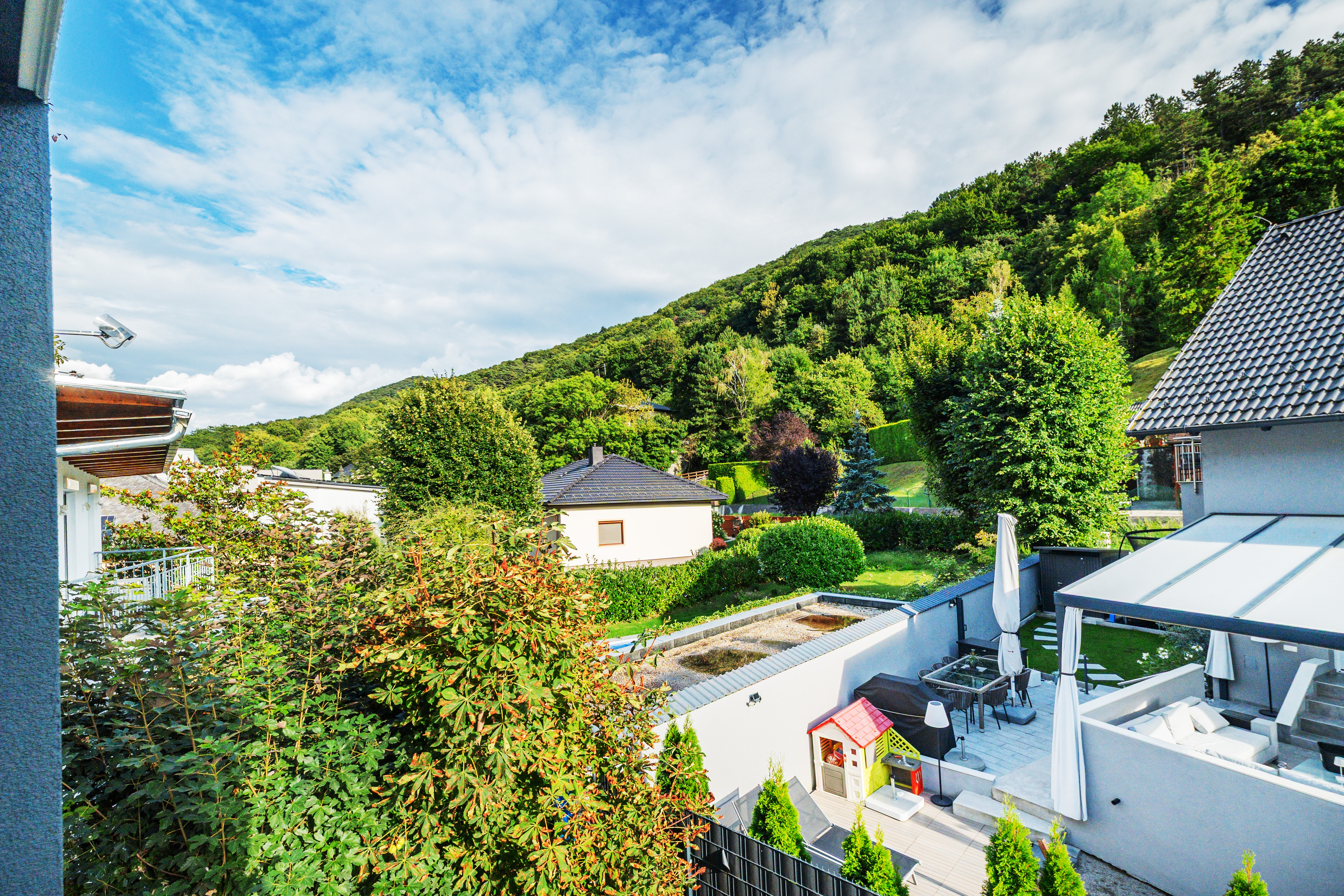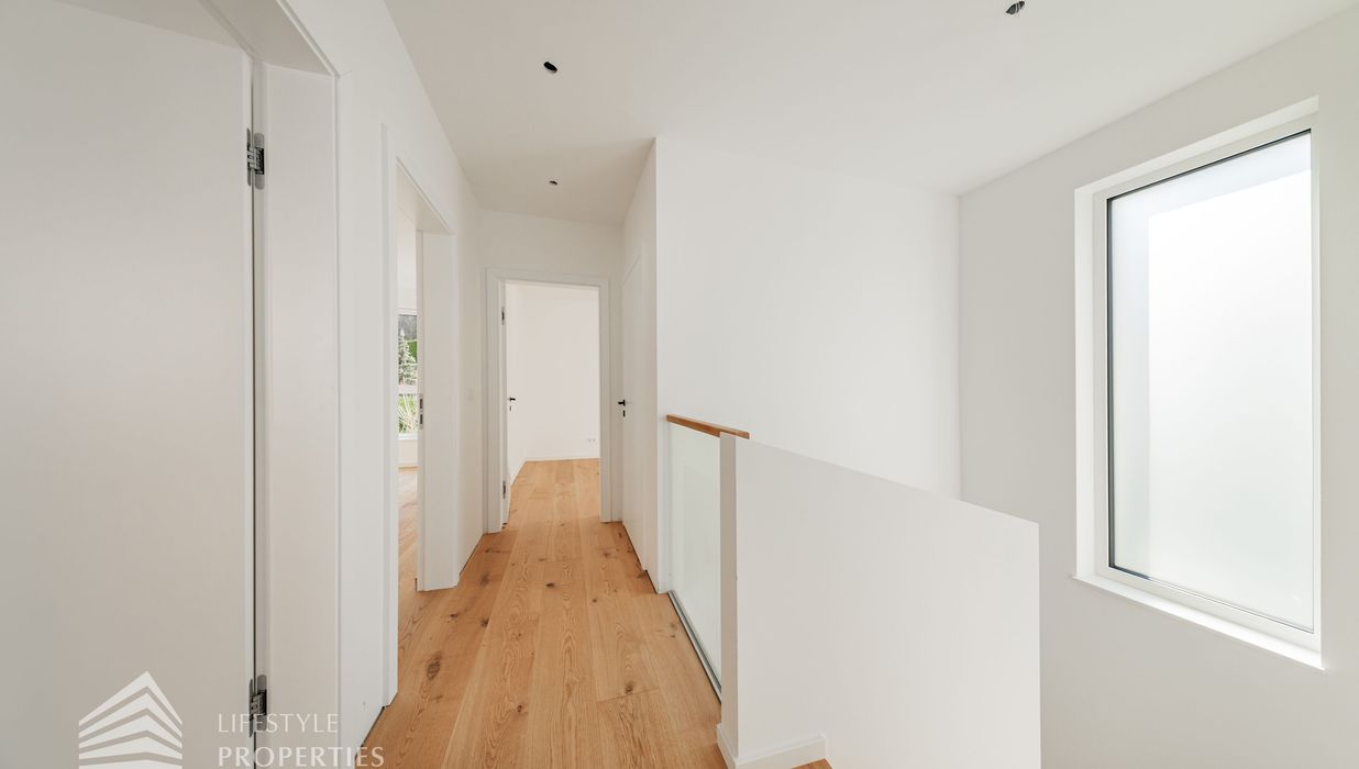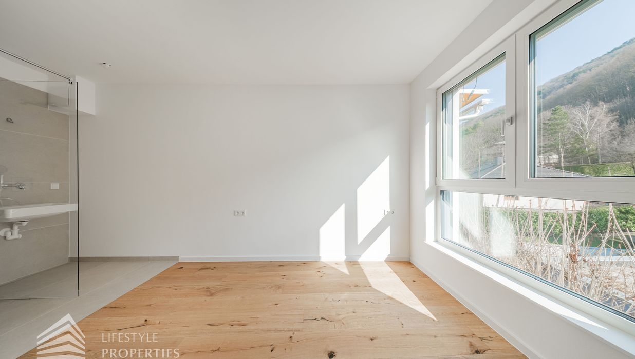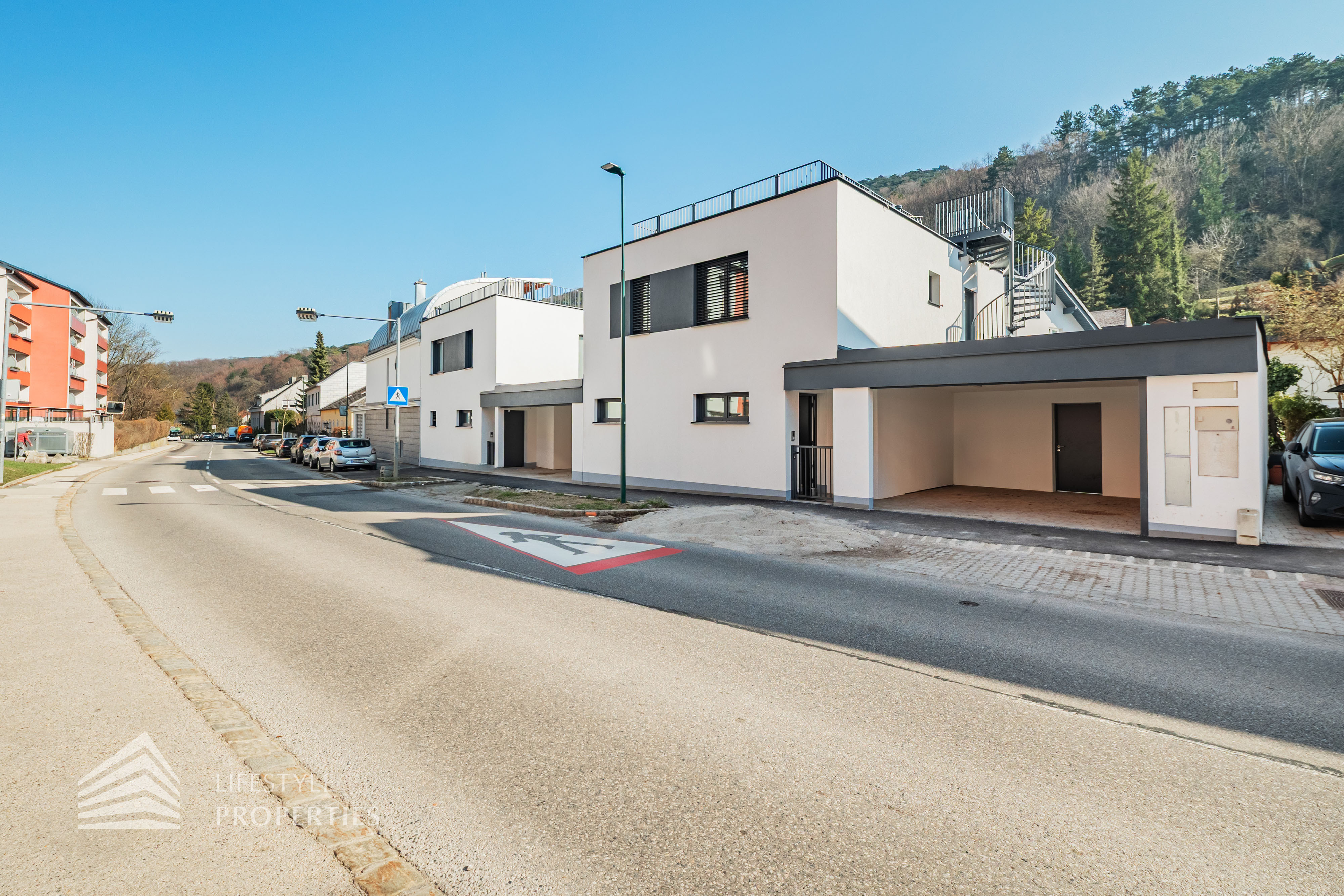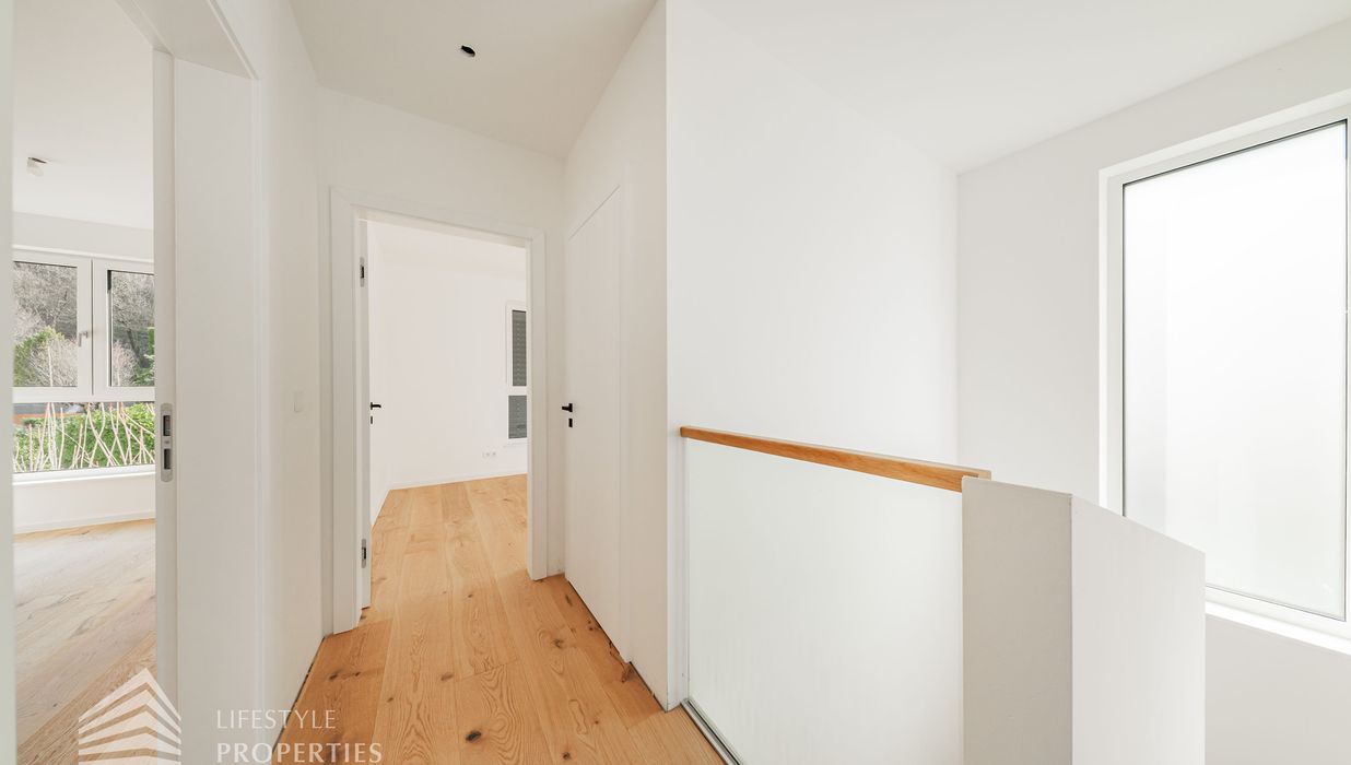 Erleben Sie exklusives Wohnen auf höchstem Niveau: Dieses stilvolle, moderne Wohnhaus verbindet zeitlose Architektur, hochwertige Materialien und innovative Haustechnik zu einem einzigartigen Wohnambiente. Großzügige Fensterflächen durchfluten die Räume mit Tageslicht, während die private Dachterrasse, die sonnige Terrasse im Erdgeschoss und der direkt zugängliche Garten ungestörte Ausblicke ins Grüne bieten und zu entspannten Stunden im Freien einladen. Ein Carport für zwei Fahrzeuge, Smart-Home-Steuerung sowie ein App-gesteuertes Alarmsystem sorgen für höchsten Komfort und Sicherheit. Natur, Stil und modernste Technik treffen hier harmonisch aufeinander und schaffen ein exklusives Zuhause, nur wenige Kilometer von Wien entfernt, mit rascher Anbindung an die Innenstadt und die schönsten Naherholungsgebiete des Wienerwaldes.