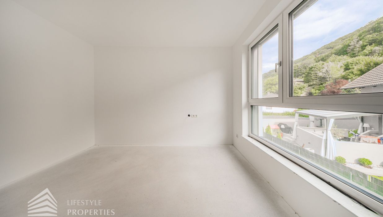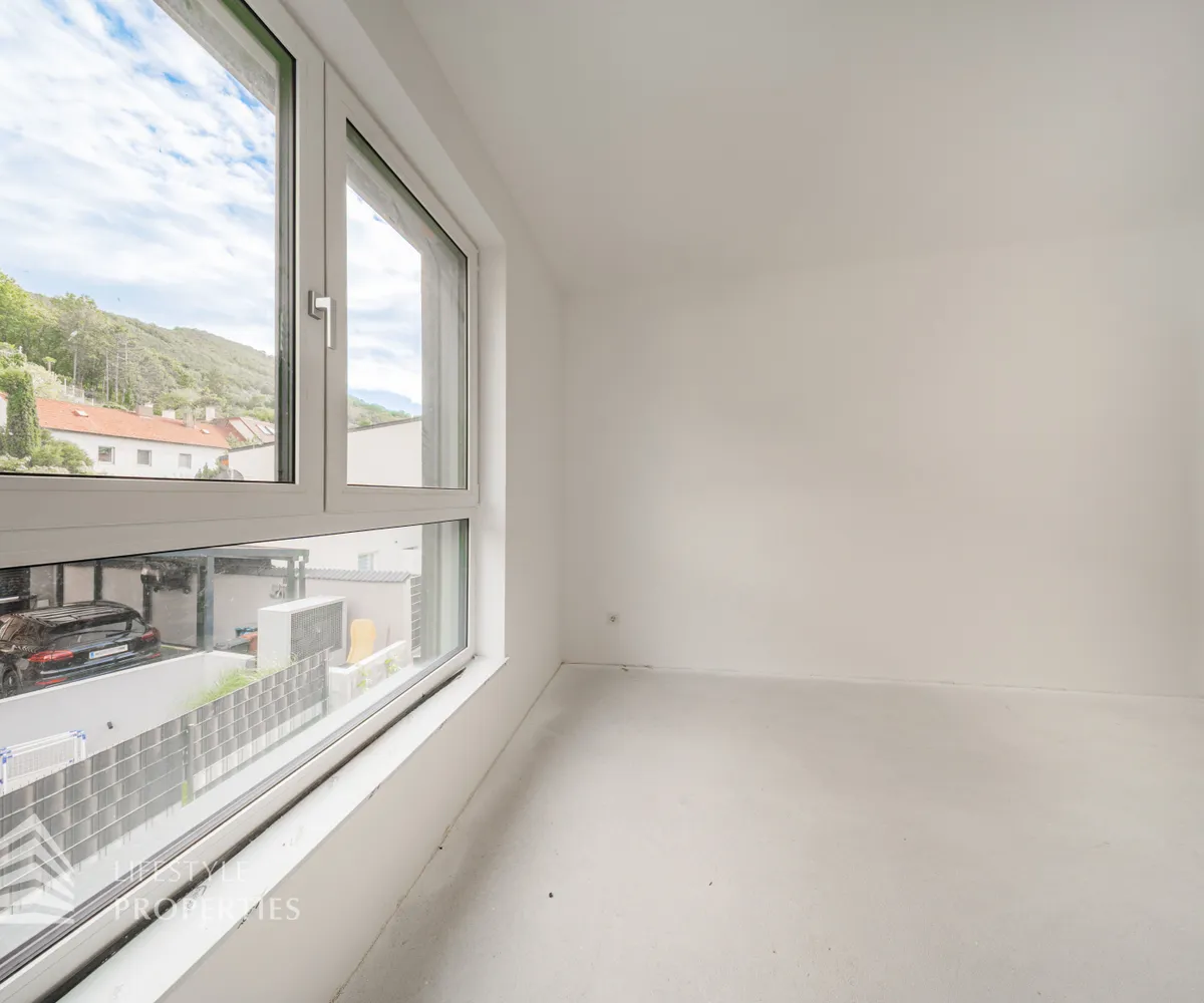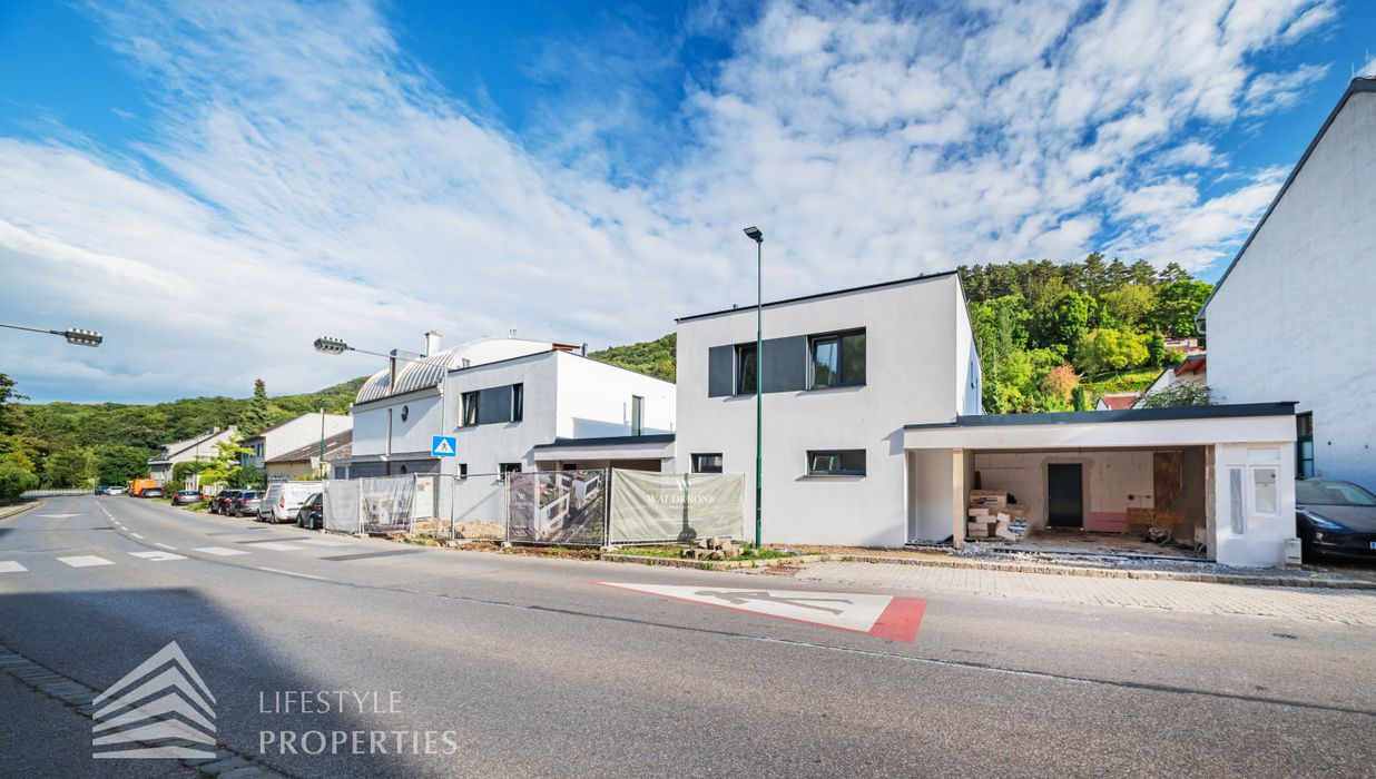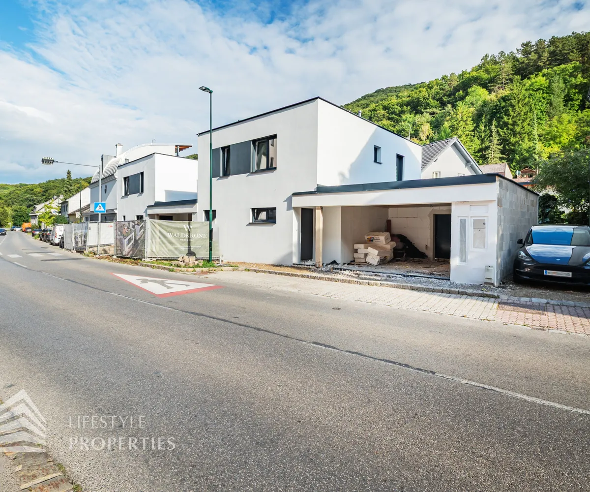 Dieses stilvolle, moderne Wohnhaus verbindet zeitlose Architektur, hochwertige Materialien und innovative Haustechnik zu einem einzigartigen Wohnambiente. Großzügige Fensterflächen durchfluten die Räume mit Tageslicht, während die private Dachterrasse, die sonnige Terrasse im Erdgeschoss und der direkt zugängliche Garten ungestörte Ausblicke ins Grüne bieten und zu entspannten Stunden im Freien einladen. Ein Carport für zwei Fahrzeuge, optional kann auf Wunsch eine geschlossene Garage errichtet werden, Smart-Home-Steuerung sowie ein App-gesteuertes Alarmsystem sorgen für höchsten Komfort und Sicherheit. Natur, Stil und modernste Technik treffen hier harmonisch aufeinander und schaffen ein exklusives Zuhause, nur wenige Kilometer von Wien entfernt, mit rascher Anbindung an die Innenstadt und die schönsten Naherholungsgebiete des Wienerwaldes.