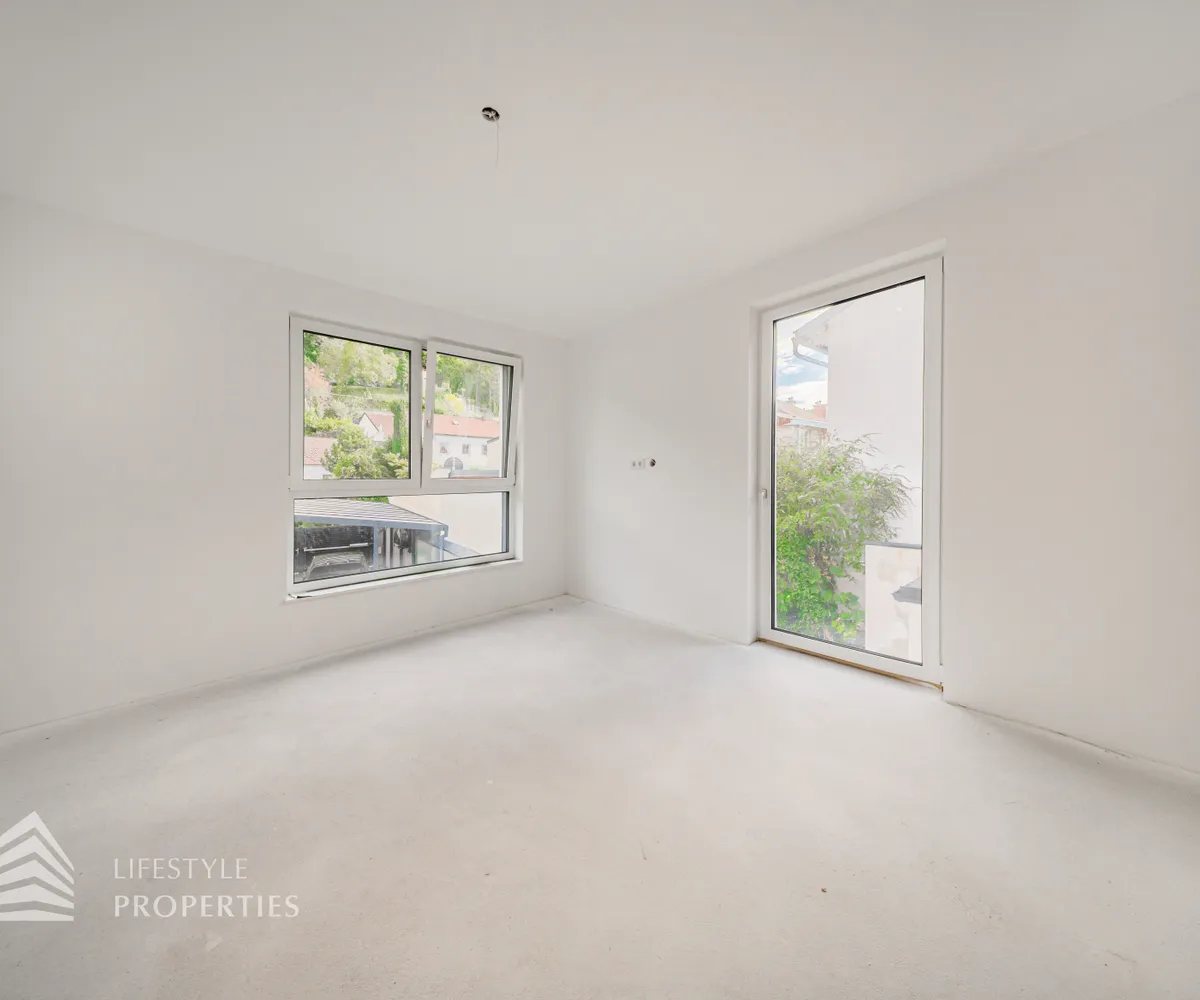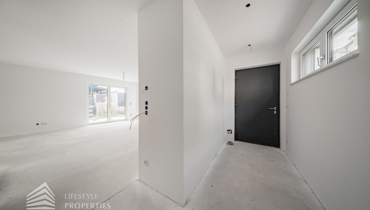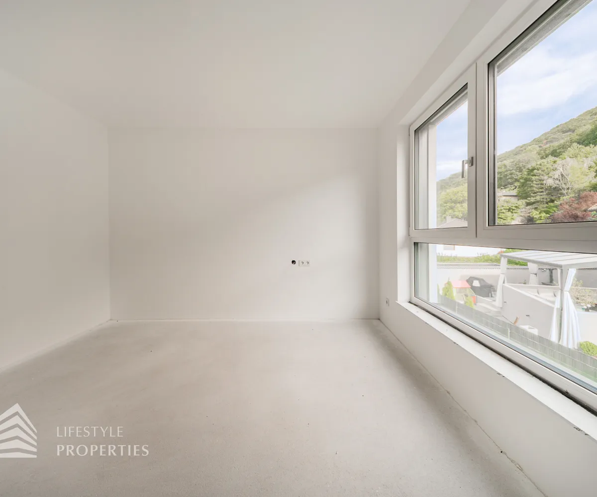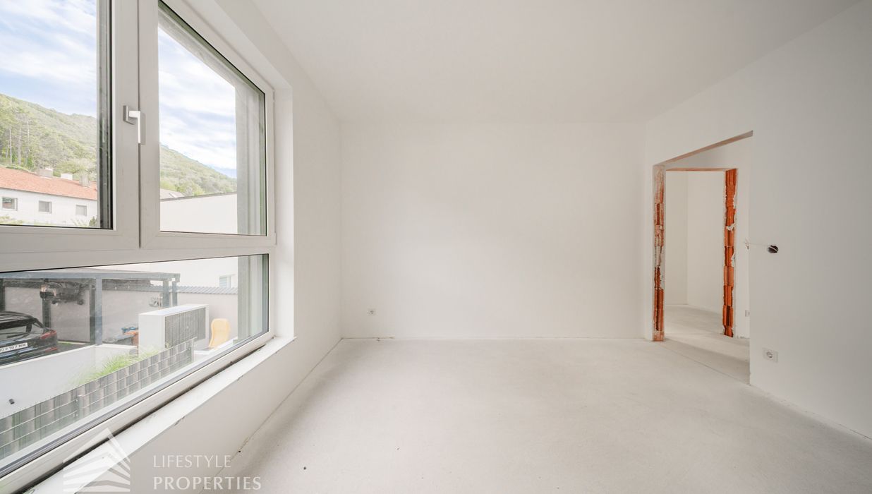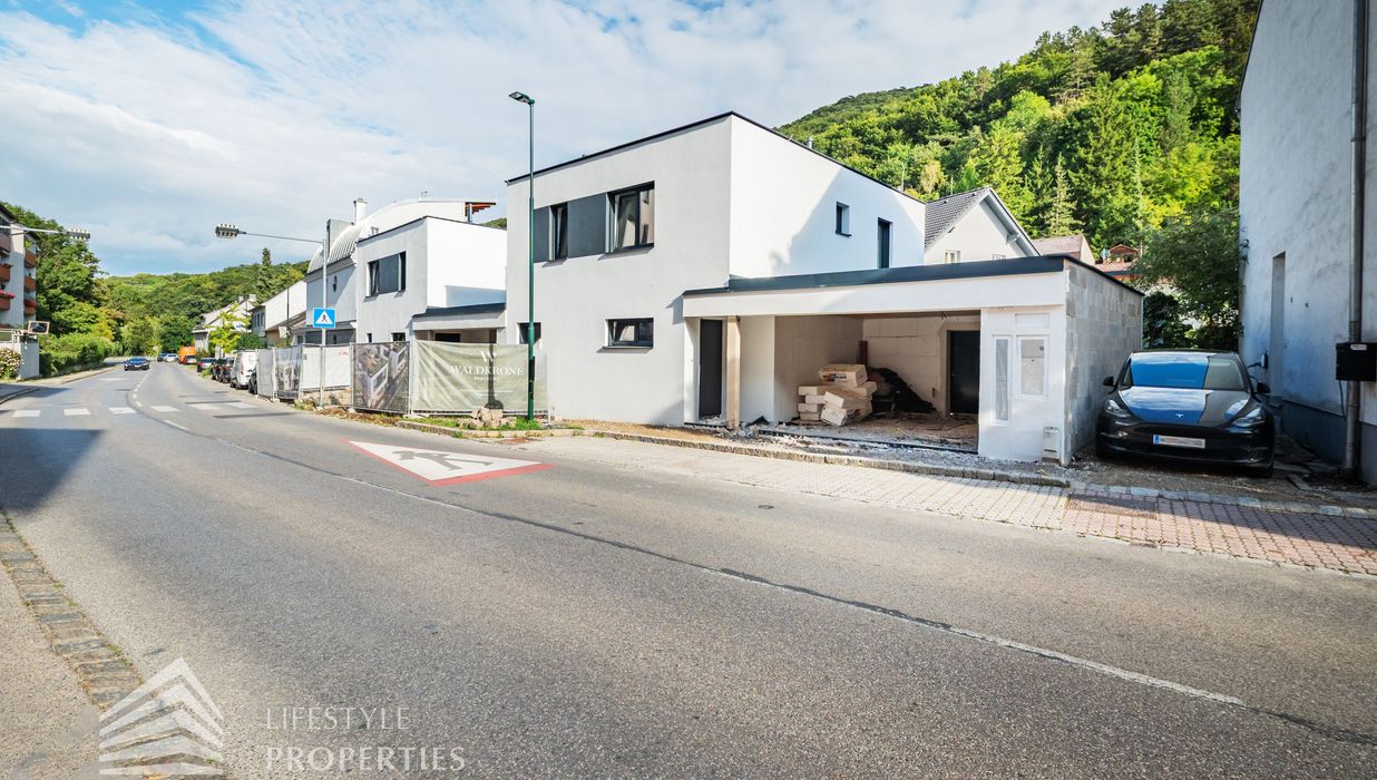Dieses stilvolle, moderne Wohnhaus verbindet zeitlose Architektur, hochwertige Materialien und innovative Haustechnik zu einem einzigartigen Wohnambiente. Großzügige Fensterflächen durchfluten die Räume mit Tageslicht, während die private Dachterrasse, die sonnige Terrasse im Erdgeschoss und der direkt zugängliche Garten ungestörte Ausblicke ins Grüne bieten und zu entspannten Stunden im Freien einladen. Ein Carport für zwei Fahrzeuge, optional kann auf Wunsch eine geschlossene Garage errichtet werden, Smart-Home-Steuerung sowie ein App-gesteuertes Alarmsystem sorgen für höchsten Komfort und Sicherheit. Natur, Stil und modernste Technik treffen hier harmonisch aufeinander und schaffen ein exklusives Zuhause, nur wenige Kilometer von Wien entfernt, mit rascher Anbindung an die Innenstadt und die schönsten Naherholungsgebiete des Wienerwaldes.