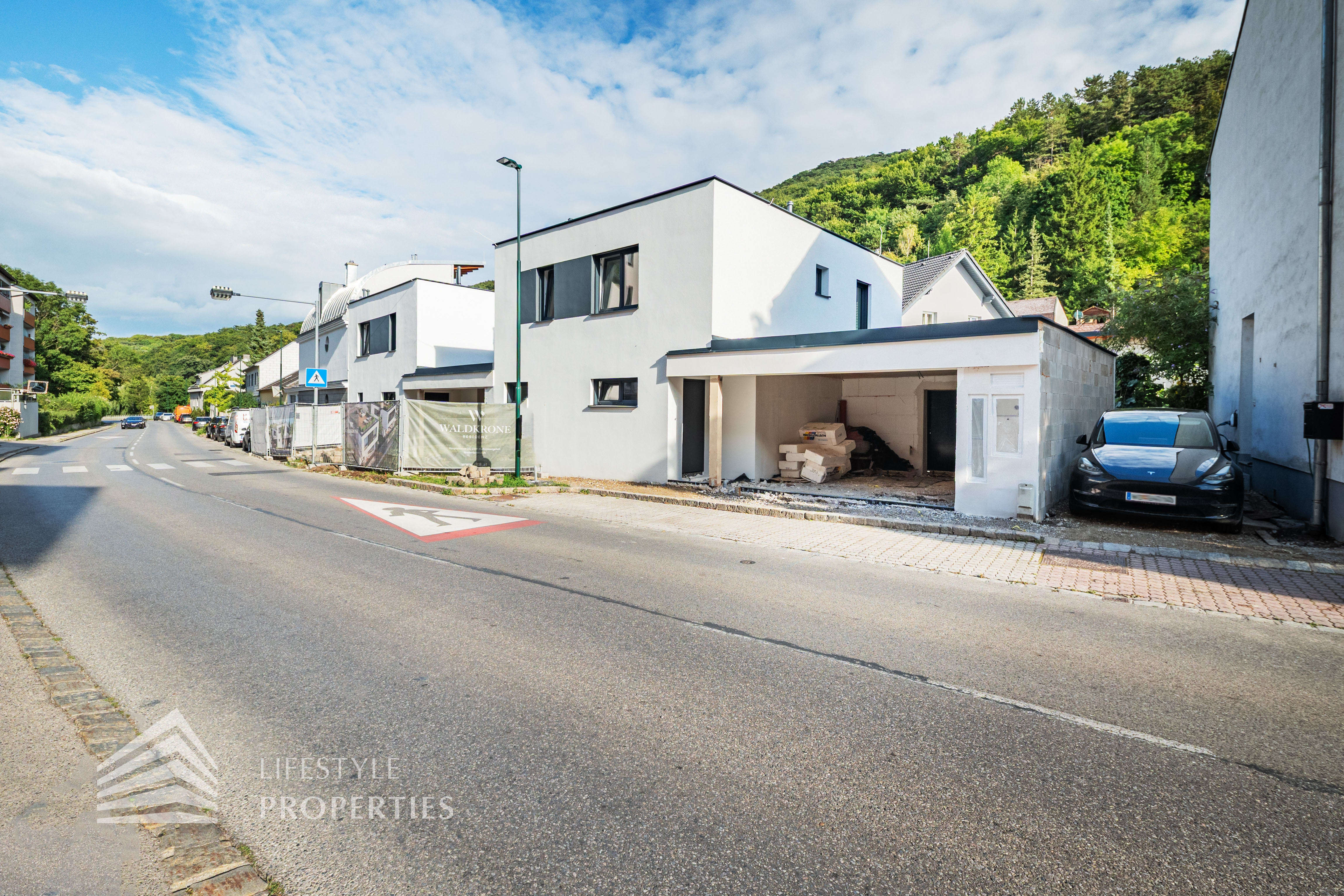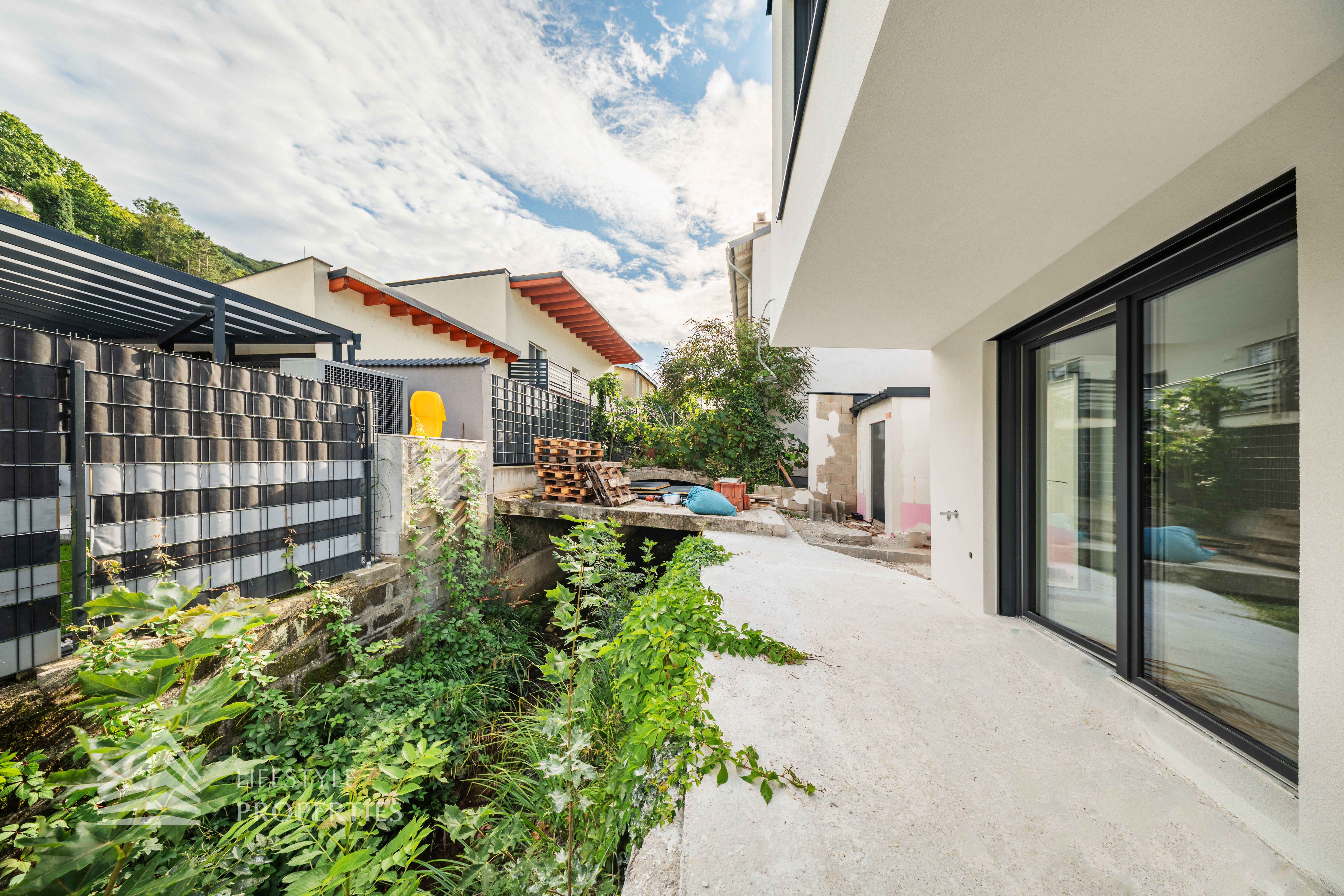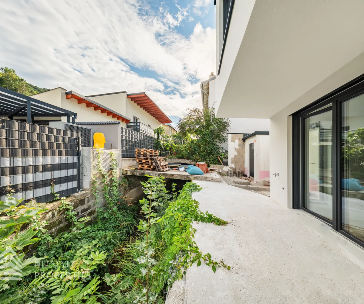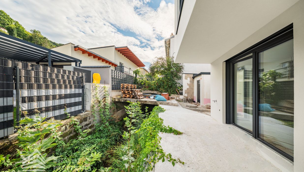 Dieses stilvolle, moderne Wohnhaus verbindet zeitlose Architektur, hochwertige Materialien und innovative Haustechnik zu einem einzigartigen Wohnambiente. Großzügige Fensterflächen durchfluten die Räume mit Tageslicht, während die private Dachterrasse, die sonnige Terrasse im Erdgeschoss und der direkt zugängliche Garten ungestörte Ausblicke ins Grüne bieten und zu entspannten Stunden im Freien einladen. Ein Carport für zwei Fahrzeuge, optional kann auf Wunsch eine geschlossene Garage errichtet werden, Smart-Home-Steuerung sowie ein App-gesteuertes Alarmsystem sorgen für höchsten Komfort und Sicherheit. Natur, Stil und modernste Technik treffen hier harmonisch aufeinander und schaffen ein exklusives Zuhause, nur wenige Kilometer von Wien entfernt, mit rascher Anbindung an die Innenstadt und die schönsten Naherholungsgebiete des Wienerwaldes.