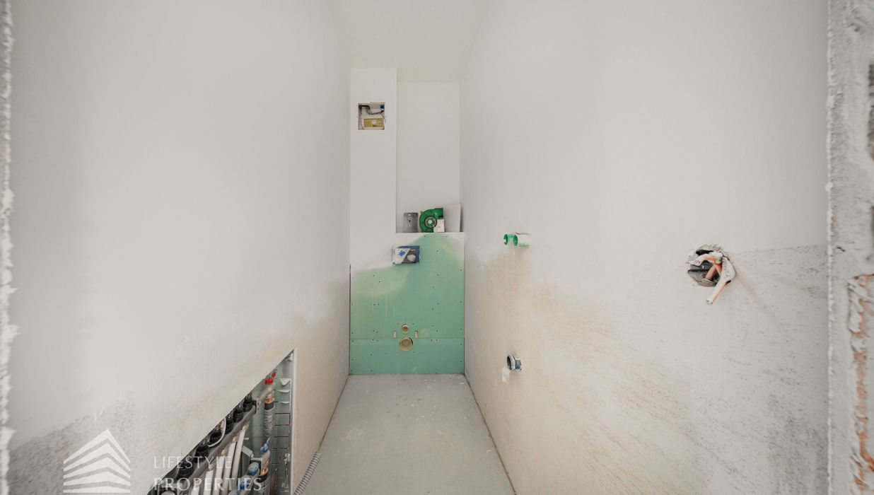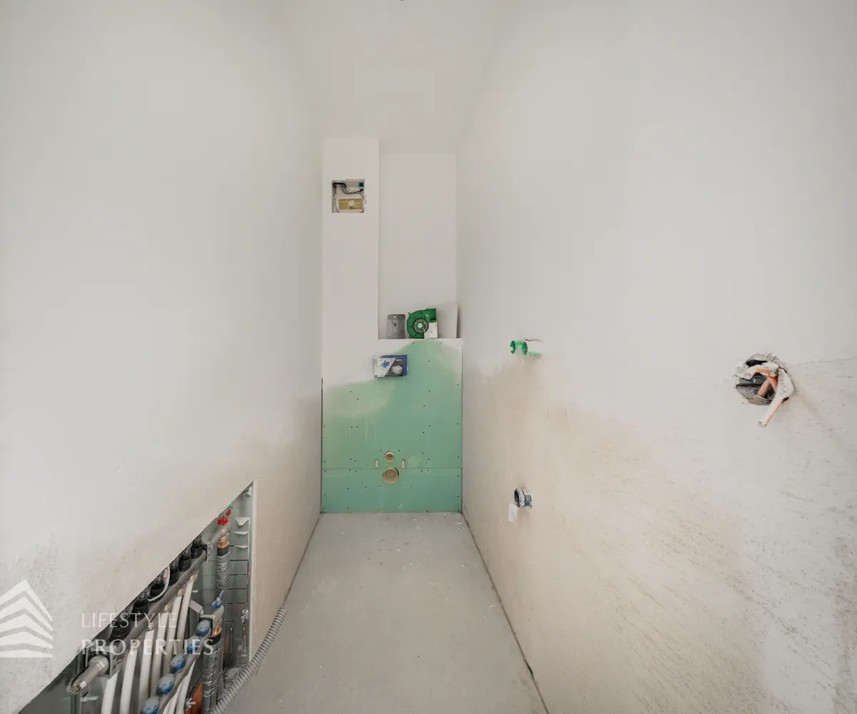 Die gesamte Haustechnik und Ausstattung wurde nach modernsten Standards umgesetzt: Fußbodenheizung mit Einzelraumregelung, die Wärmeversorgung erfolgt über eine dezentrale Luftwärmepumpe mit Pufferspeicher für jede Wohneinheit, Smart-Home-System (GIRA KNX oder gleichwertig) zur Steuerung von Licht, Raffstores und Temperatur, App-gesteuertes Alarmsystem, Videogegensprechanlage mit Smartphone-Anbindung, elektronisches Türöffnungssystem (Fingerprint, Zahlencode oder Schlüssel), hochwertiges Marken-Eichenparkett (Weitzer, Langdiele), italienisches Feinsteinzeug in den Bädern, Sanitärobjekte von Laufen Pro S, Armaturen von Hansgrohe, bodengleiche Dusche mit Echtglasabtrennung, elektrische Raffstores an allen Fenstern, Vorbereitung für Split-Klimaanlage (Außengeräte im Gartenbereich, Innengeräte im Wohnzimmer oder Stiegenaufgang (Installation nach Wunsch und gegen Aufpreis), Vorbereitung für E-Ladestation.