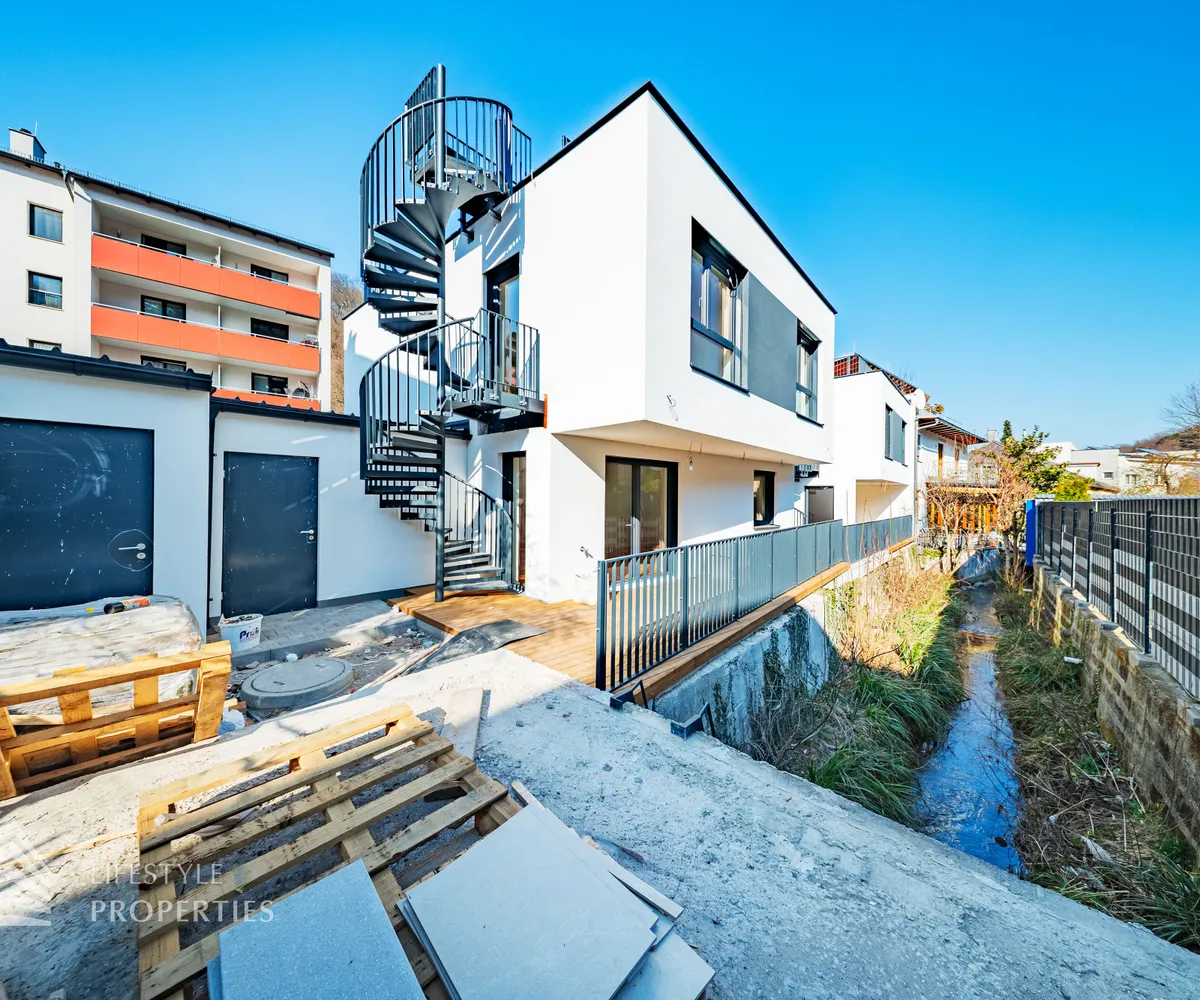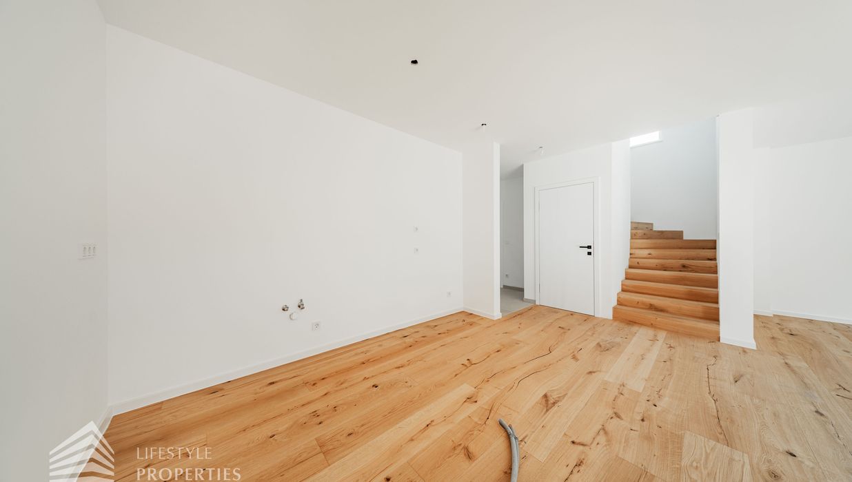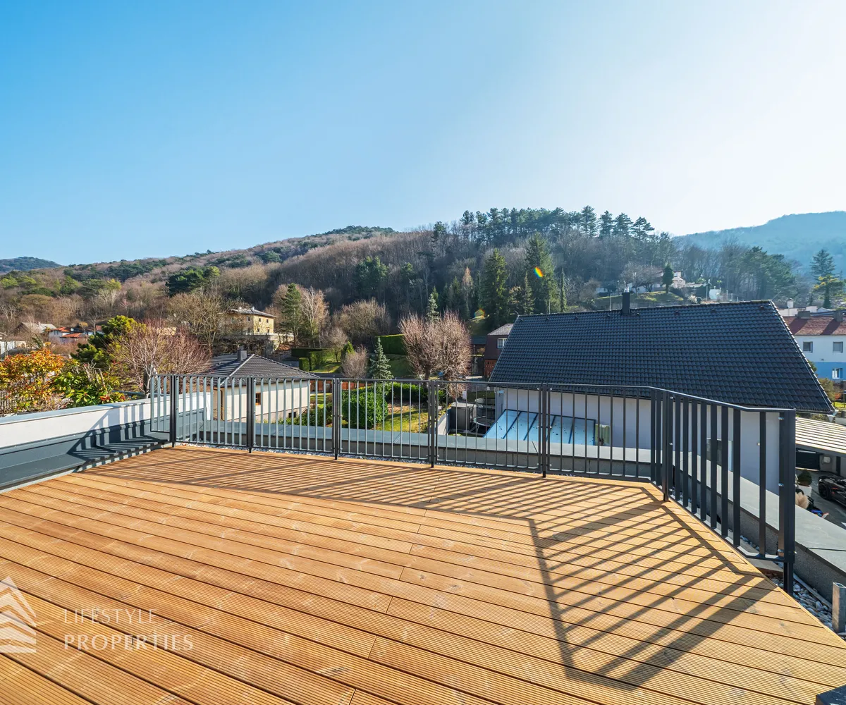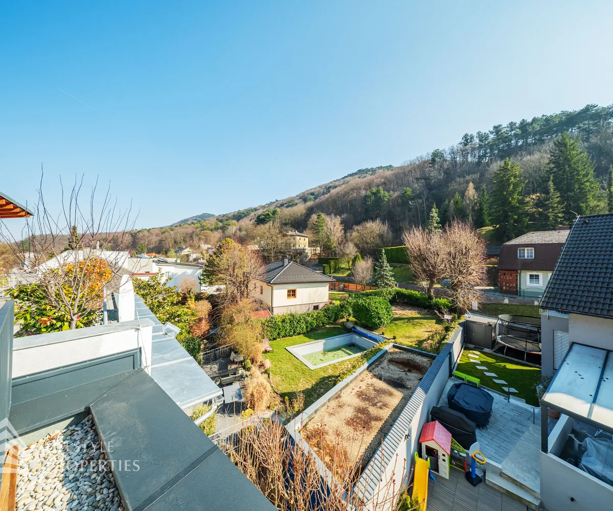 Dieses stilvolle, moderne Wohnhaus verbindet zeitlose Architektur, hochwertige Materialien und innovative Haustechnik zu einem einzigartigen Wohnambiente. Großzügige Fensterflächen durchfluten die Räume mit Tageslicht, während die private Dachterrasse, die sonnige Terrasse im Erdgeschoss und der direkt zugängliche Garten ungestörte Ausblicke ins Grüne bieten und zu entspannten Stunden im Freien einladen. Ein Carport für zwei Fahrzeuge, optional kann auf Wunsch eine geschlossene Garage errichtet werden, Smart-Home-Steuerung sowie ein App-gesteuertes Alarmsystem sorgen für höchsten Komfort und Sicherheit. Natur, Stil und modernste Technik treffen hier harmonisch aufeinander und schaffen ein exklusives Zuhause, nur wenige Kilometer von Wien entfernt, mit rascher Anbindung an die Innenstadt und die schönsten Naherholungsgebiete des Wienerwaldes.