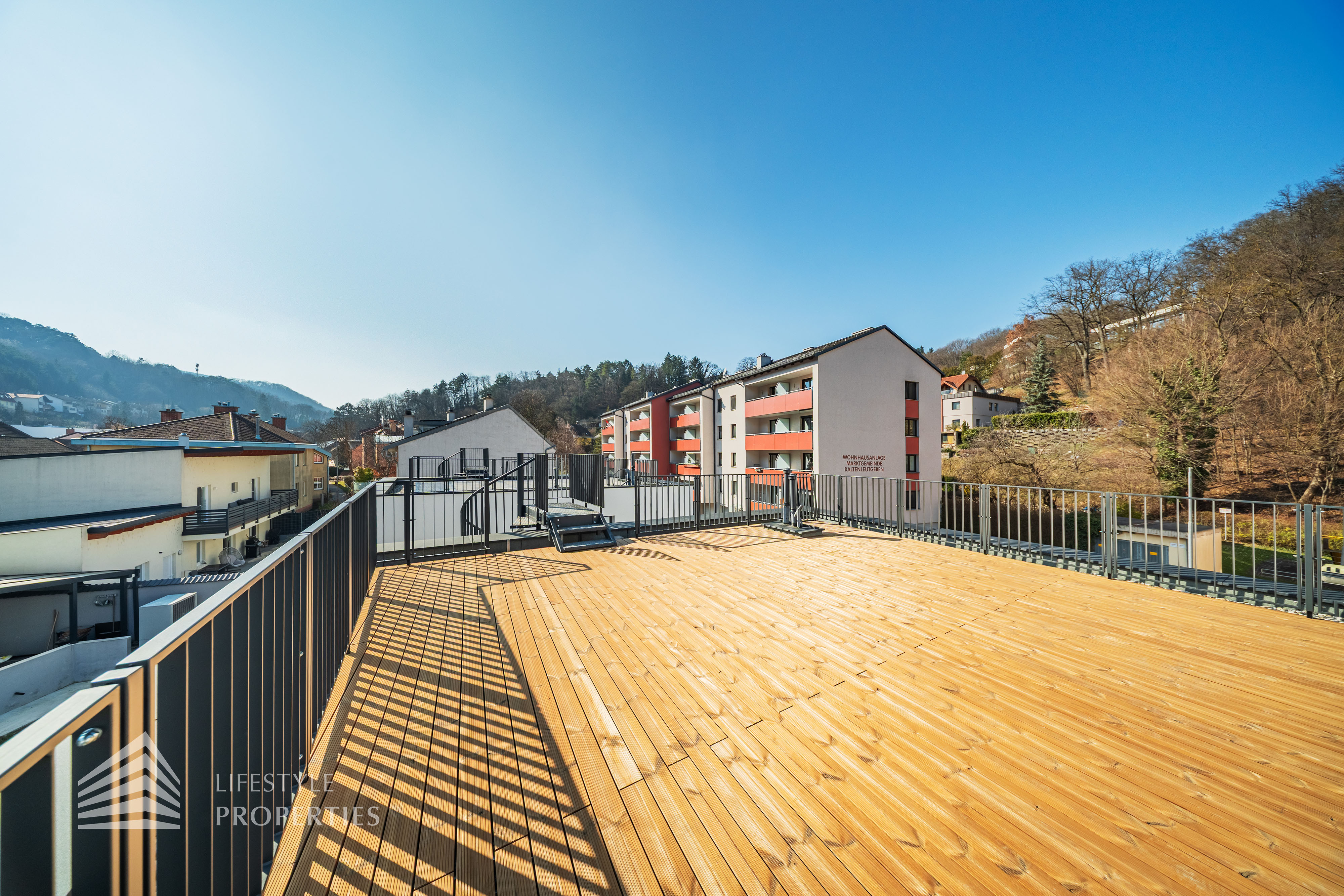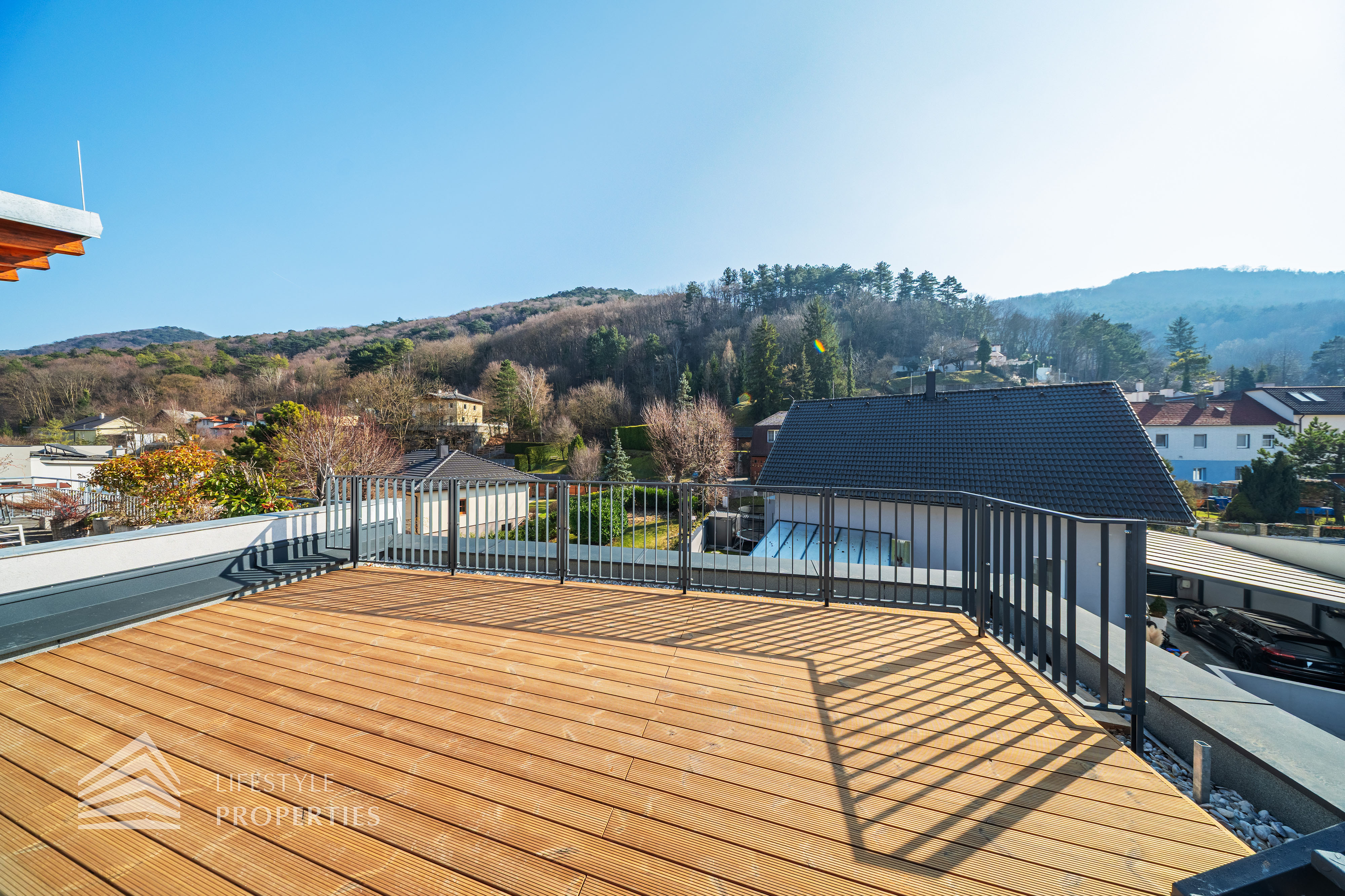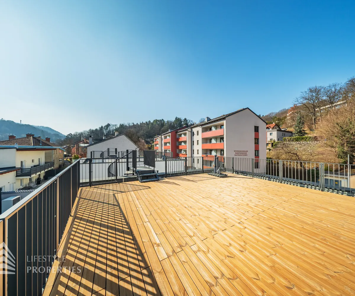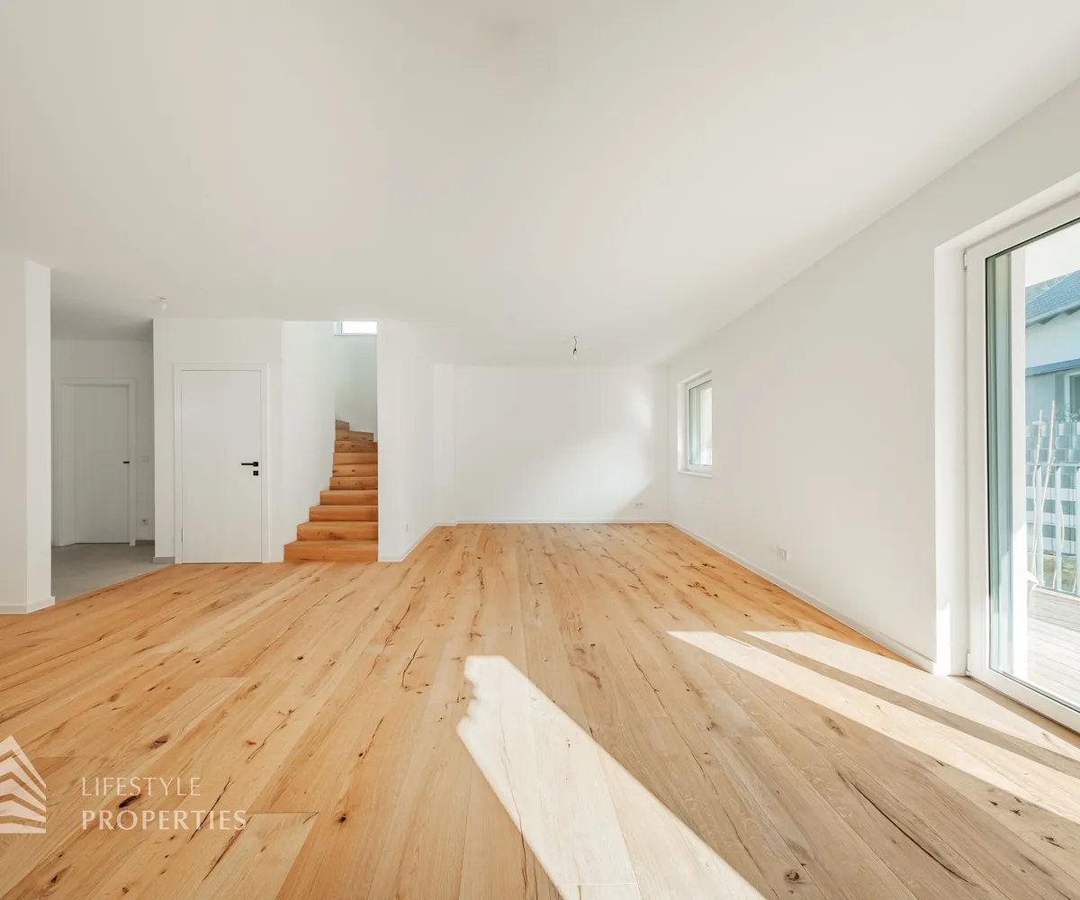 Dieses stilvolle, moderne Wohnhaus verbindet zeitlose Architektur, hochwertige Materialien und innovative Haustechnik zu einem einzigartigen Wohnambiente. Großzügige Fensterflächen durchfluten die Räume mit Tageslicht, während die private Dachterrasse, die sonnige Terrasse im Erdgeschoss und der direkt zugängliche Garten ungestörte Ausblicke ins Grüne bieten und zu entspannten Stunden im Freien einladen. Ein Carport für zwei Fahrzeuge, optional kann auf Wunsch eine geschlossene Garage errichtet werden, Smart-Home-Steuerung sowie ein App-gesteuertes Alarmsystem sorgen für höchsten Komfort und Sicherheit. Natur, Stil und modernste Technik treffen hier harmonisch aufeinander und schaffen ein exklusives Zuhause, nur wenige Kilometer von Wien entfernt, mit rascher Anbindung an die Innenstadt und die schönsten Naherholungsgebiete des Wienerwaldes.