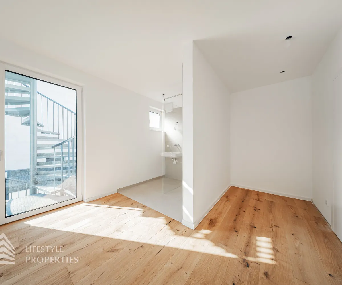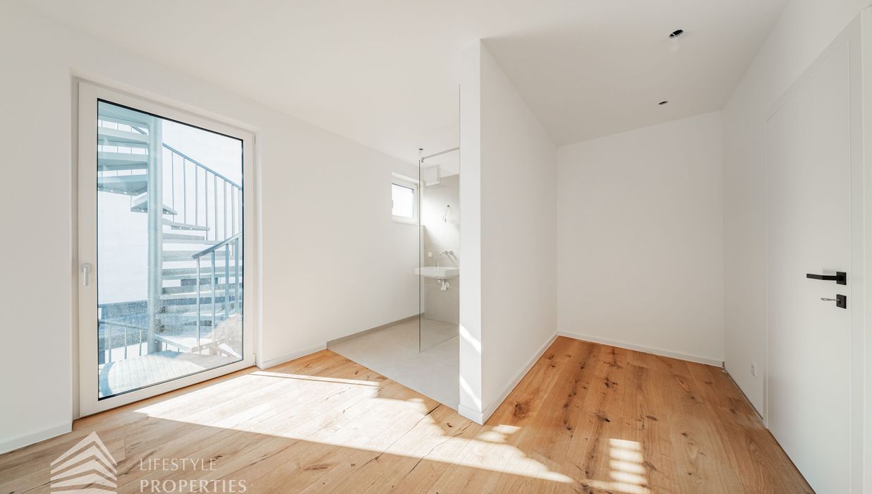 Die gesamte Haustechnik und Ausstattung wurde nach modernsten Standards umgesetzt: Fußbodenheizung mit Einzelraumregelung, die Wärmeversorgung erfolgt über eine dezentrale Luftwärmepumpe mit Pufferspeicher für jede Wohneinheit, Smart-Home-System (GIRA KNX oder gleichwertig) zur Steuerung von Licht, Raffstores und Temperatur, App-gesteuertes Alarmsystem, Videogegensprechanlage mit Smartphone-Anbindung, elektronisches Türöffnungssystem (Fingerprint, Zahlencode oder Schlüssel), hochwertiges Marken-Eichenparkett (Weitzer, Langdiele), italienisches Feinsteinzeug in den Bädern, Sanitärobjekte von Laufen Pro S, Armaturen von Hansgrohe, bodengleiche Dusche mit Echtglasabtrennung, elektrische Raffstores an allen Fenstern, Vorbereitung für Split-Klimaanlage (Außengeräte im Gartenbereich, Innengeräte im Wohnzimmer oder Stiegenaufgang (Installation nach Wunsch und gegen Aufpreis), Vorbereitung für E-Ladestation.