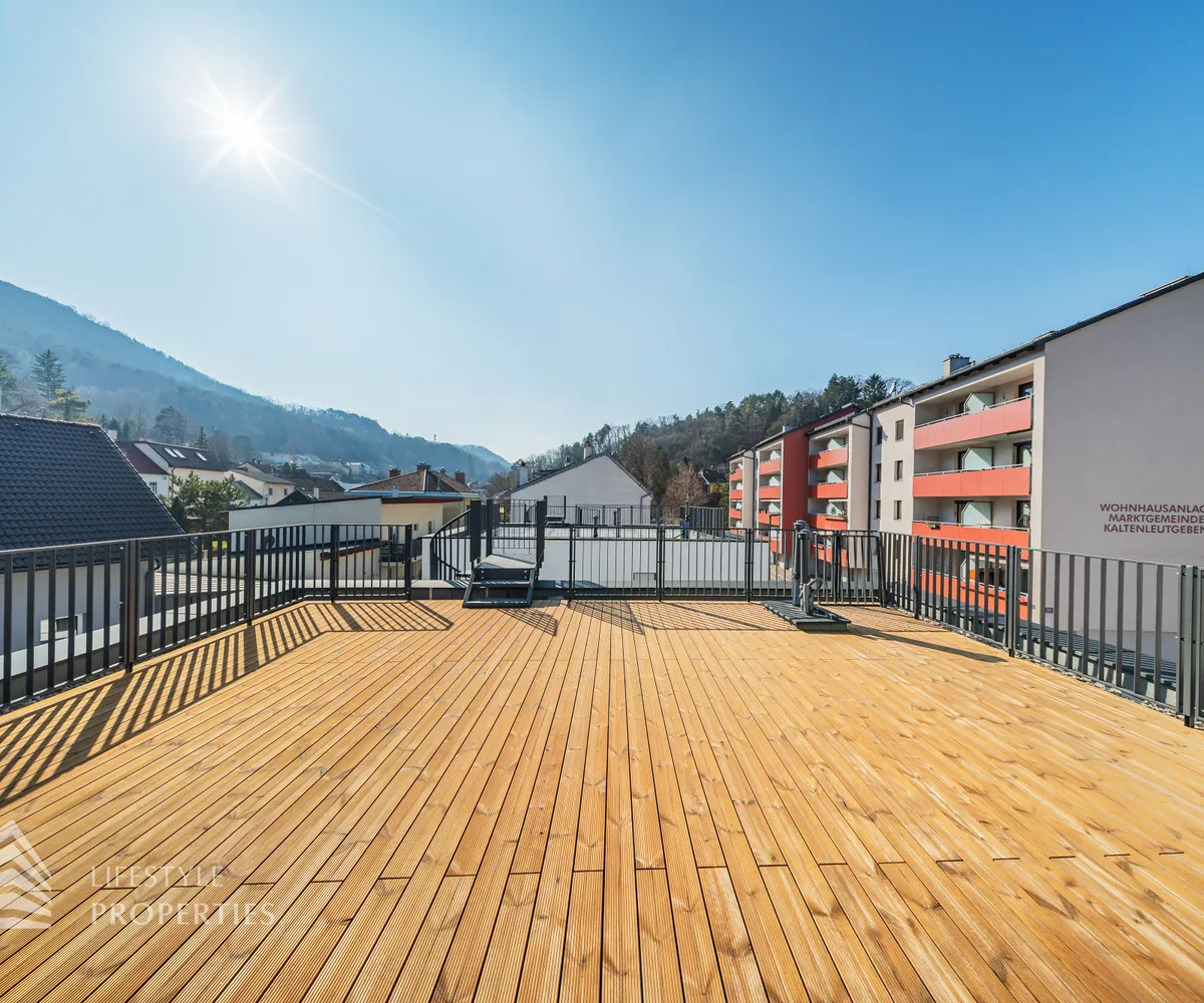 Beim Betreten des Hauses gelangen Sie zunächst in den einladenden Vorraum, der den perfekten Empfang für Bewohner und Gäste bietet. Direkt angrenzend öffnet sich der großzügige ca. 37 m² große Wohn- und Essbereich mit offener Küche, der durch seine offene Gestaltung sowohl für gesellige Abende als auch für gemütliche Familienmomente ideal ist. Ein separates WC sorgt für zusätzlichen Komfort, während der Abstellraum mit Waschmaschinenanschluss sowie das Küchenkammerl praktische Funktionalität bieten. Über die Terrasse im Erdgeschoss, die ca. 9 m² misst, gelangen Sie direkt in den Garten mit ca. 23 m², der zu entspannten Stunden im Freien, zum Spielen oder zu gemütlichen Abenden einlädt. Von hier aus gelangen Sie auf die private Dachterrasse mit ca. 40 m² , welche einen ungestörten Blick ins Grüne bietet – ein perfekter Ort für Entspannung, Sonnenbäder oder laue Sommerabende.