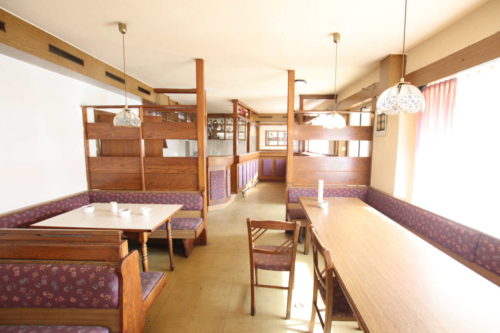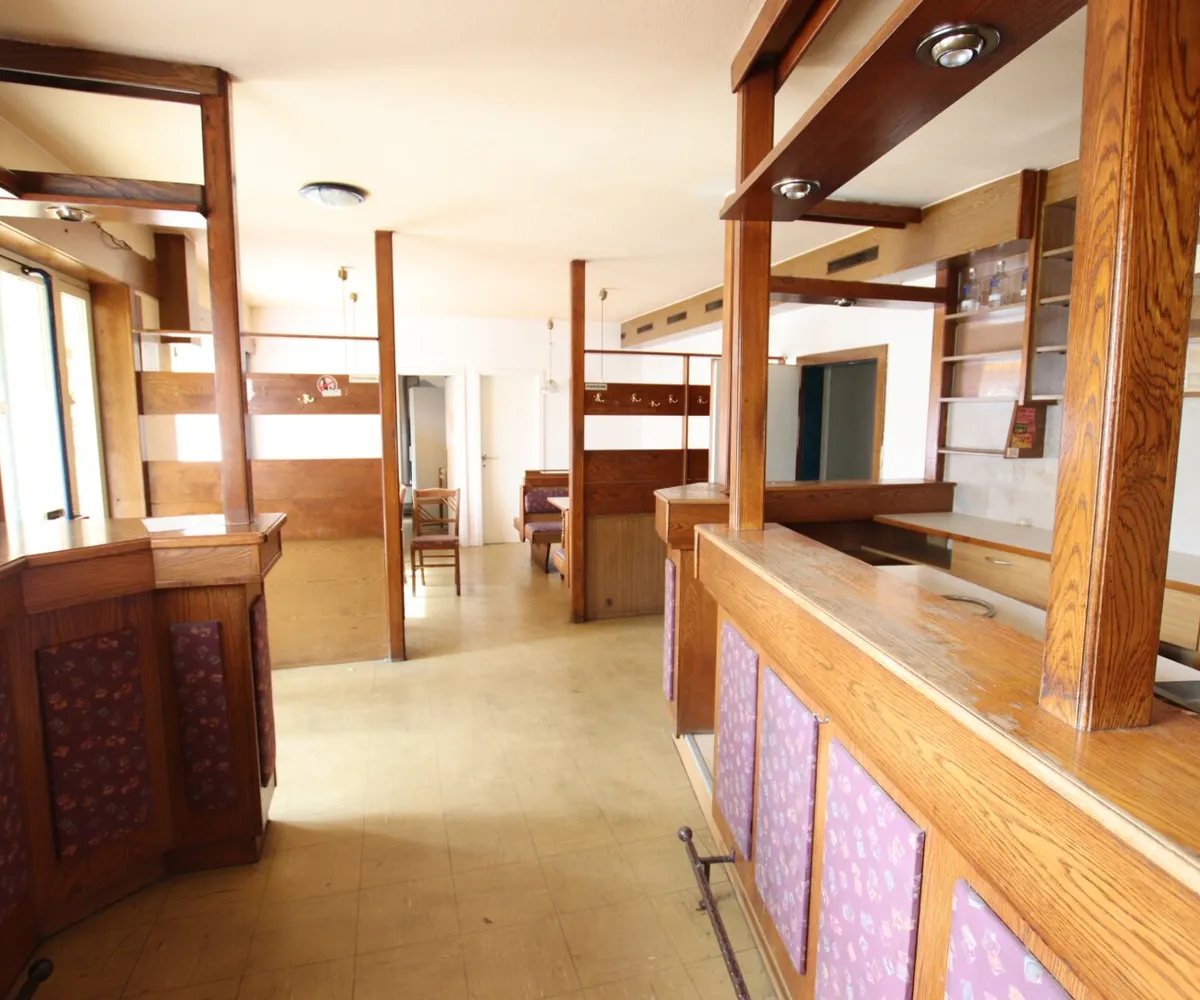 ERDGESCHOSS: ca. 105,00m² Nfl. bestehend aus Windfang (3,22m²), Gaststube mit Theke (40,16m²), 1 Raum (6,44m²), 1 Raum (5,39), Vorraum/Stiegenhaus bei Seiteneingang bei Terrasse (10,47m²), Vorraum (6,61m²), 1 Küche (15,94m²), 1 Bad mit Wanne und WC (9,56m²), 1 WC- Anlage (3,16m²), 1 WC-Anlage (4,56m²).