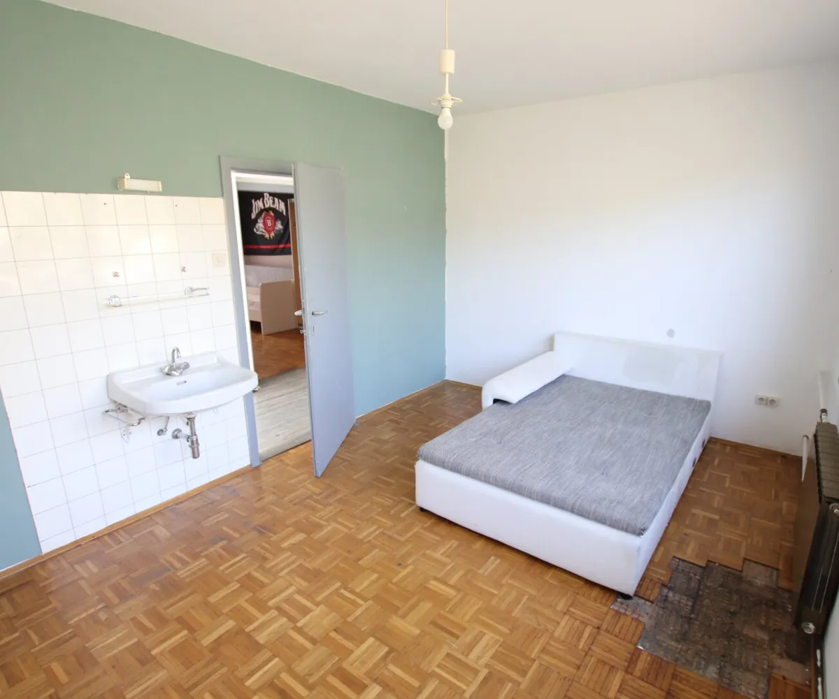 OBERGESCHOSS: ca. 96,00m² Nfl. bestehend aus Vorraum/Stiegenhaus (14,73m²), Zimmer 1 Süd (13,01m²), Zimmer 2 Süd (13,72m²), Zimmer 3 Süd (13,77m²), Zimmer 4 Süd (12,24m²), Zimmer 5 Nord (14,01m²), Zimmer 6 Nord (7,87m²) und 1 Bad mit Badewanne, Dusche und WC (6,93m²). Alle südlichen Zimmer haben einen Ausgang zum Balkon. Alle Angaben und Flächenangaben lt. Pläne und ohne Gewähr! Änderungen/Irrtümer vorbehalten!