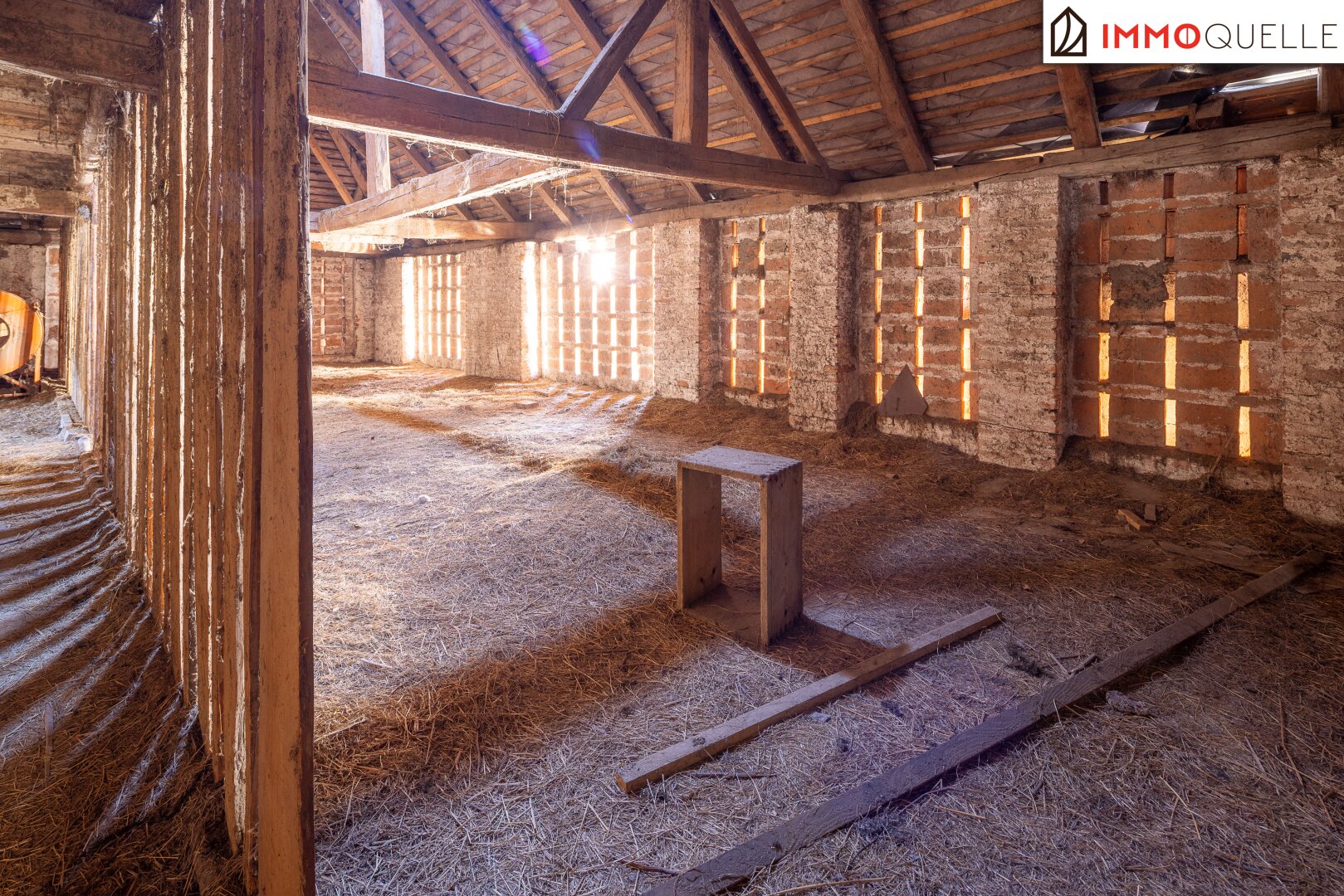 Die angeschlossenen Seitenflügel eröffnen mit rund 2.739 m² zusätzliche Perspektiven. Ehemalige Stallungen, Lagerflächen und Dachgeschosse bieten eine beeindruckende Substanz für neue Konzepte.