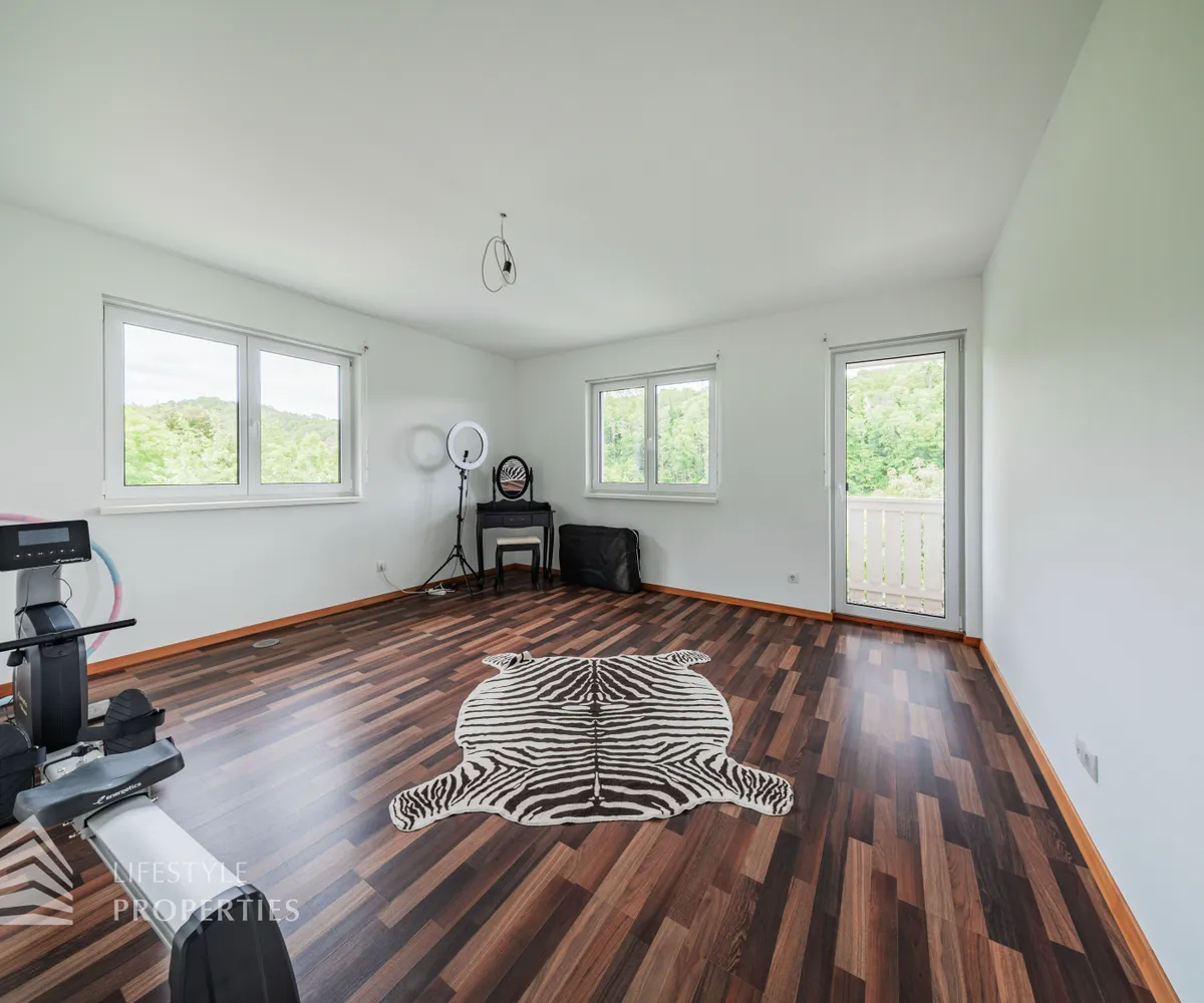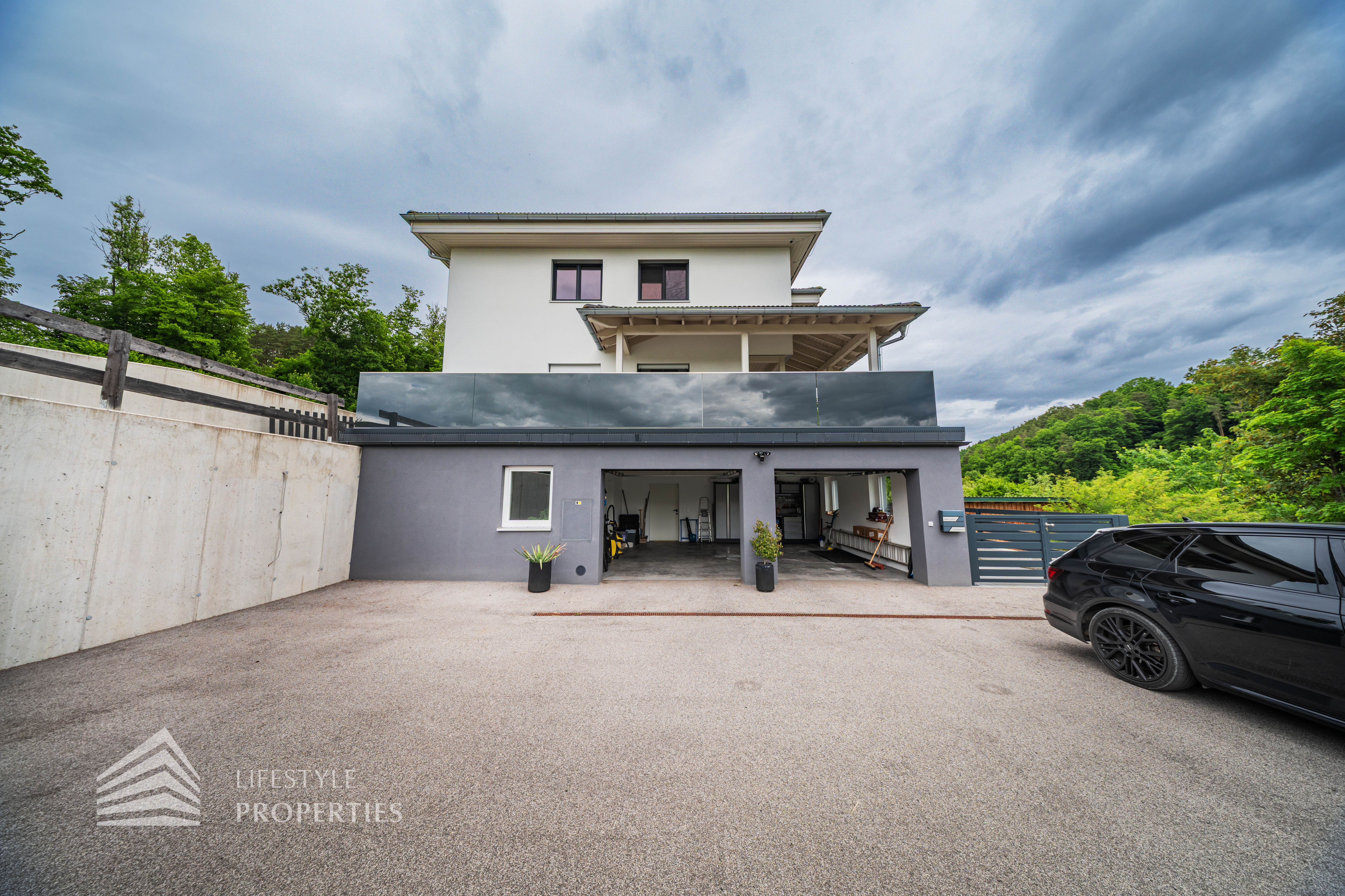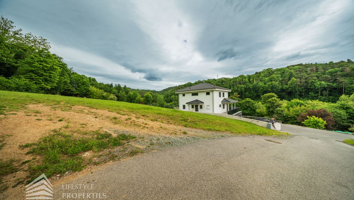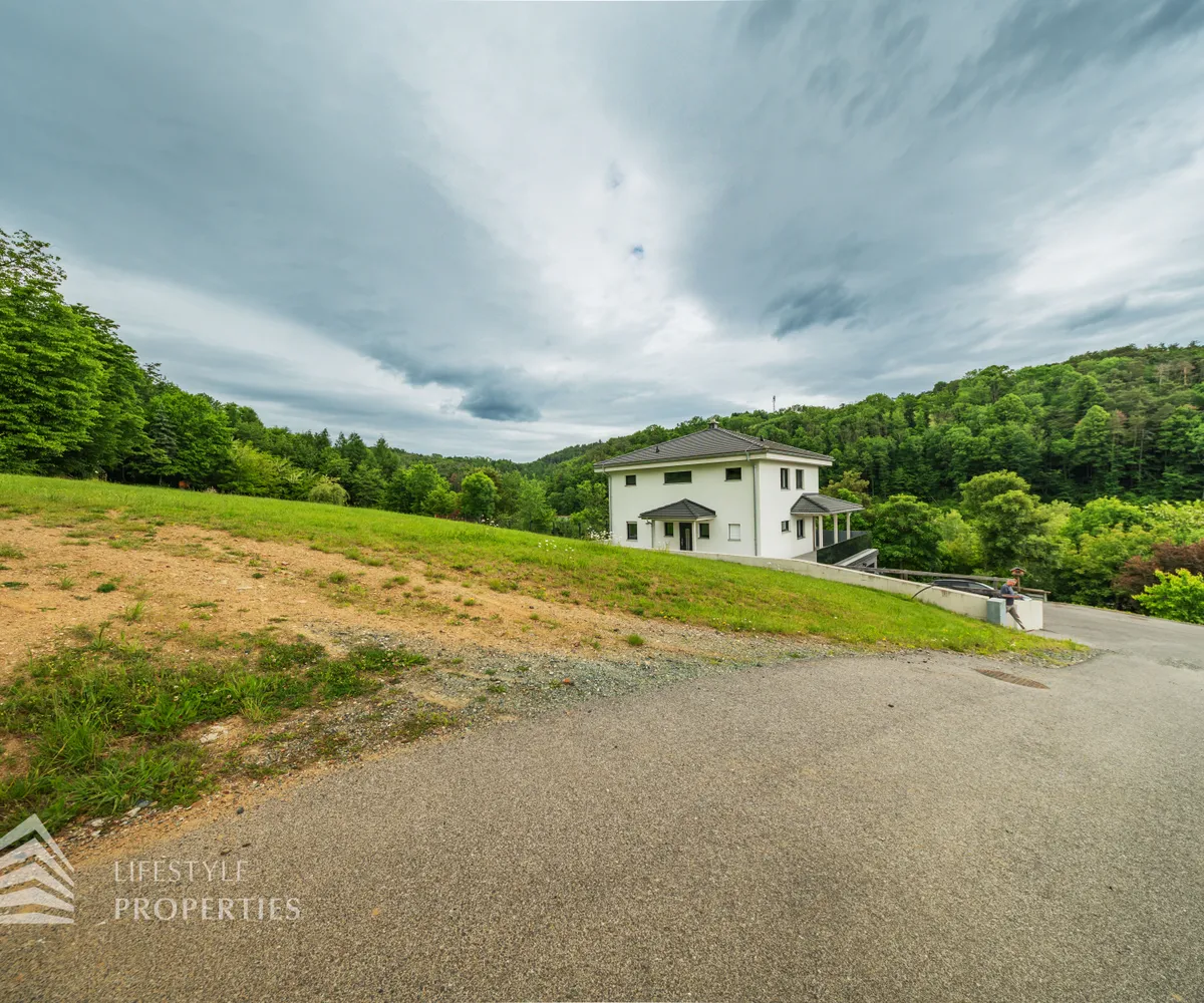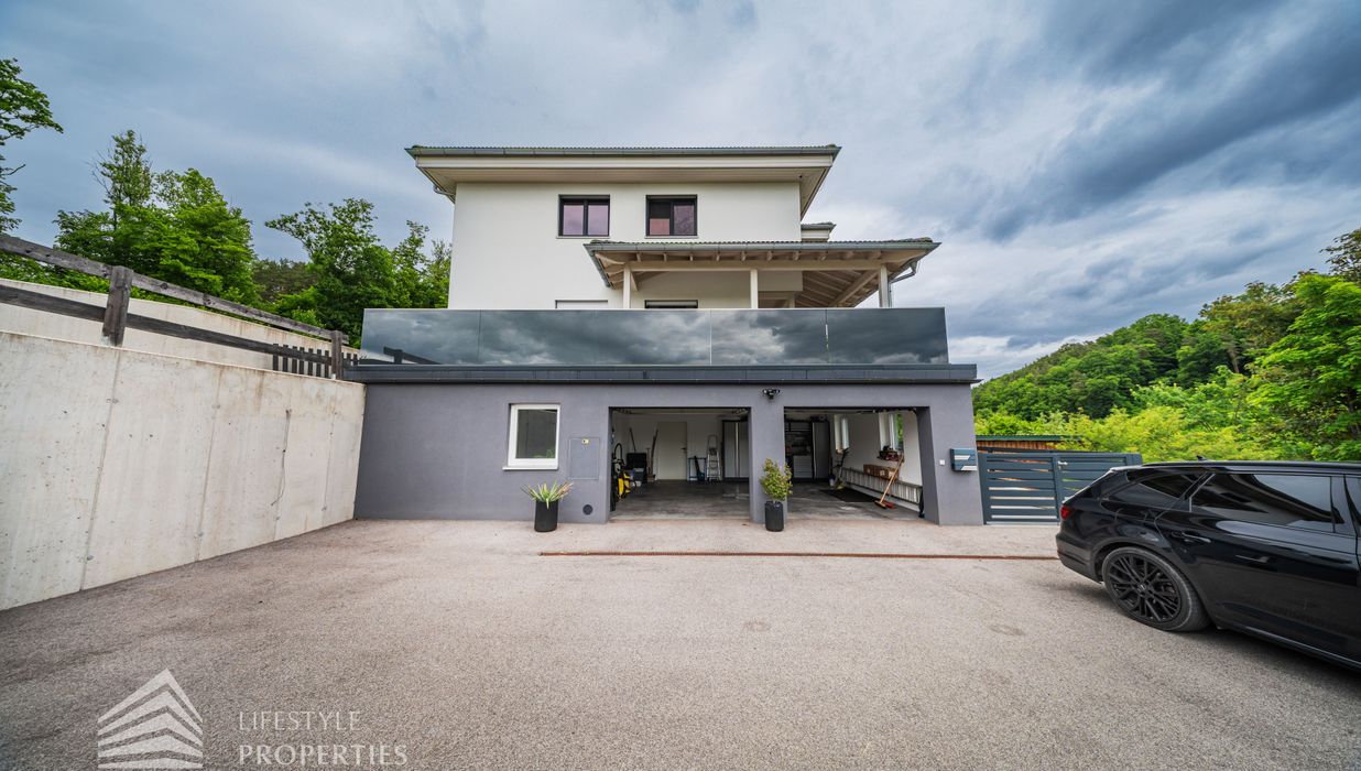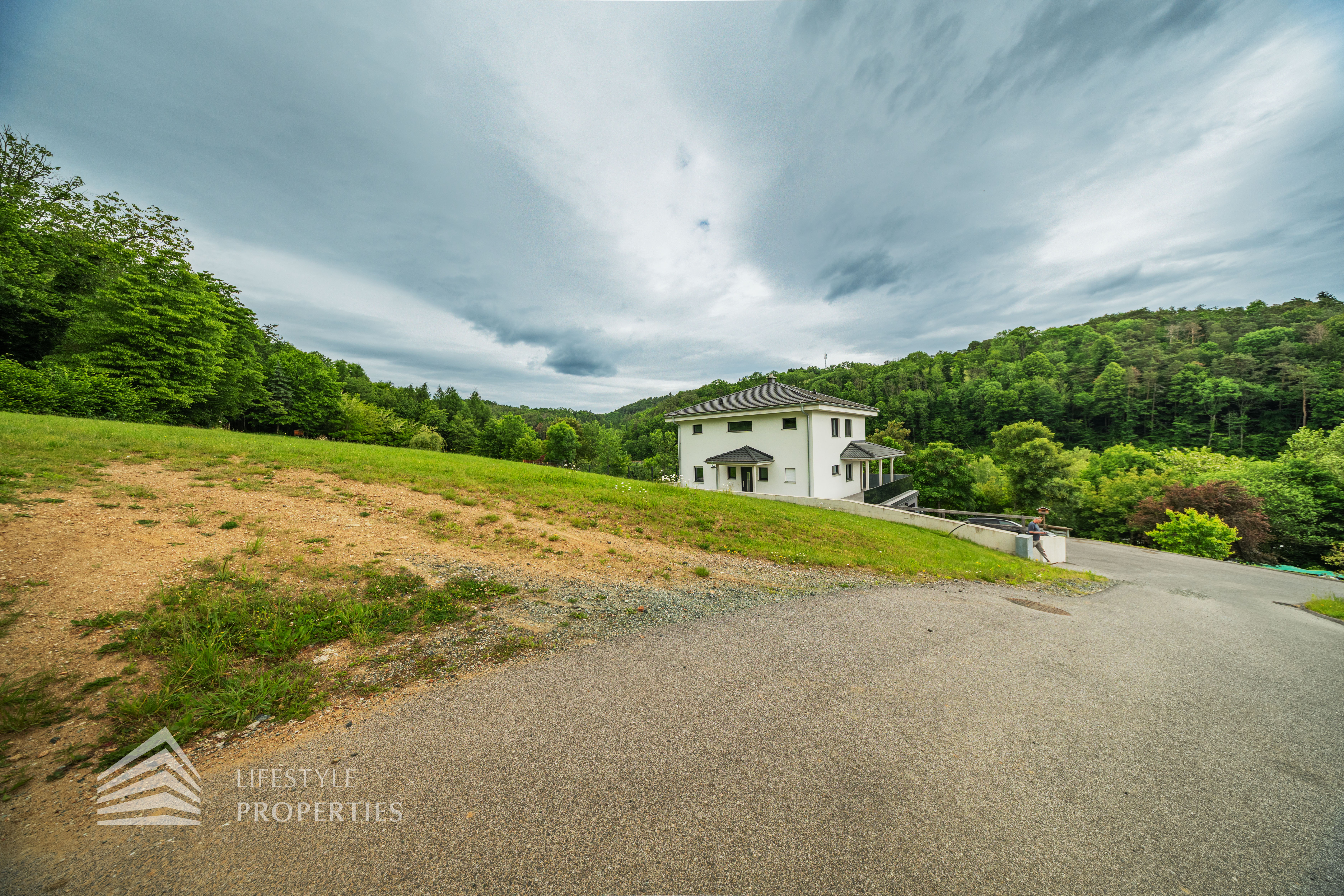 Wohnen, wo andere Urlaub machen! Dieses großzügige, moderne Einfamilienhaus in Holzriegelbauweise wurde 2014 errichtet und liegt in absoluter Ruhelage direkt am Waldrand – mit herrlichem Blick auf die Burgruine Kirchschlag und freiem Ausblick ohne direkte Nachbarn. Die ca. 260 m² grosse Nutzfläche ist auf drei Ebenen unterteilt (KG, EG, OG). Im ganzen Haus ist eine Zentrale Staubsaugeranlage und ein Glasfaseranschluss für ultraschnelles Internet verbaut. Das traumhafte Haus wurde als Niedrigenergiehaus in Holzriegelbauweise erbaut. Es überzeugt mit moderner Wohnraumlüftung zur Kühlung im Sommer. Beheizt wird mittels Erdwärme. Zum Objekt gehört ein verpflichtend zu übernehmendes Inventar im Wert von 40.000 EUR (nicht im Kaufpreis enthalten). Dieses umfasst unter anderem eine hochwertige Kücheneinrichtung, Badezimmermöbel im Obergeschoss und im Keller, einen Esstisch mit Stühlen, eine Garderobe mit Spiegelkasten, einen hochwertig verbauten Waschraum sowie eine praktische Werkzeugbank.