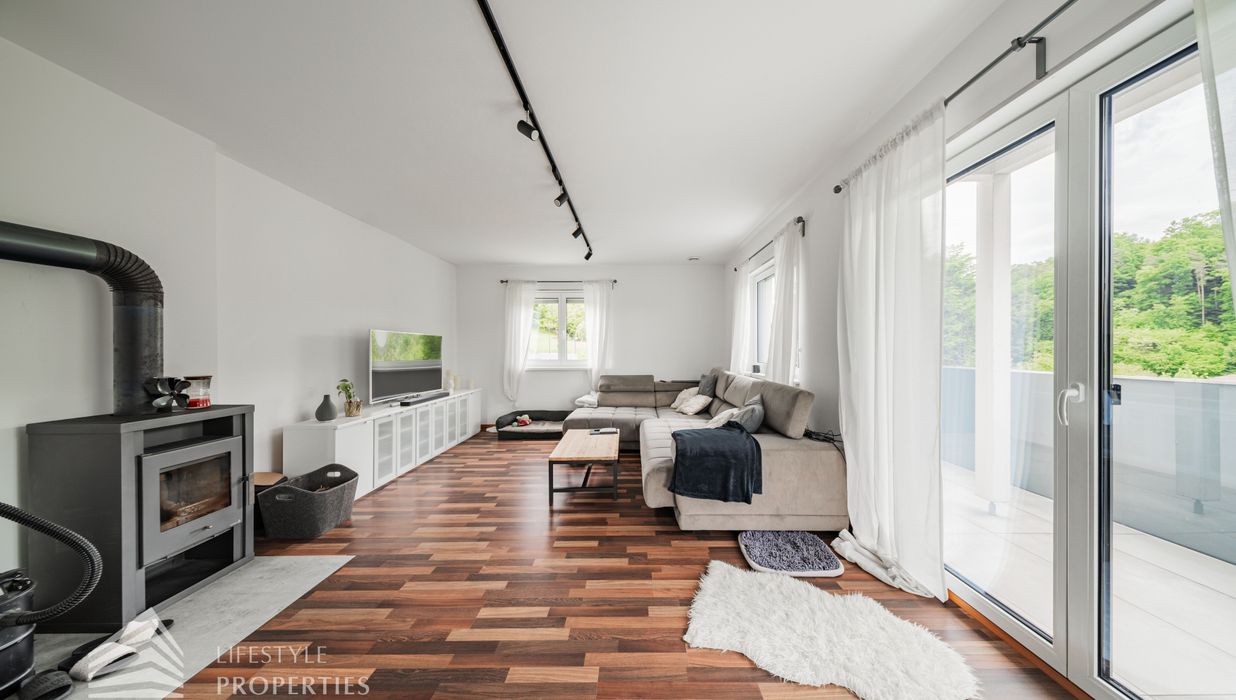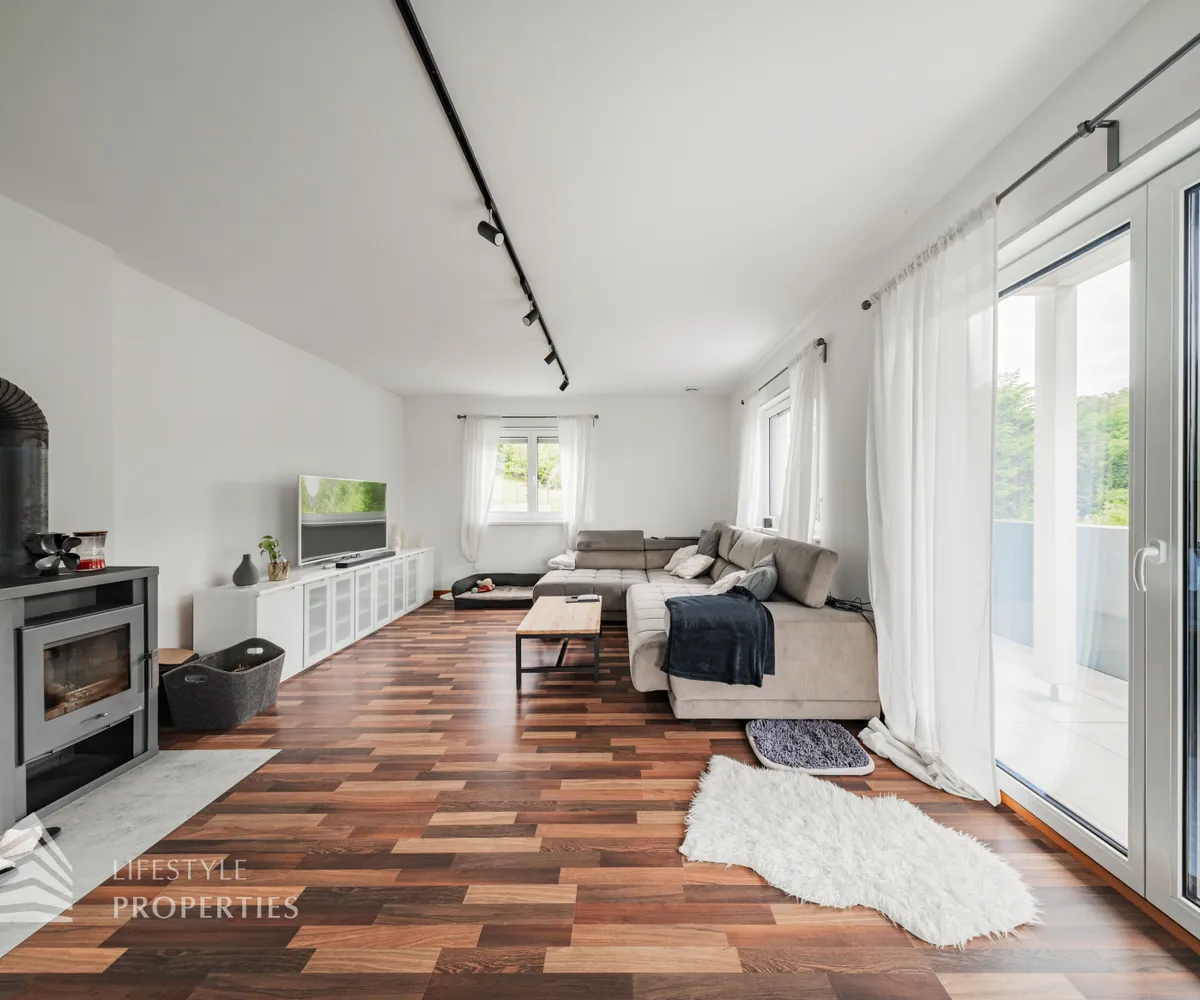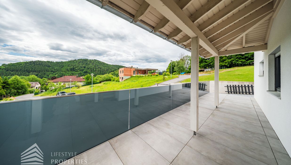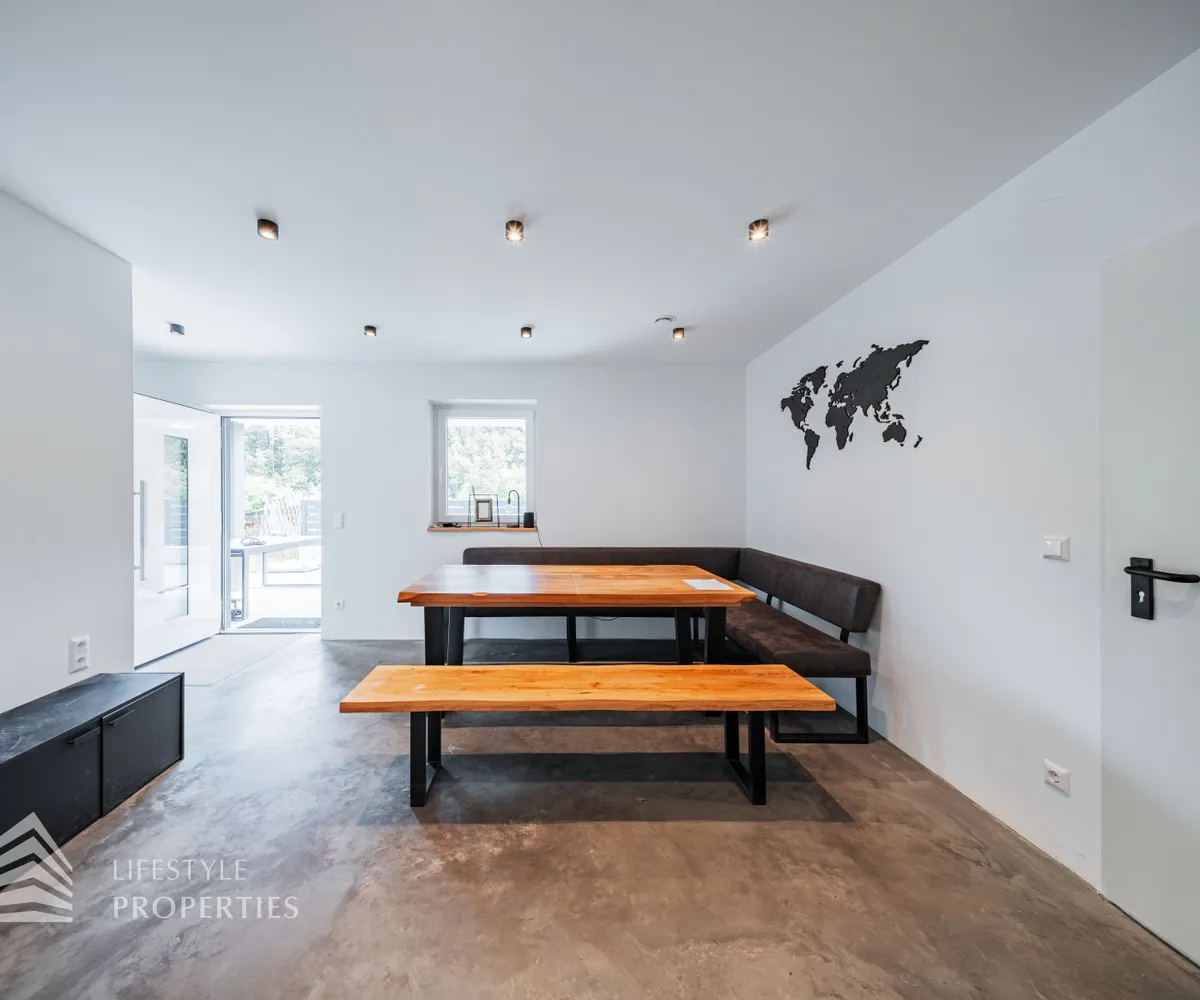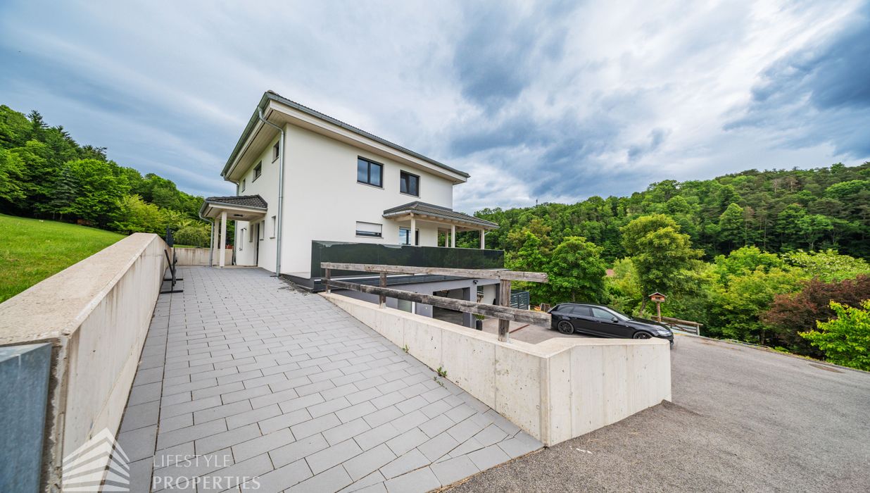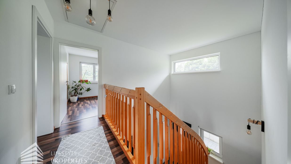 Wohnen, wo andere Urlaub machen! Dieses großzügige, moderne Einfamilienhaus in Holzriegelbauweise wurde 2014 errichtet und liegt in absoluter Ruhelage direkt am Waldrand – mit herrlichem Blick auf die Burgruine Kirchschlag und freiem Ausblick ohne direkte Nachbarn. Die ca. 260 m² grosse Nutzfläche ist auf drei Ebenen unterteilt (KG, EG, OG). Im ganzen Haus ist eine Zentrale Staubsaugeranlage und ein Glasfaseranschluss für ultraschnelles Internet verbaut. Das traumhafte Haus wurde als Niedrigenergiehaus in Holzriegelbauweise erbaut. Es überzeugt mit moderner Wohnraumlüftung zur Kühlung im Sommer. Beheizt wird mittels Erdwärme. Zum Objekt gehört ein verpflichtend zu übernehmendes Inventar im Wert von 40.000 EUR (nicht im Kaufpreis enthalten). Dieses umfasst unter anderem eine hochwertige Kücheneinrichtung, Badezimmermöbel im Obergeschoss und im Keller, einen Esstisch mit Stühlen, eine Garderobe mit Spiegelkasten, einen hochwertig verbauten Waschraum sowie eine praktische Werkzeugbank.