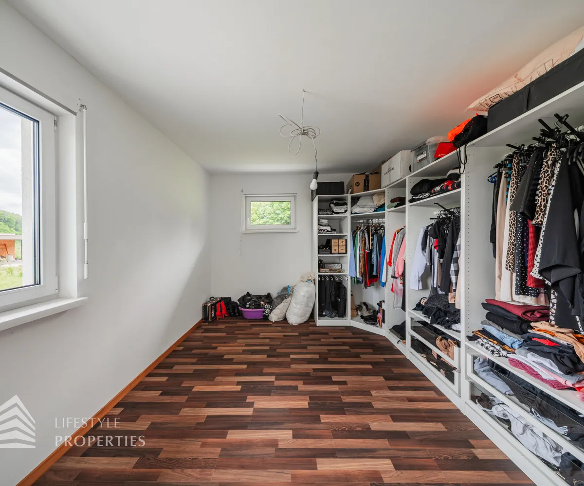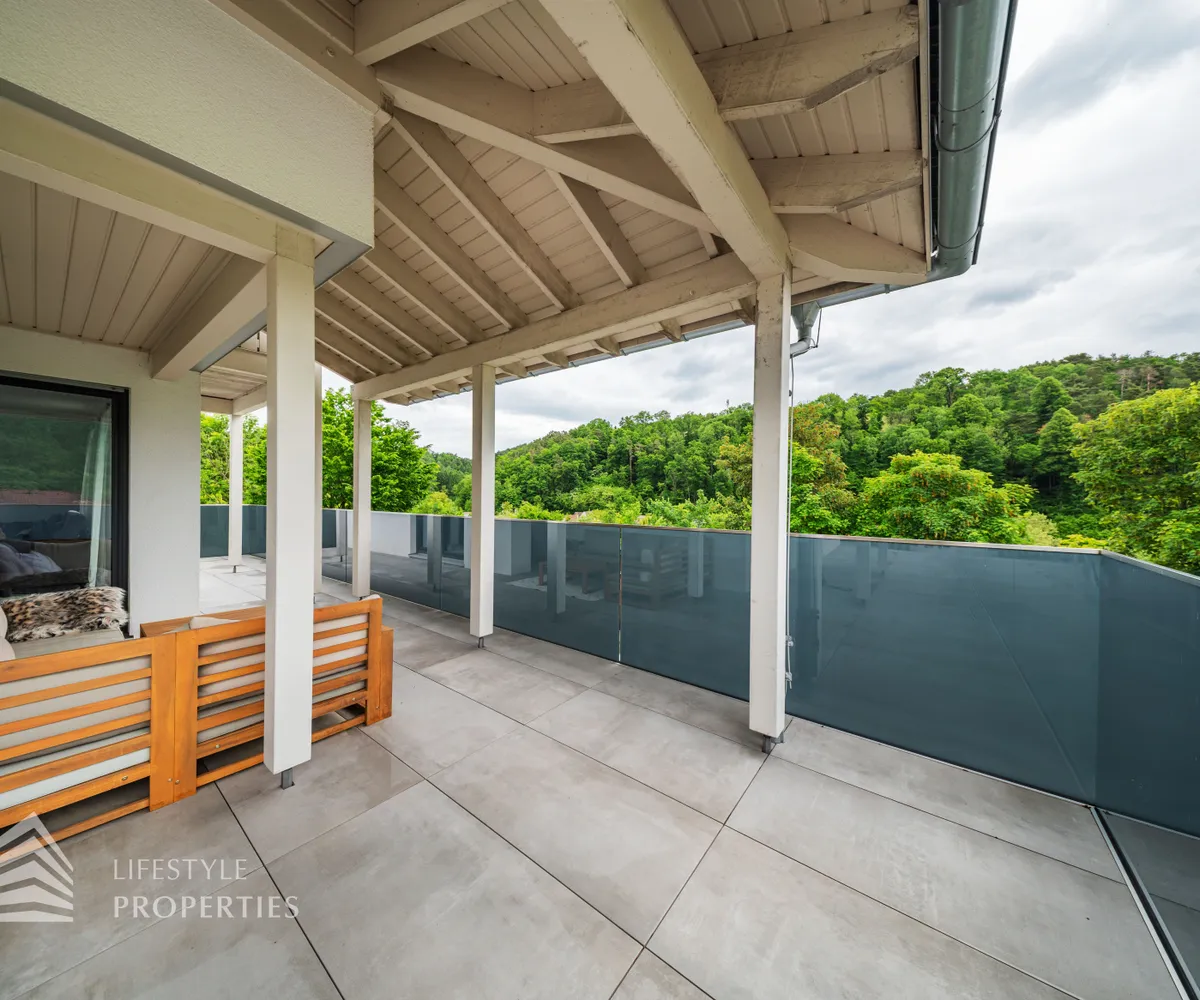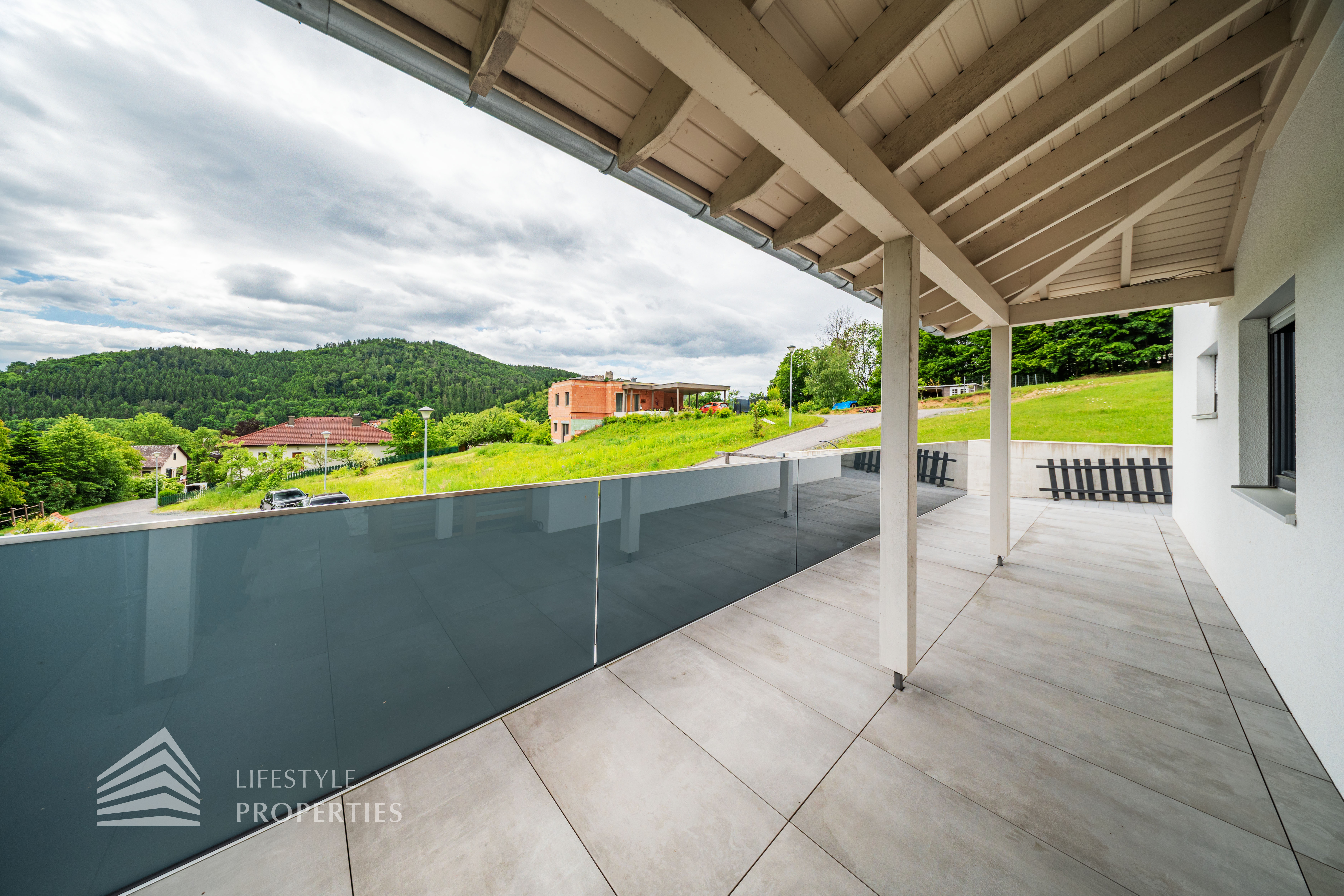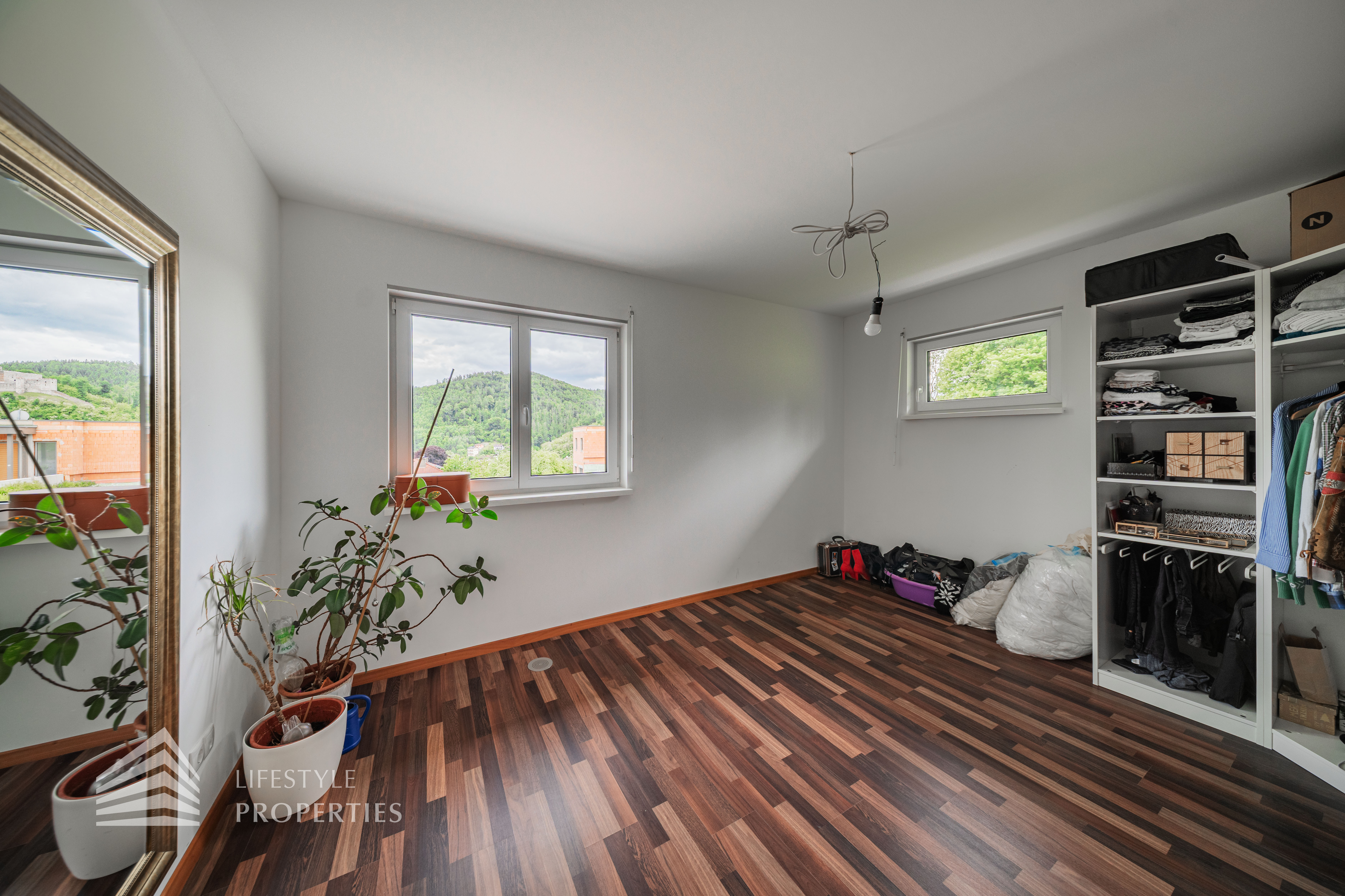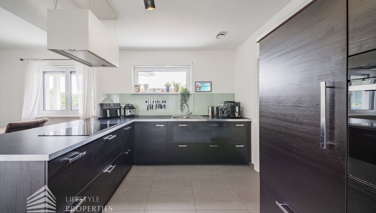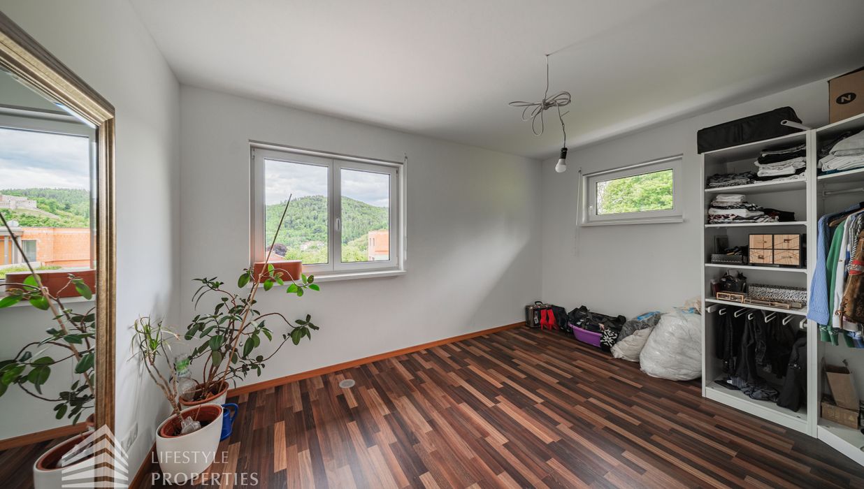 Wohnen, wo andere Urlaub machen! Dieses großzügige, moderne Einfamilienhaus in Holzriegelbauweise wurde 2014 errichtet und liegt in absoluter Ruhelage direkt am Waldrand – mit herrlichem Blick auf die Burgruine Kirchschlag und freiem Ausblick ohne direkte Nachbarn. Die ca. 260 m² grosse Nutzfläche ist auf drei Ebenen unterteilt (KG, EG, OG). Im ganzen Haus ist eine Zentrale Staubsaugeranlage und ein Glasfaseranschluss für ultraschnelles Internet verbaut. Das traumhafte Haus wurde als Niedrigenergiehaus in Holzriegelbauweise erbaut. Es überzeugt mit moderner Wohnraumlüftung zur Kühlung im Sommer. Beheizt wird mittels Erdwärme. Zum Objekt gehört ein verpflichtend zu übernehmendes Inventar im Wert von 40.000 EUR (nicht im Kaufpreis enthalten). Dieses umfasst unter anderem eine hochwertige Kücheneinrichtung, Badezimmermöbel im Obergeschoss und im Keller, einen Esstisch mit Stühlen, eine Garderobe mit Spiegelkasten, einen hochwertig verbauten Waschraum sowie eine praktische Werkzeugbank.