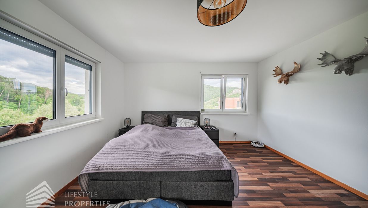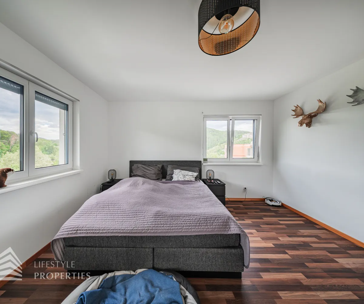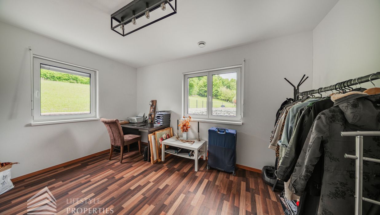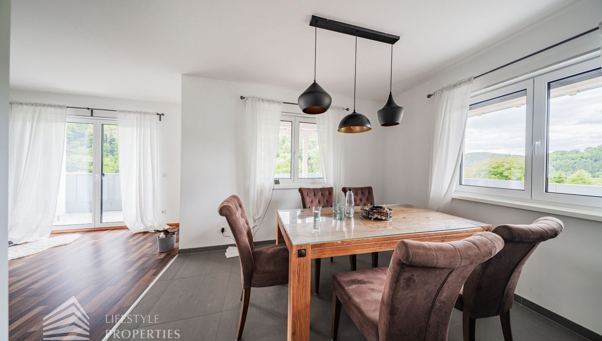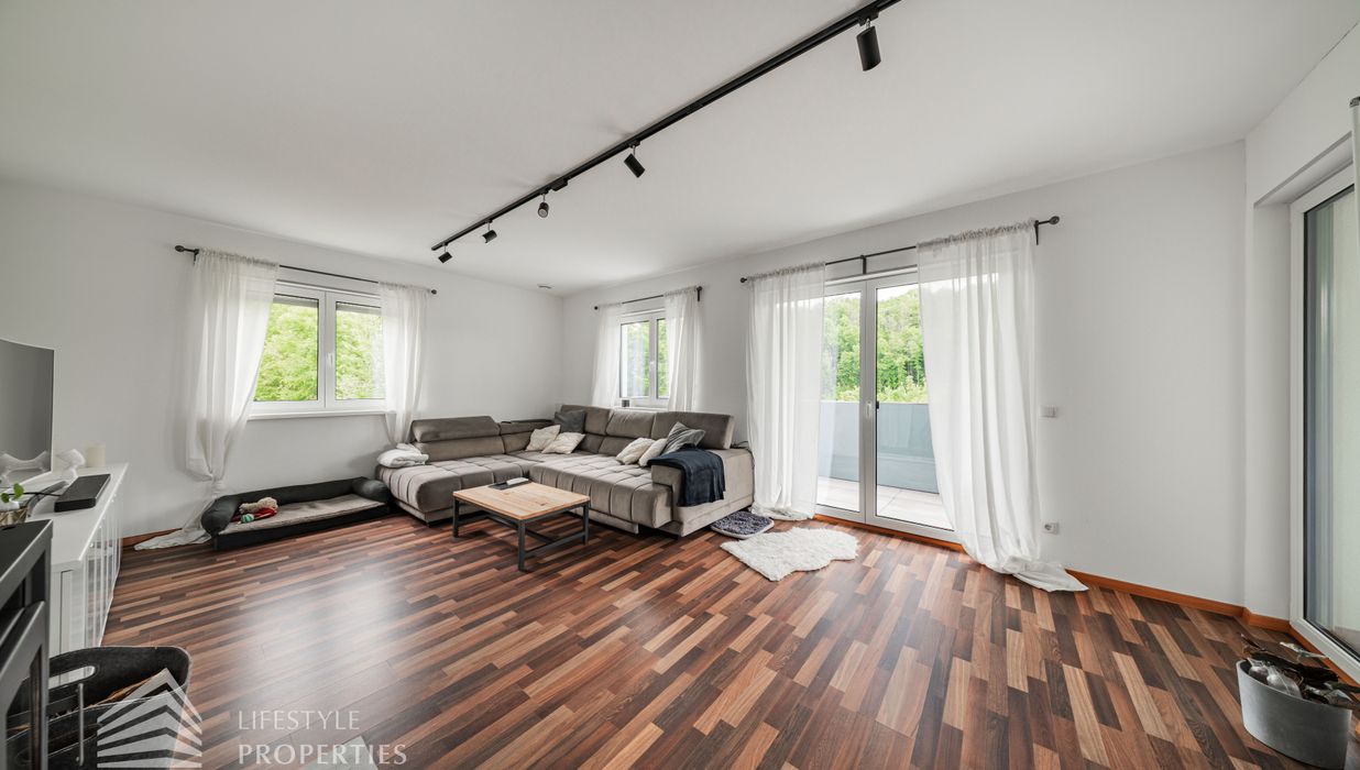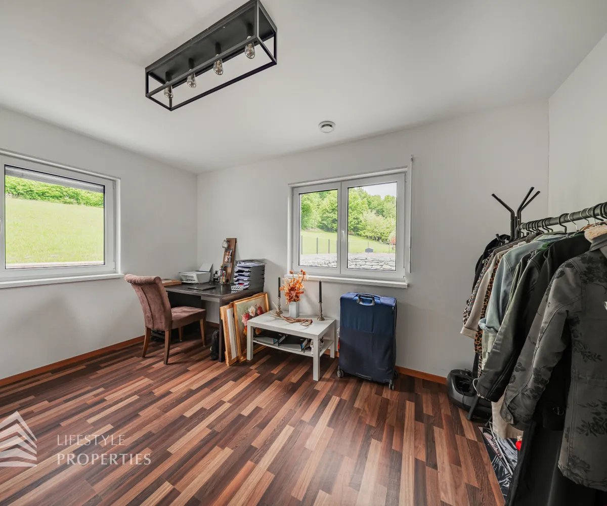 Wohnen, wo andere Urlaub machen! Dieses großzügige, moderne Einfamilienhaus in Holzriegelbauweise wurde 2014 errichtet und liegt in absoluter Ruhelage direkt am Waldrand – mit herrlichem Blick auf die Burgruine Kirchschlag und freiem Ausblick ohne direkte Nachbarn. Die ca. 260 m² grosse Nutzfläche ist auf drei Ebenen unterteilt (KG, EG, OG). Im ganzen Haus ist eine Zentrale Staubsaugeranlage und ein Glasfaseranschluss für ultraschnelles Internet verbaut. Das traumhafte Haus wurde als Niedrigenergiehaus in Holzriegelbauweise erbaut. Es überzeugt mit moderner Wohnraumlüftung zur Kühlung im Sommer. Beheizt wird mittels Erdwärme. Zum Objekt gehört ein verpflichtend zu übernehmendes Inventar im Wert von 40.000 EUR (nicht im Kaufpreis enthalten). Dieses umfasst unter anderem eine hochwertige Kücheneinrichtung, Badezimmermöbel im Obergeschoss und im Keller, einen Esstisch mit Stühlen, eine Garderobe mit Spiegelkasten, einen hochwertig verbauten Waschraum sowie eine praktische Werkzeugbank.