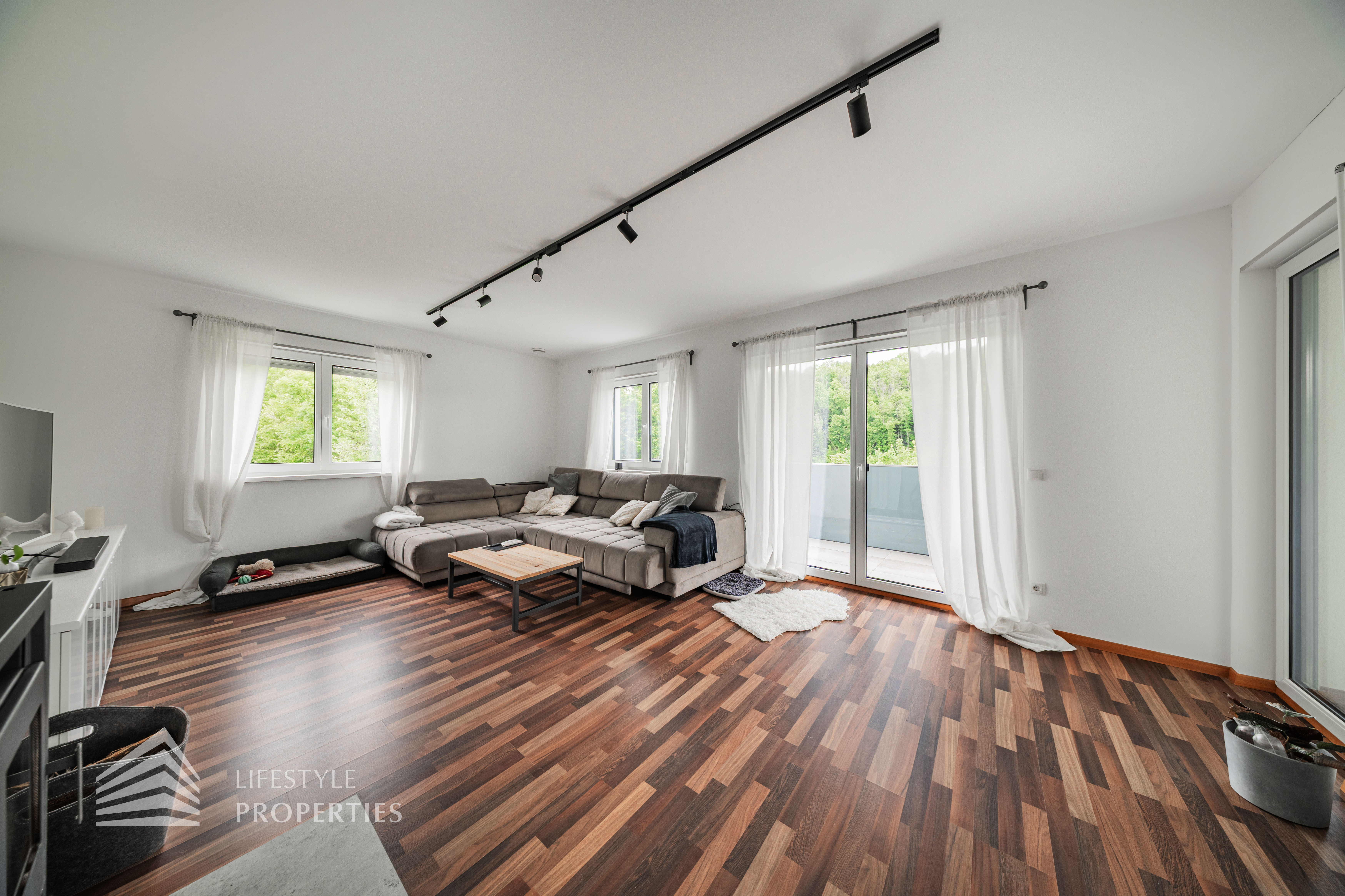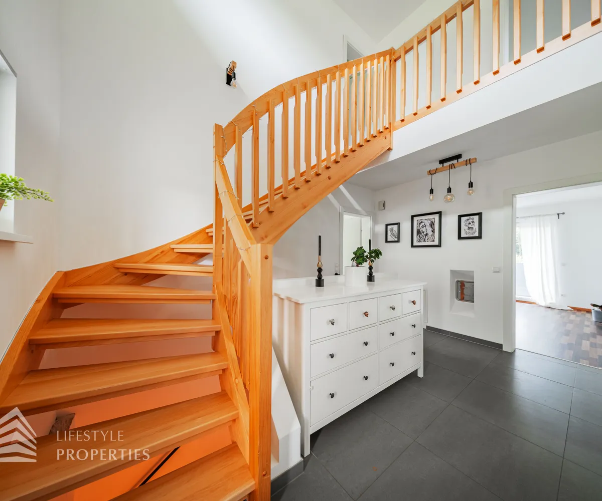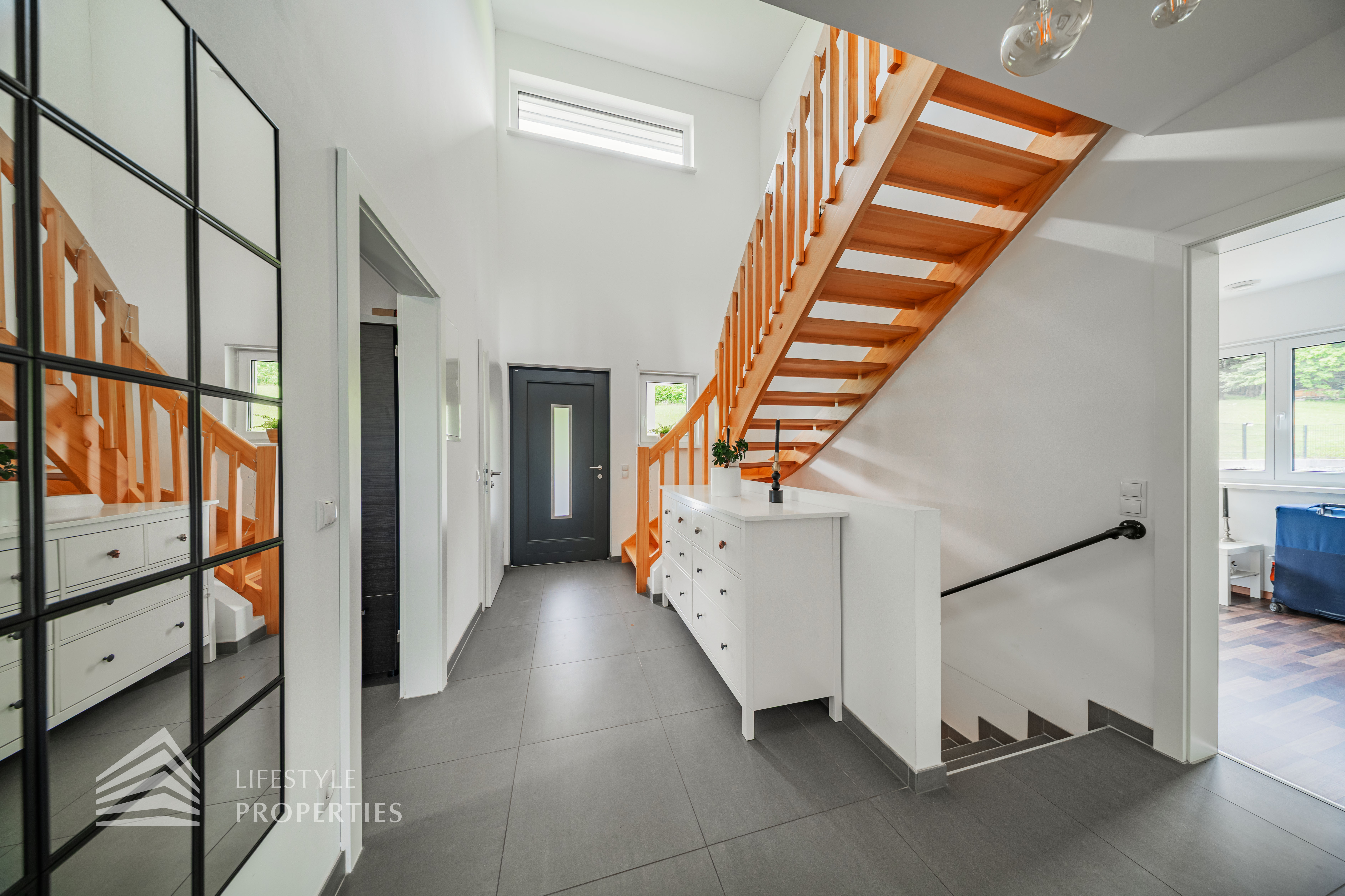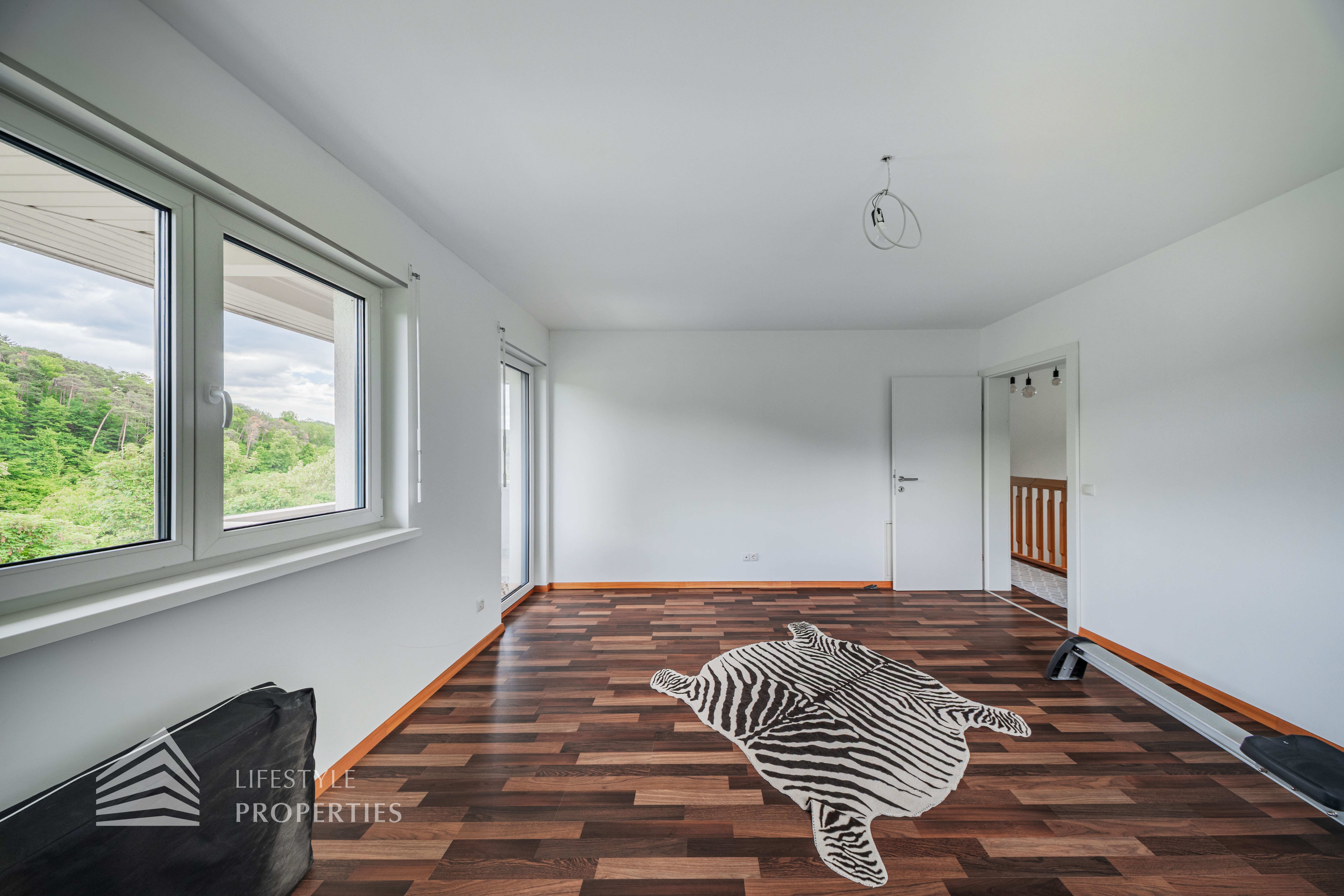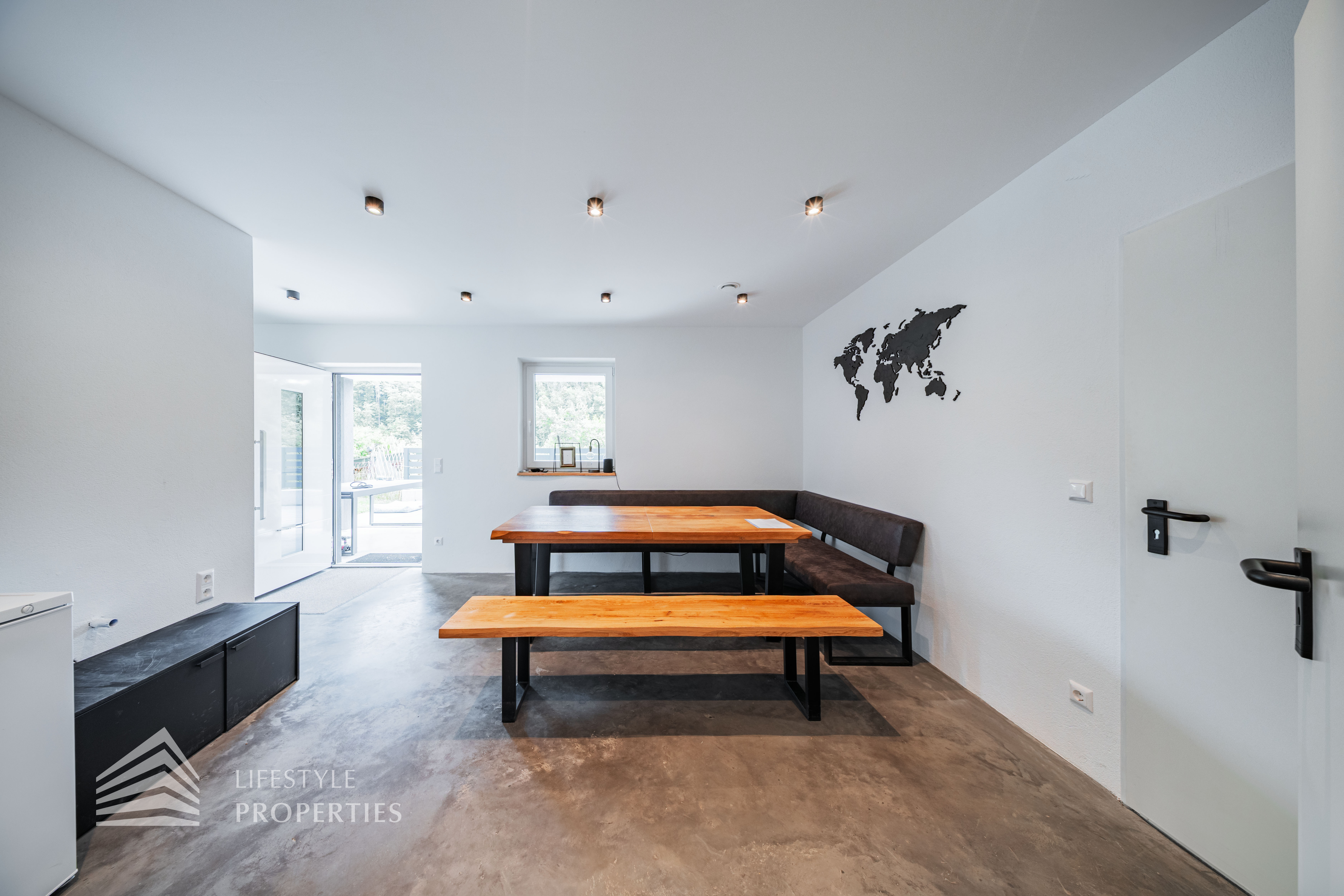 Zusätzlich überzeugt das Objekt mit einem einzigartigen Außenbereich: Ein großzügiges, ca. 1.357 m² großes und gepflegtes Grundstück mit direktem Zugang zum Wald, eine ost- und südseitig ausgerichtete Terrasse mit Außenbeleuchtung und Steckdosen, die Möglichkeit zum Poolanbau sowie eine vorbereitete Photovoltaikanlage mit vorhandener Montagemöglichkeit.