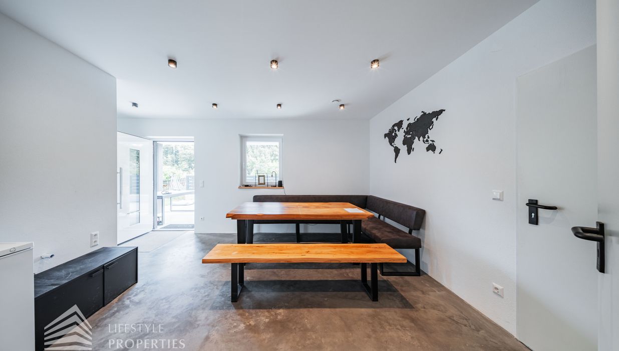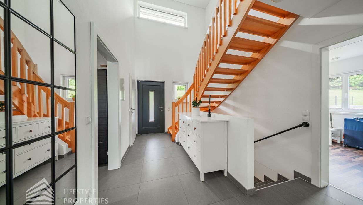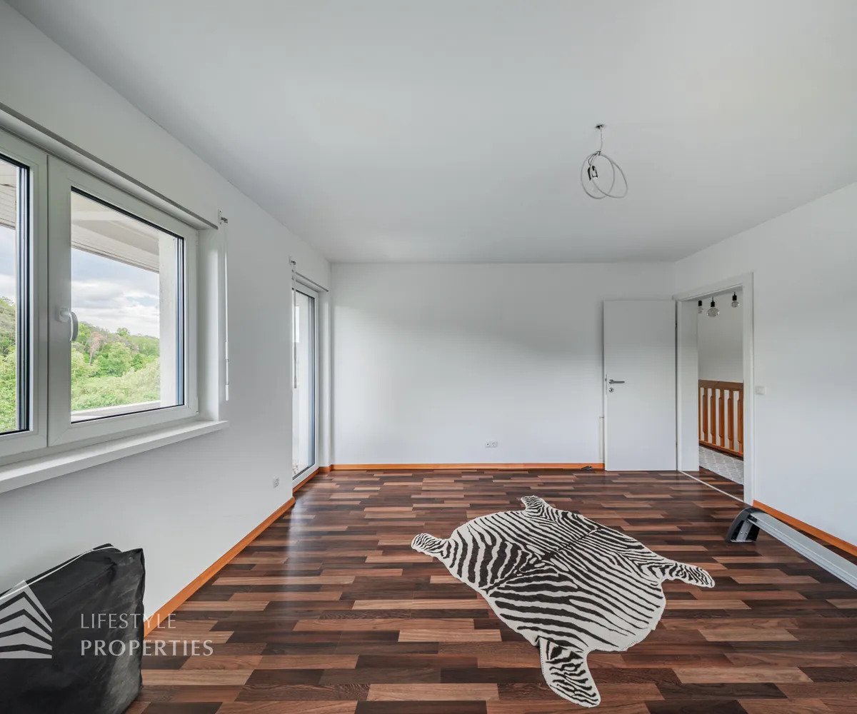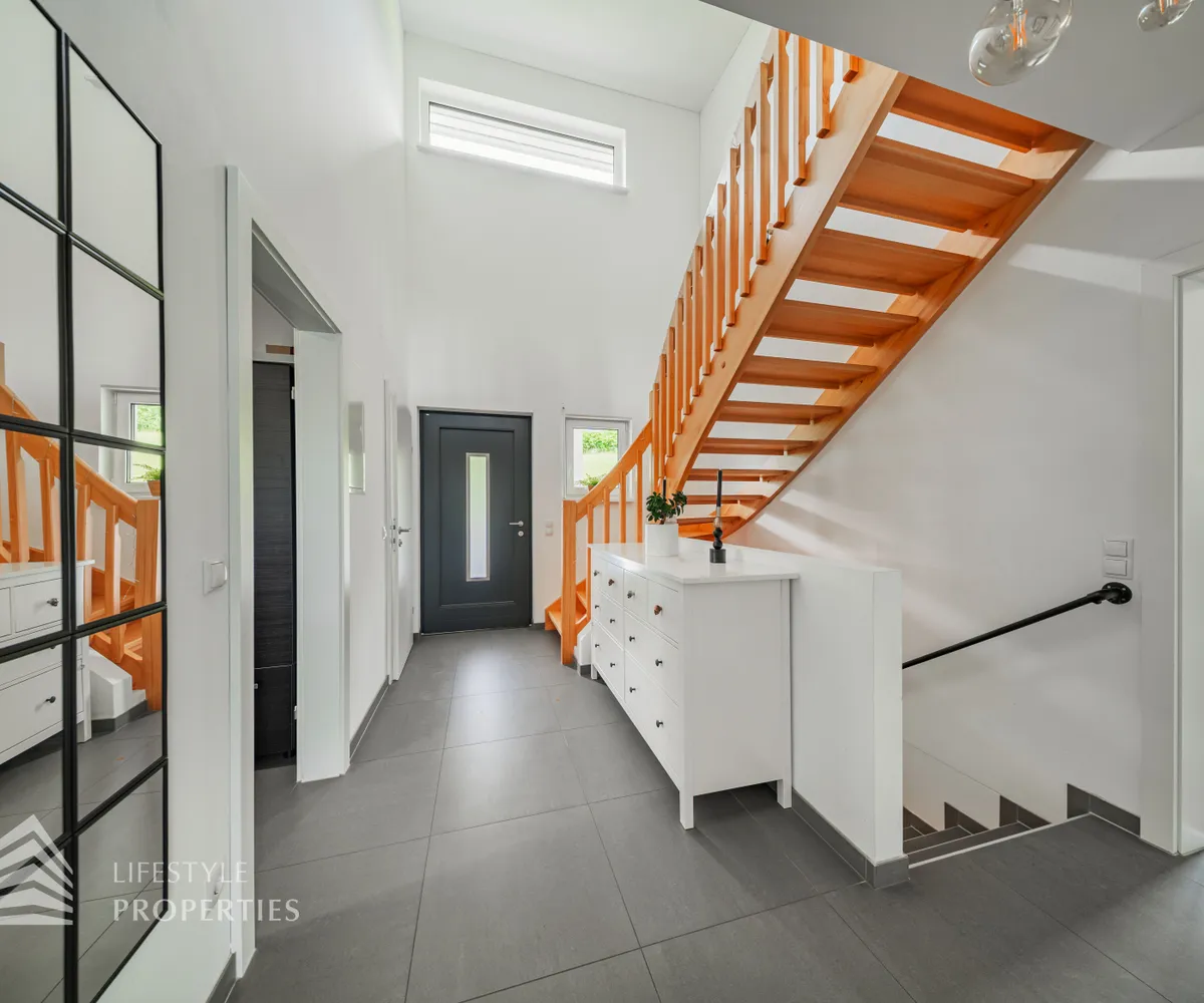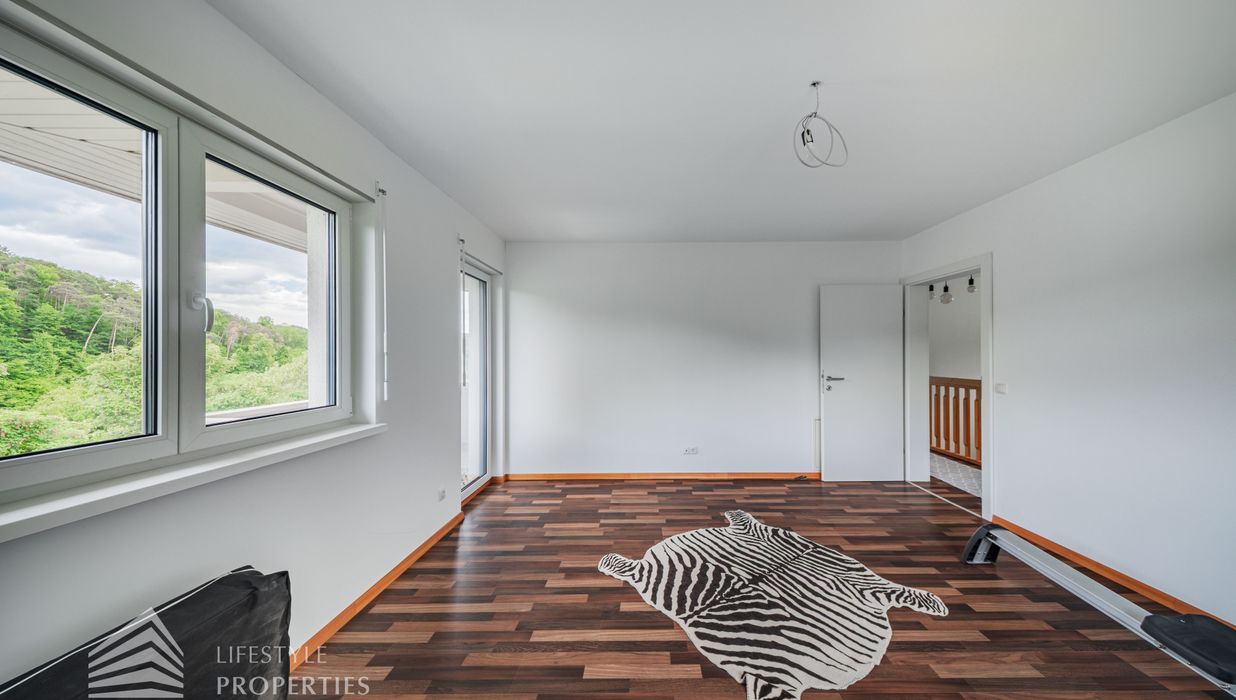 Zusätzlich überzeugt das Objekt mit einem einzigartigen Außenbereich: Ein großzügiges, ca. 1.357 m² großes und gepflegtes Grundstück mit direktem Zugang zum Wald, eine ost- und südseitig ausgerichtete Terrasse mit Außenbeleuchtung und Steckdosen, die Möglichkeit zum Poolanbau sowie eine vorbereitete Photovoltaikanlage mit vorhandener Montagemöglichkeit.