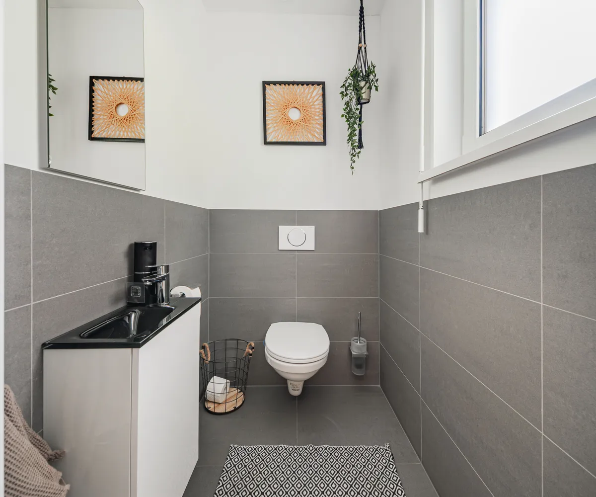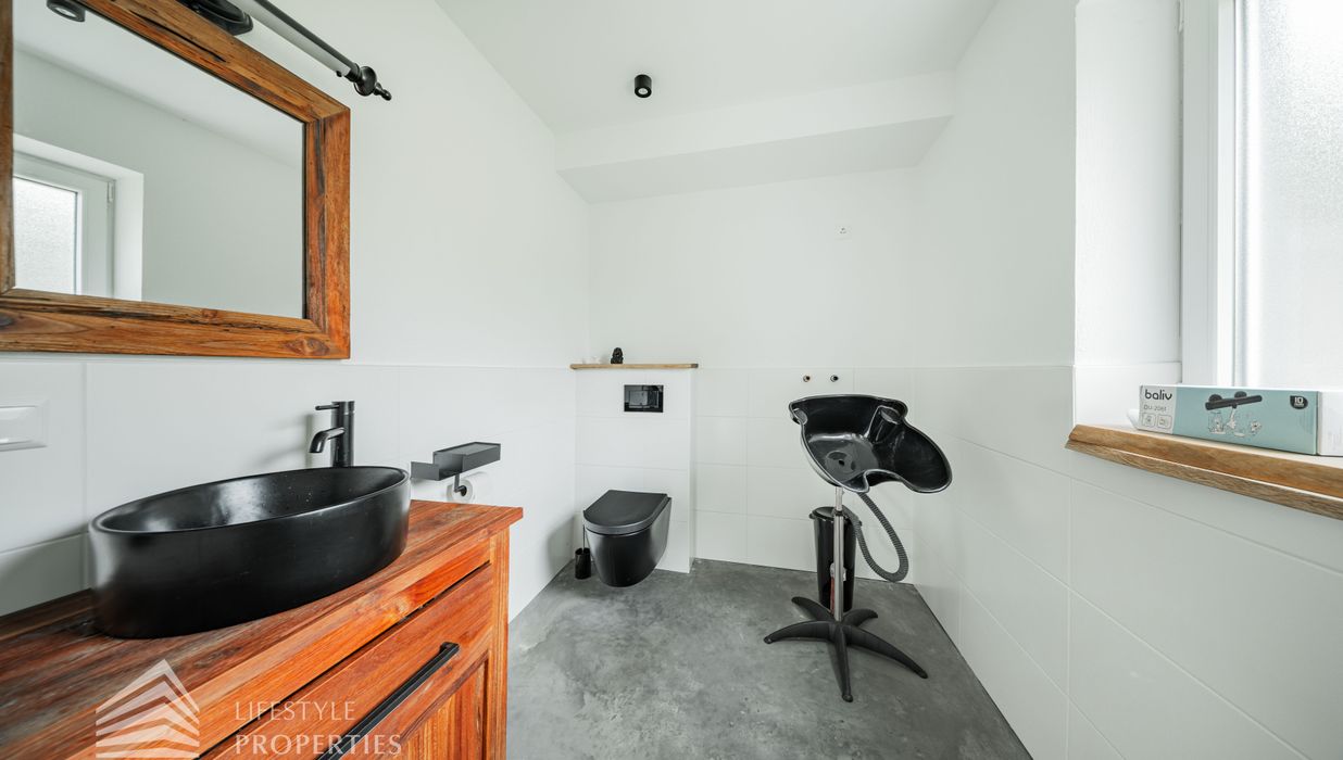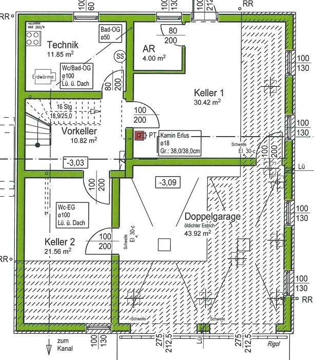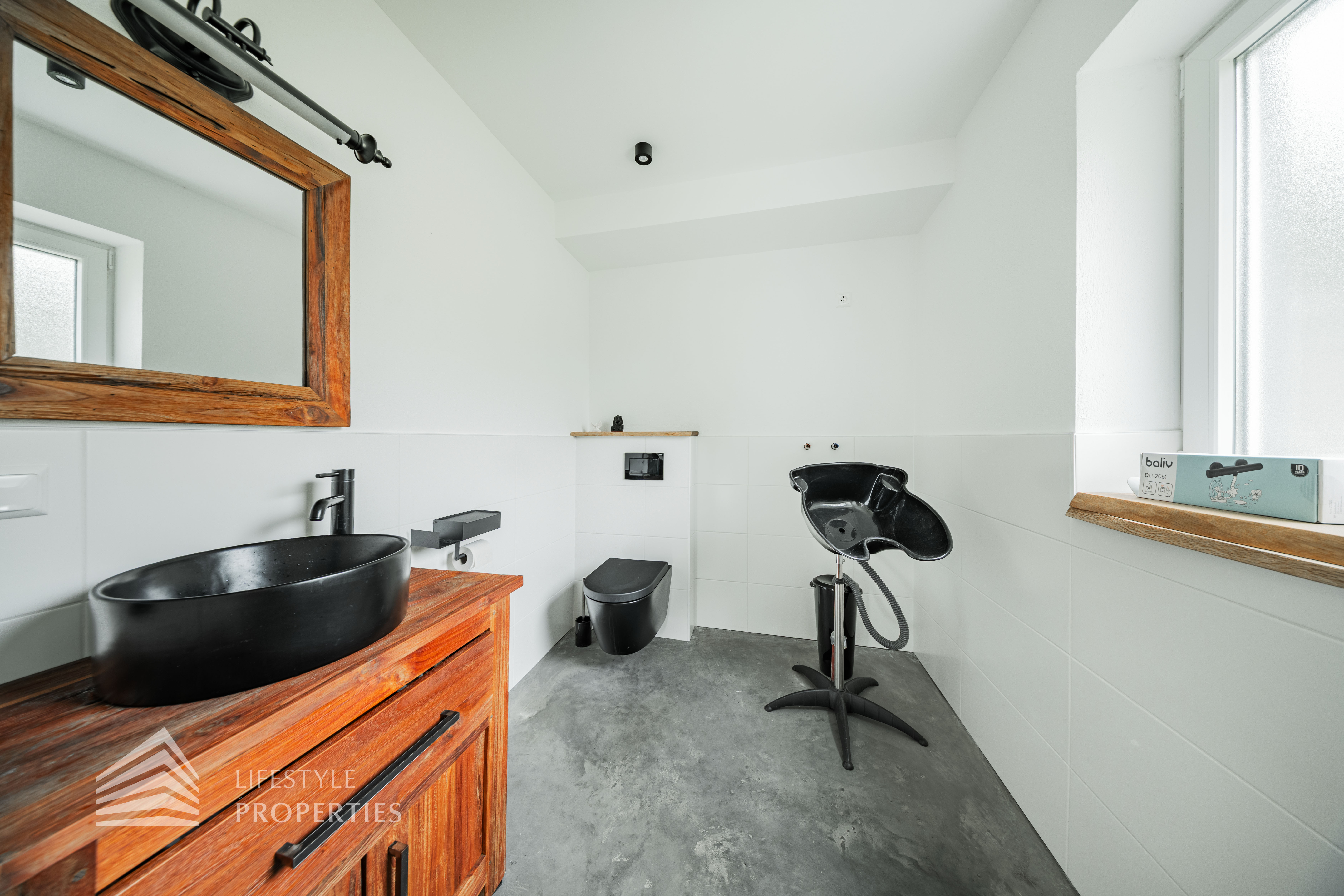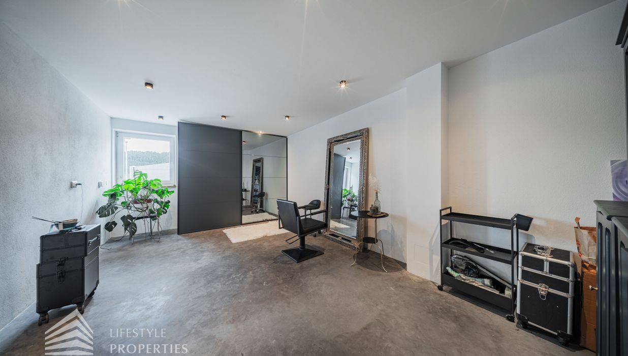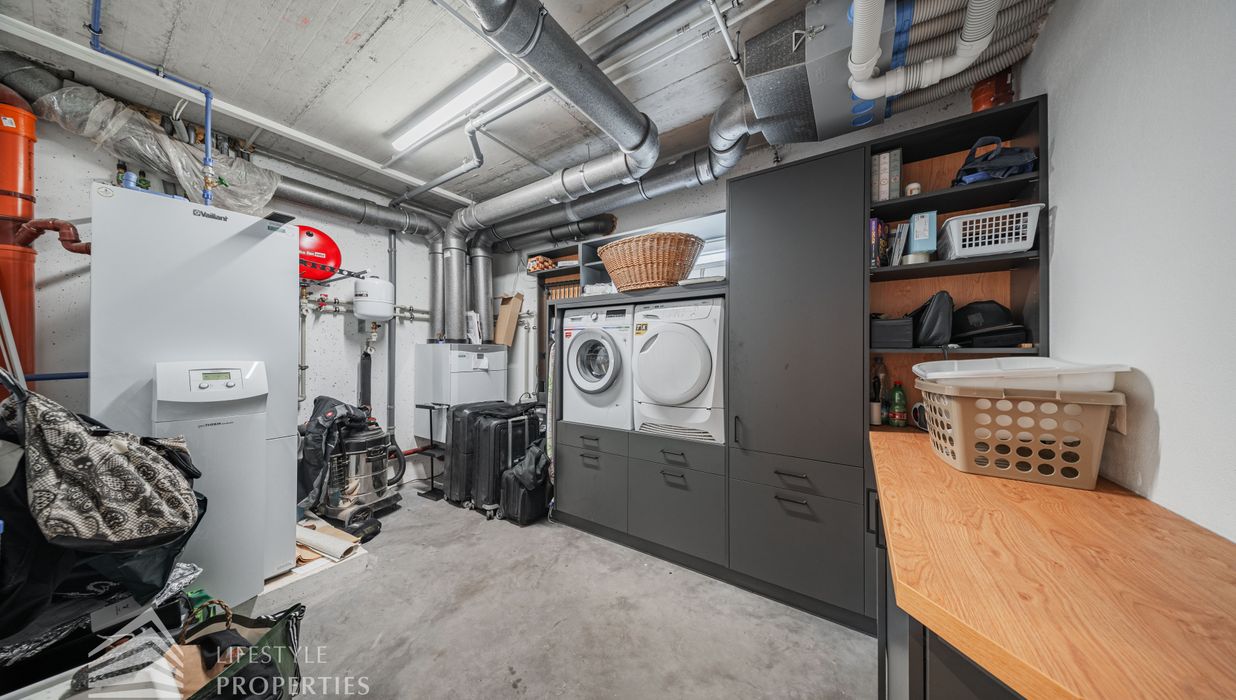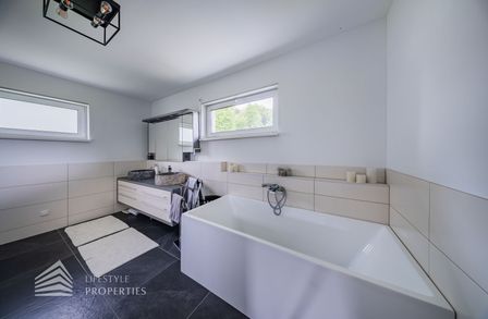Einen voll ausgebautem Keller ebenerdig zugänglich mit eigenem Eingang, inkl. Fußbodenheizung in allen Räumen, Badezimmer und vorbereitetem Küchenanschluss. Der Keller kann ohne viel Aufwand als eigene Wohn Nutzeinheit adaptiert werden. Die fußbodenbeheizte Garage mit Platz für 2 PKWs bietet zusätzlich einen Starkstromanschluss für E-Lade Station und einen Wasseranschluss.