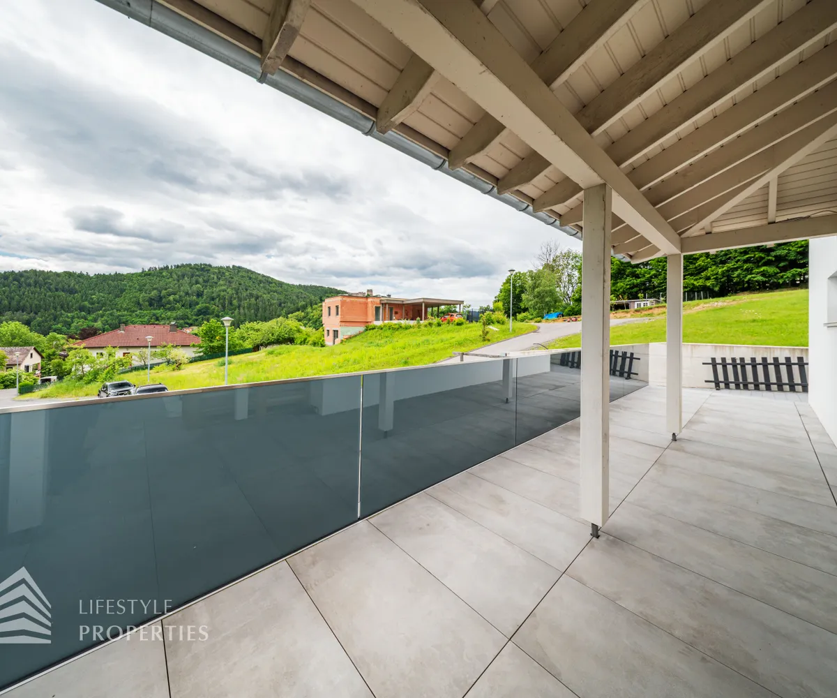 Das Erdgeschoss ist ebenerdig mit eigenen Hauseingang zugänglich und bietet ca. 72 m² Wohnfläche. Diese teilt sich in eine grosszügige Einbauküche mit hochwertigen Bosch-Geräten, ein Wohnzimmer mit Zugang zu einen der Highlights des Hauses, die weitläufige ca. 48 m² große Terrasse, diese ist optimal um im Sommer die Tage ausklingen zu lassen. Ein Kachelofen mit externer Zuluft – für behagliche Wärme für kalte Wintertage befindet sich ebenfalls im Wohnzimmer. Weiters finden Sie im Erdgeschoss ein Zimmer, welches als Büro genutzt werden kann sowie ein Gäste WC.